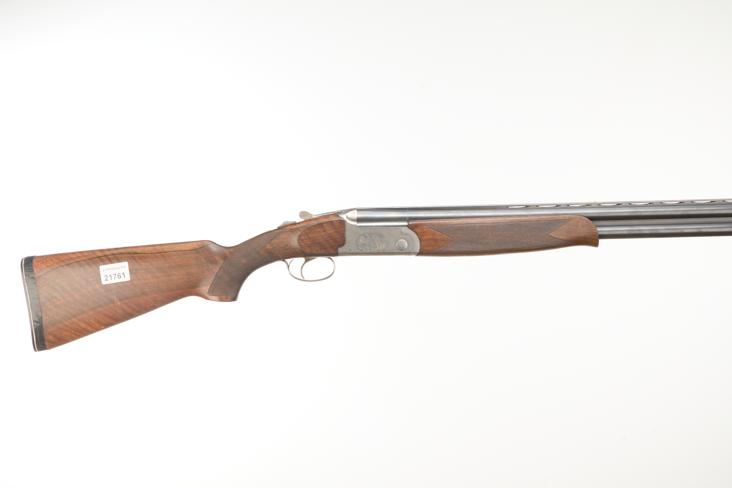 Hard butt pad, chequered semi-pistol grip and Schnabel forend, ventilated top rib. Hunting scenes to action. Integrated barrel selector and safety.