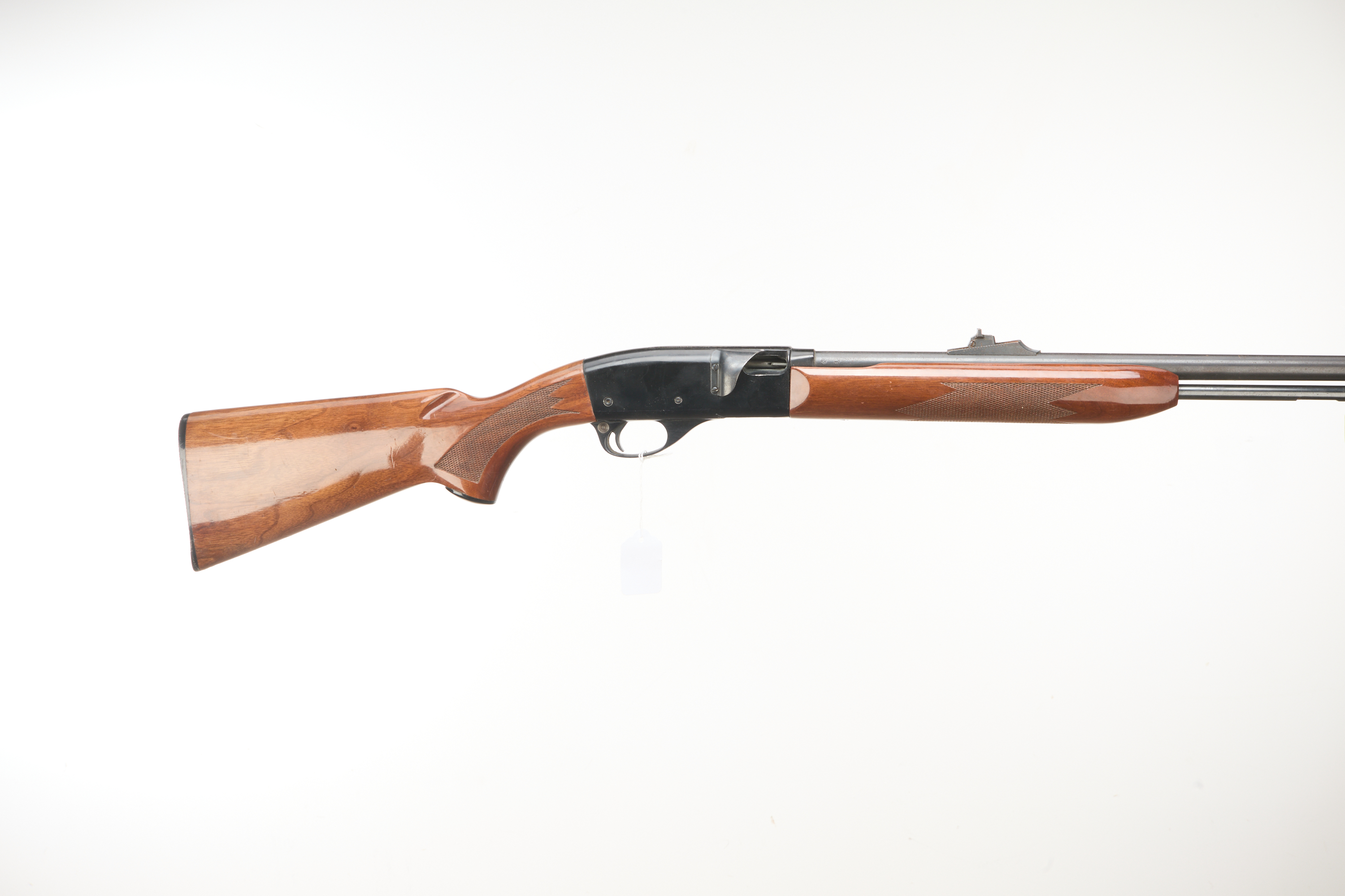 Hard plastic butt pad, chequered pistol grip and foreend, screw top. Fore and rear iron sights. Brass reflector. Tubular magazine.