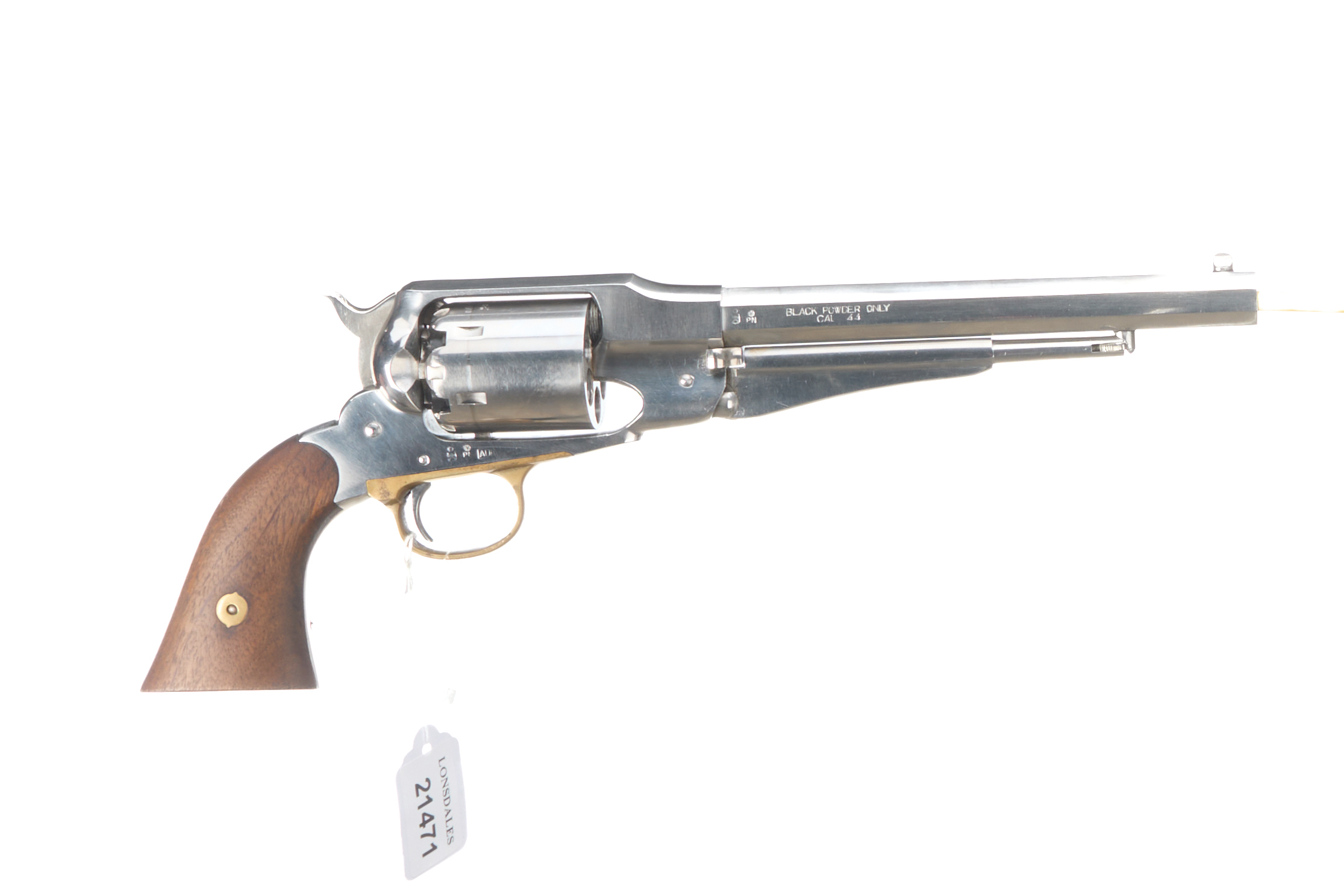 UBERTI A .44 CAL BLACK POWDER REVOLVER Ser No. 67341 Stainless steel, brass trigger guard.