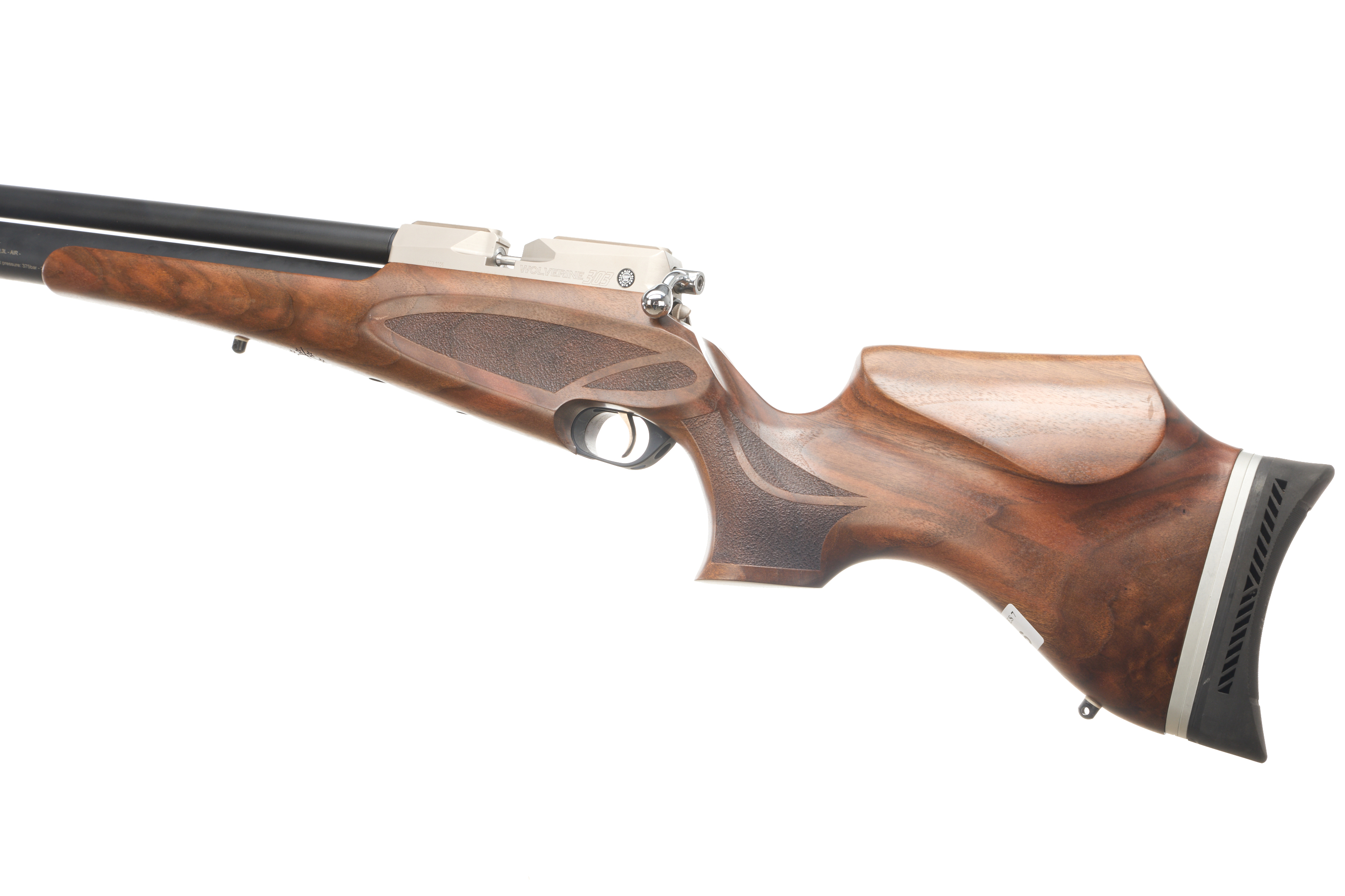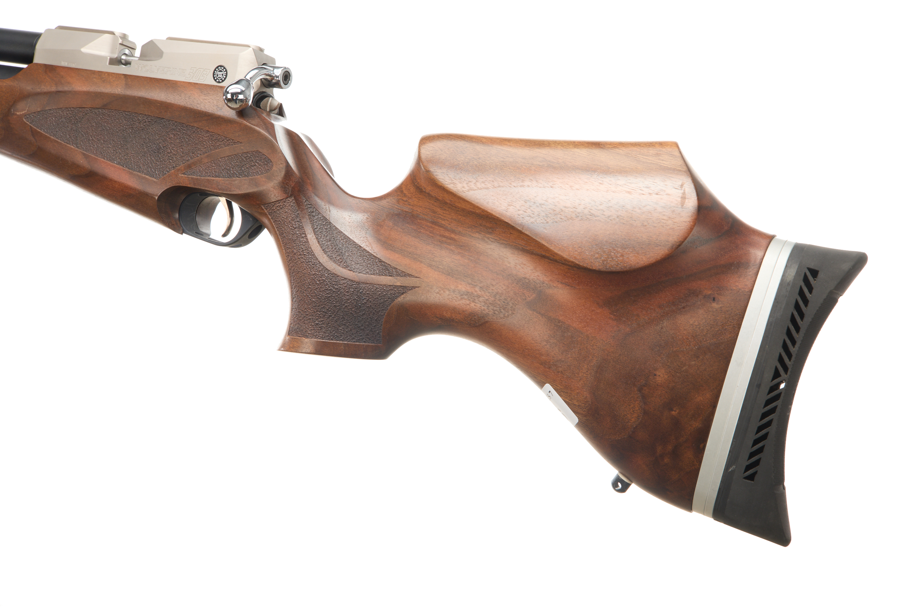 Ventilated rubber butt pad, raised cheek piece. Chequered grip and forend. Front and rear sling swivels.