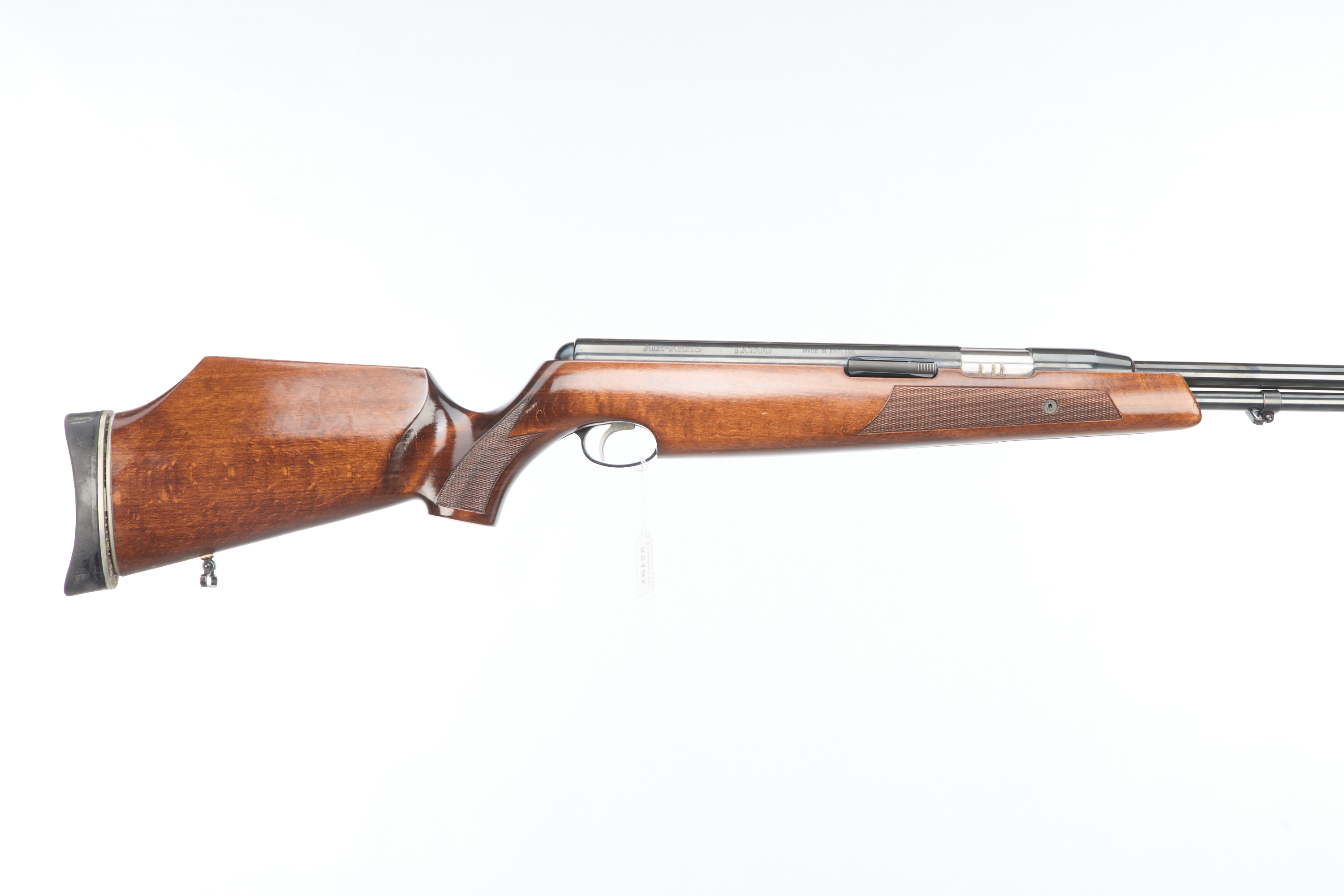 AIR-ARMS A MOD TX200 .22 AIR RIFLE Ser No 027111 Adjustable butt pad, raised cheek piece, chequered grip and forend, blued barrel and main body. Unsighted barrel with dovetail scope rail.