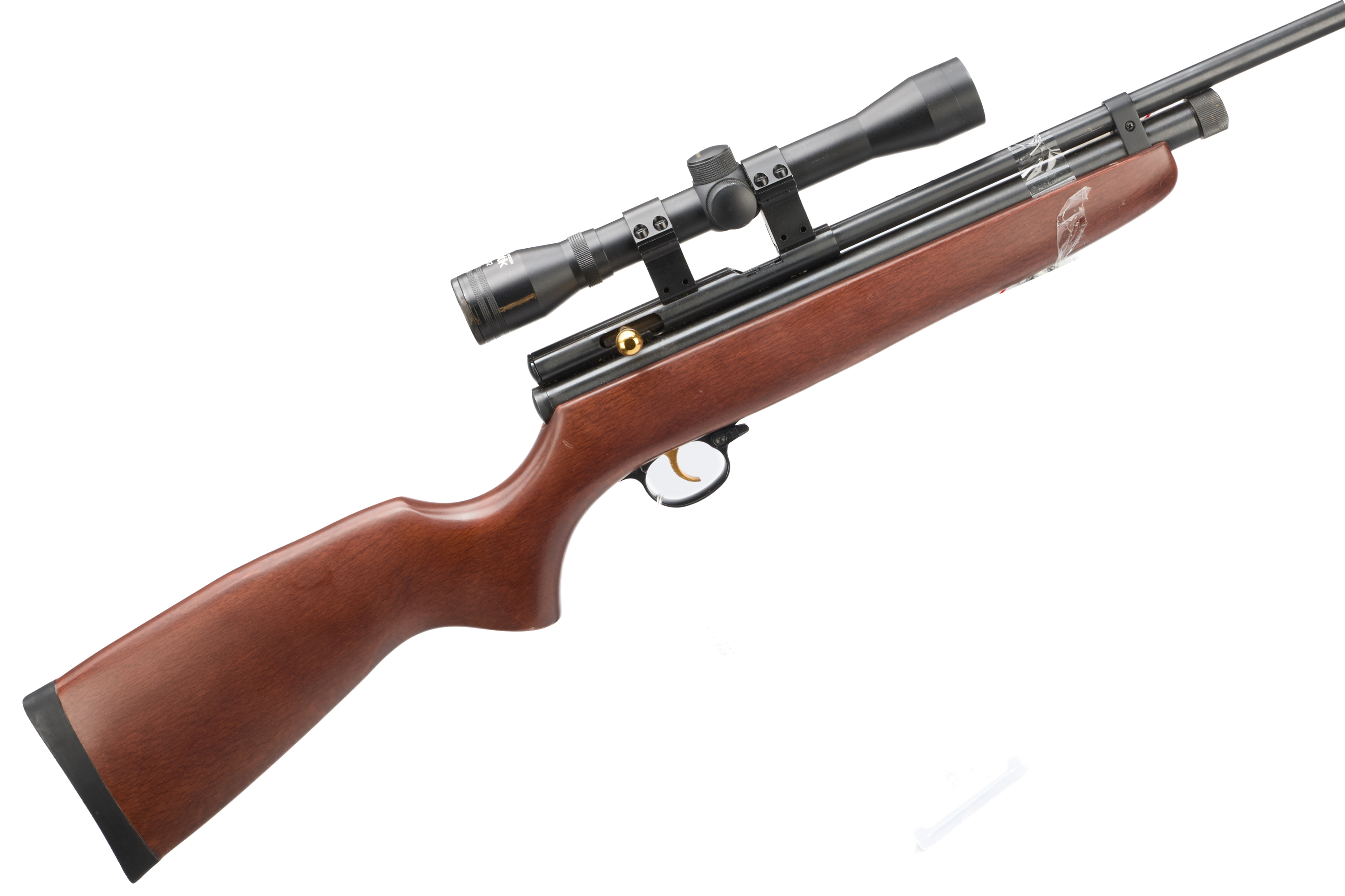 SMK QB78DL .22 CO2 RIFLE NVN Unsighted barrel. CW RICHTER OPTIK 4×32 scope. CW detachable front and rear fibre optic sights.