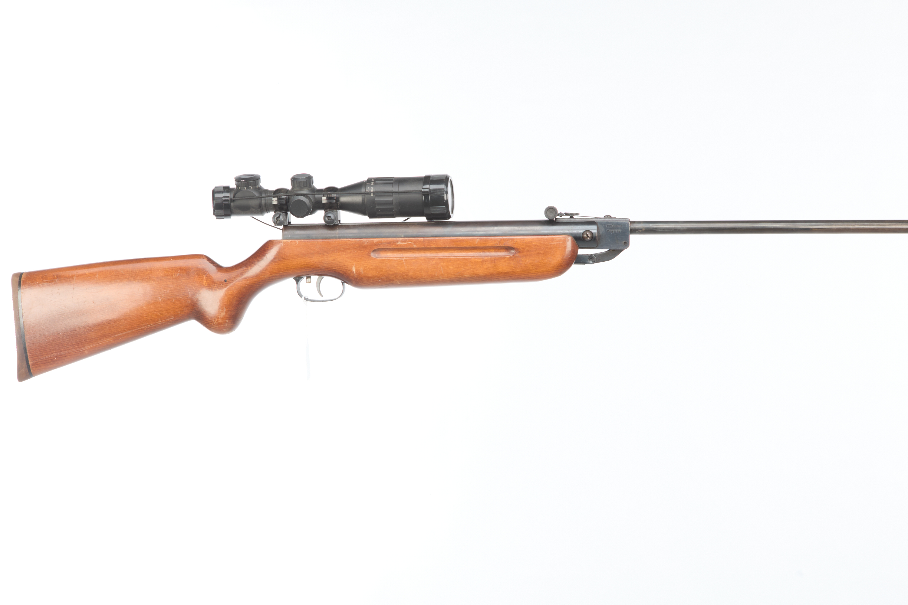 WEIHRAUCH A HW35 .22 AIR RIFLE Ser No 648784 Adjustable notch rear sight, hooded post front sight. CW 4×32 TASCO scope.