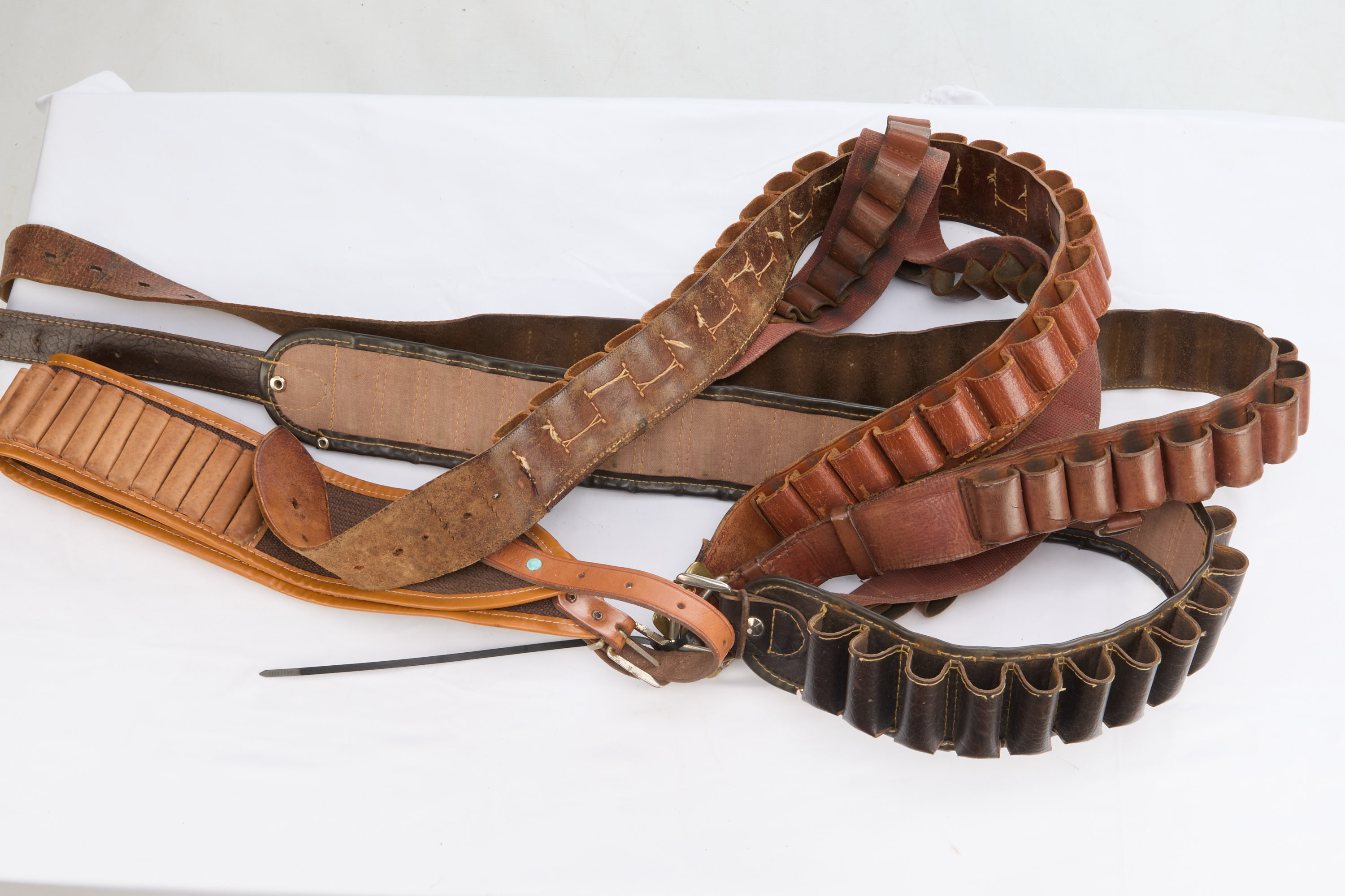 Lot 60: 5 leather and canvas bandoliers