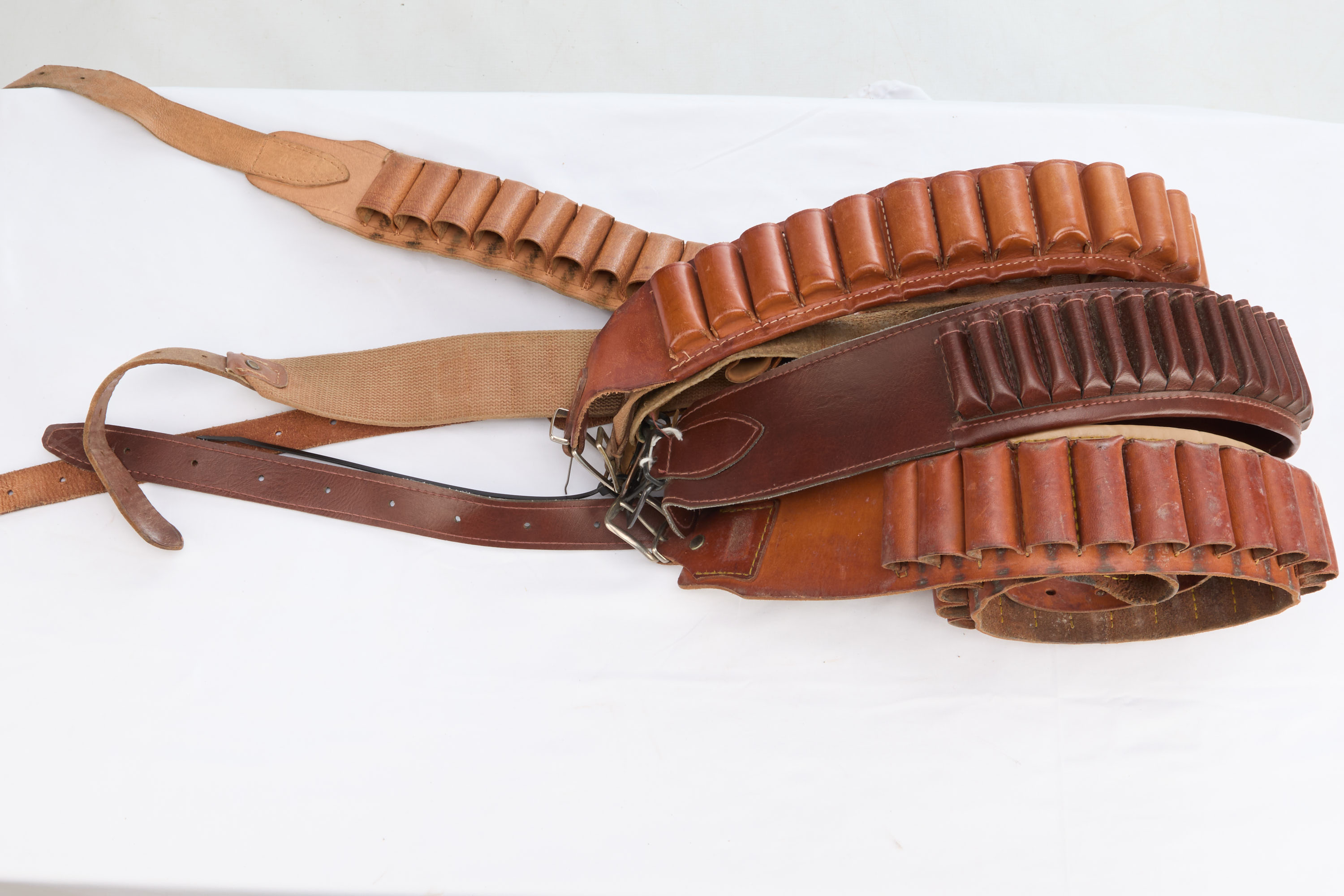Lot 61: 5 leather and canvas bandoliers