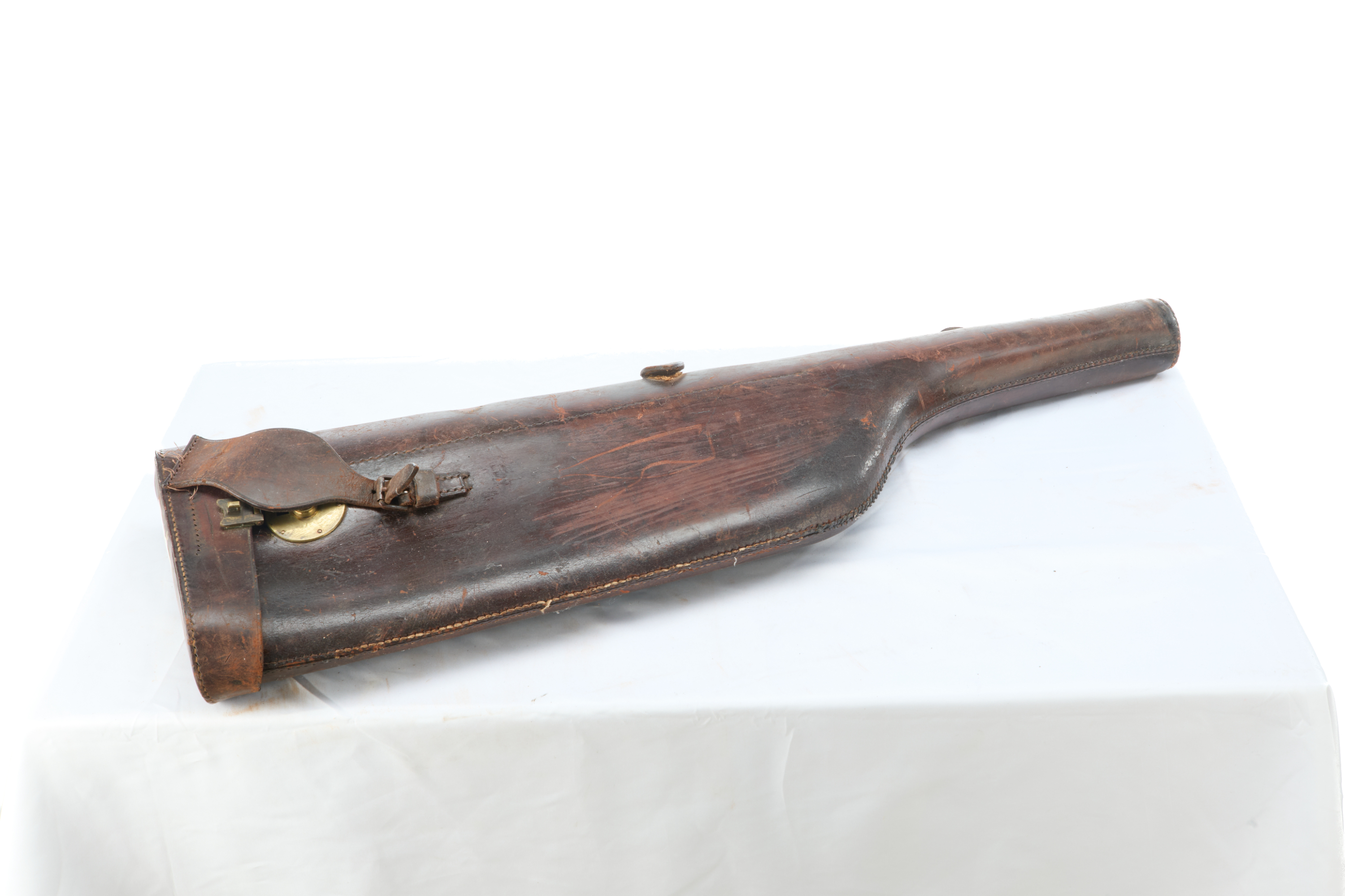 Lot 7: LEG OF MUTTON LEATHER CASE W/ STRAP AND LOCK
