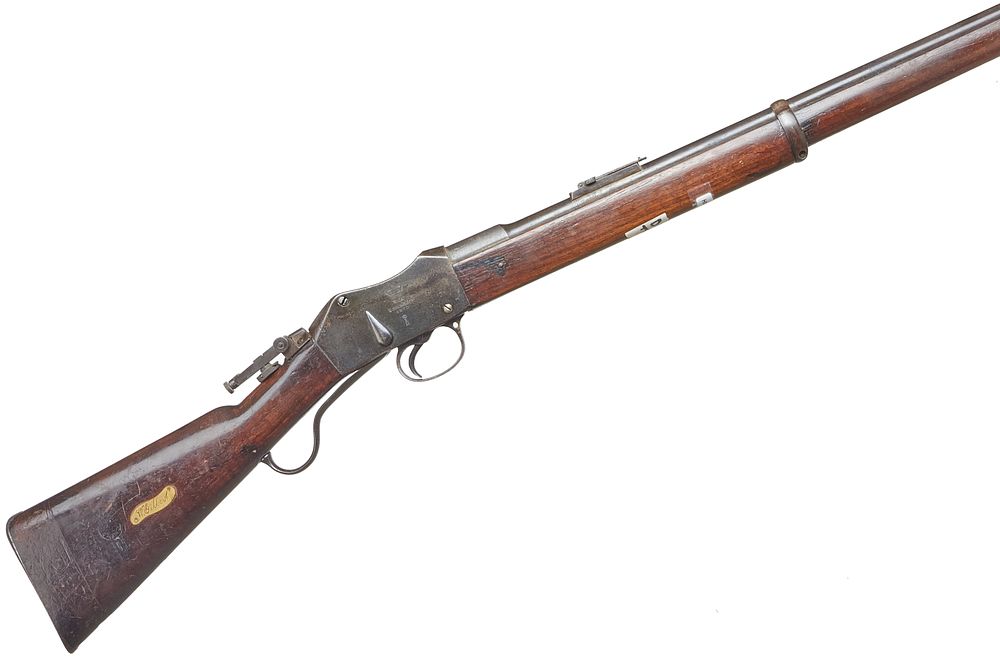 A .22lr (Converted) BSA Martini Henry Service Rifle. Serial No.734. Crown VR on action, Ordnance Acceptance marks, Stock extended. Brl.30 ins.