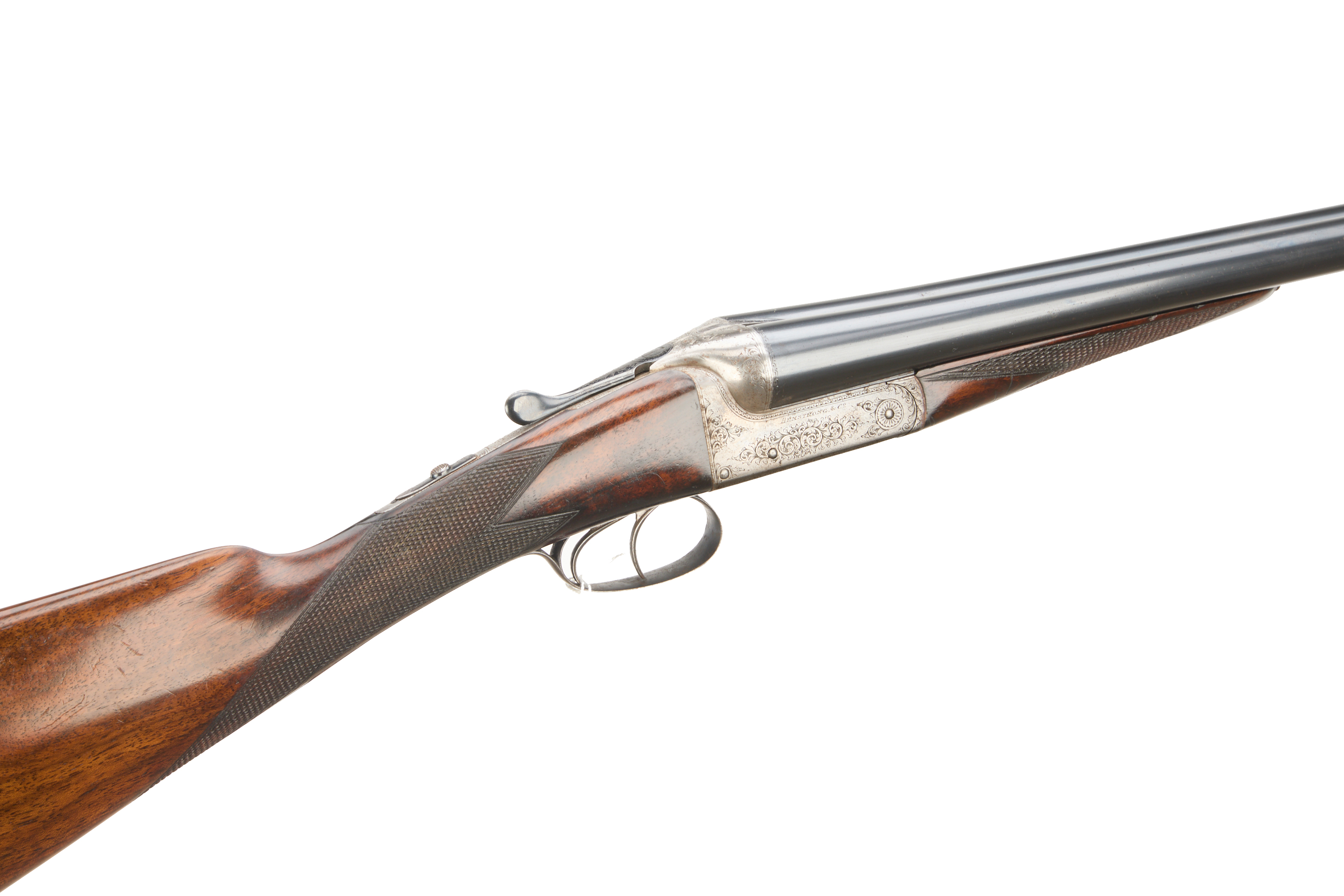 Cushioned butt, chequered straight grip and forend. Tapered sunken rib engraved ‘ARMSTRONG & CO NEWCASTLE-ON-TYNE’. Treble grip action, top lever, safety with ‘SAFE’ . The action engraved acanthus scrolling.