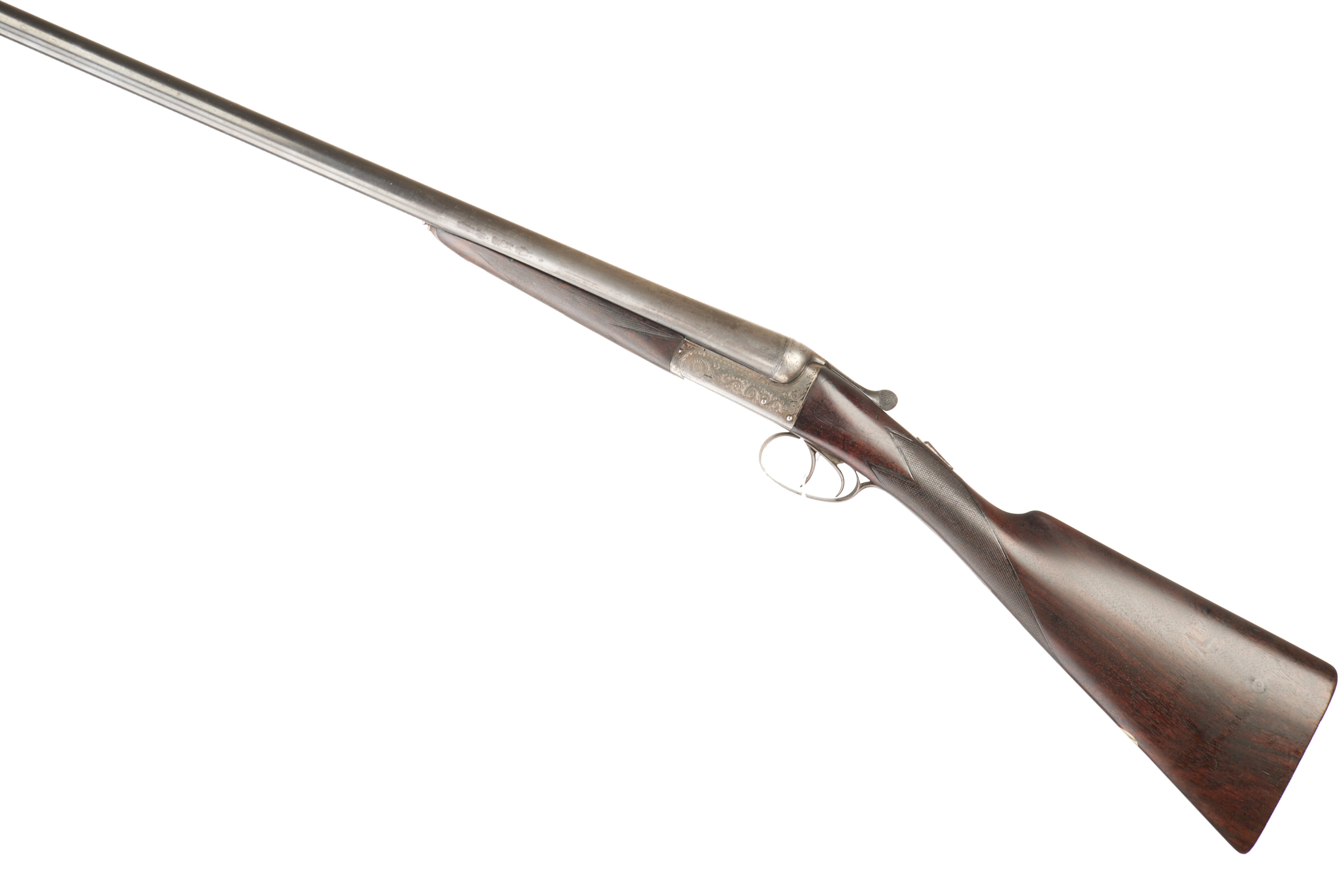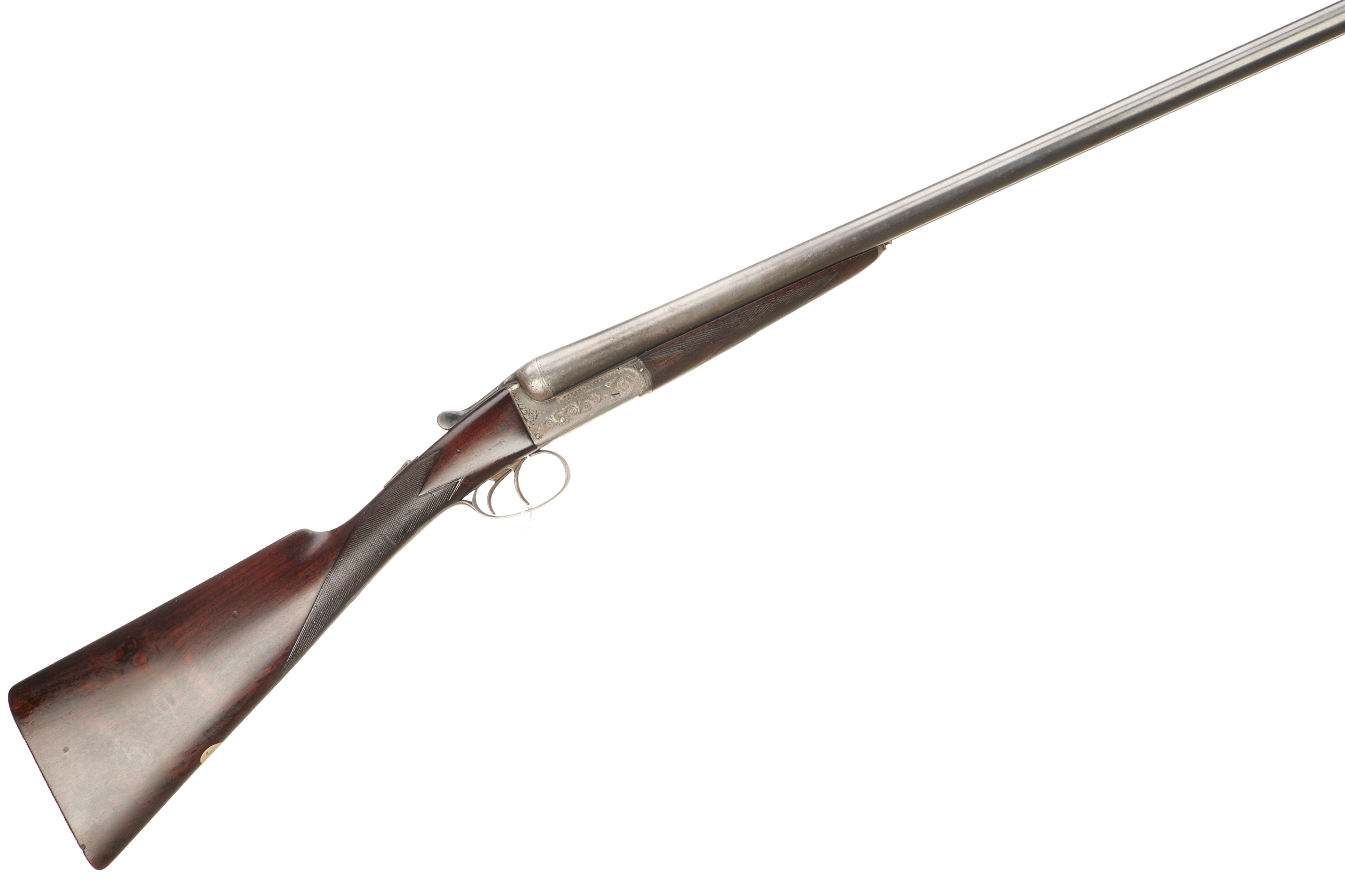 Carved wooden butt, chequered straight grip and forend. Tapered rib engraved ‘P KNIGHT 12 CLINTON STREET EAST NOTTINGHAM’. Treble grip action, hold open top lever, automatic safety with ‘SAFE’ inlaid in gold. The action engraved with extensive acanthus scrolling.