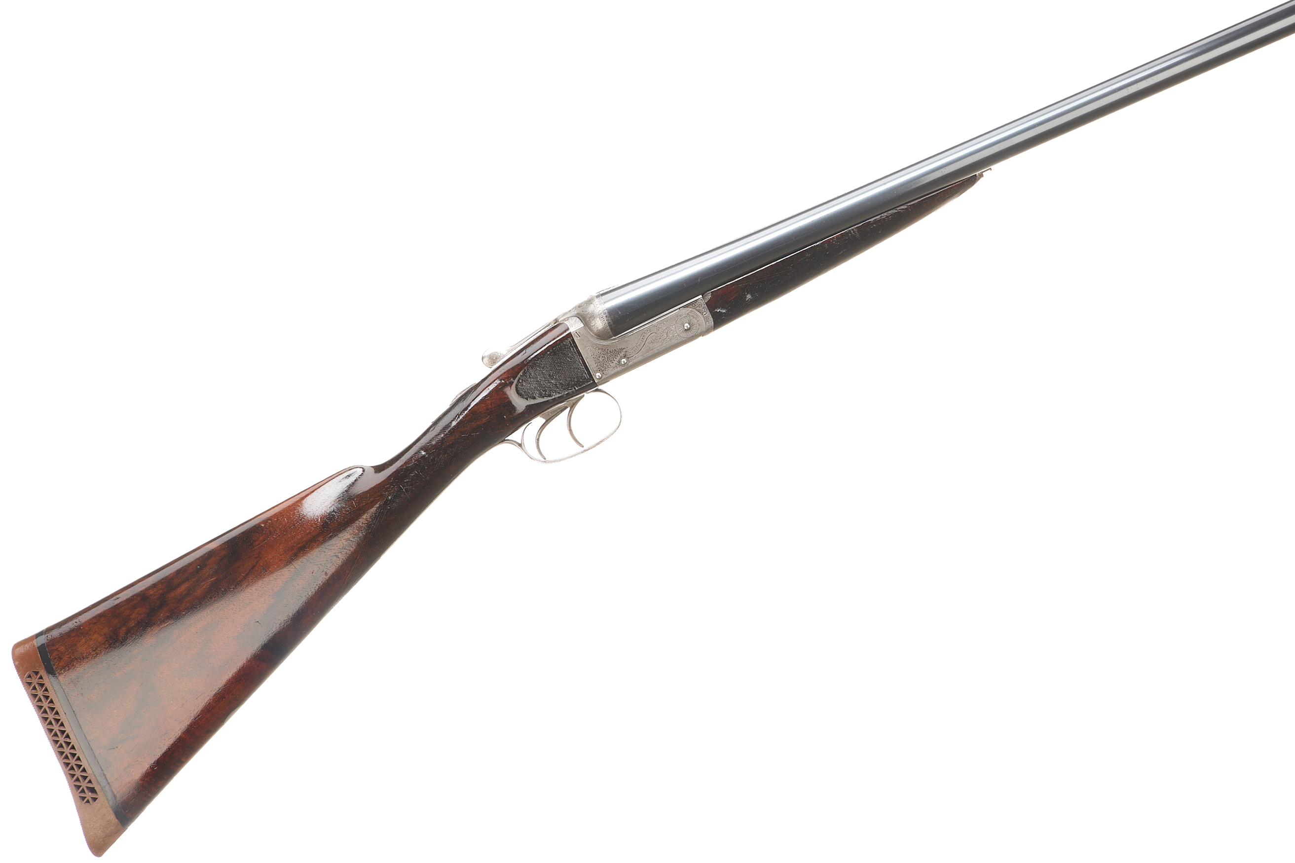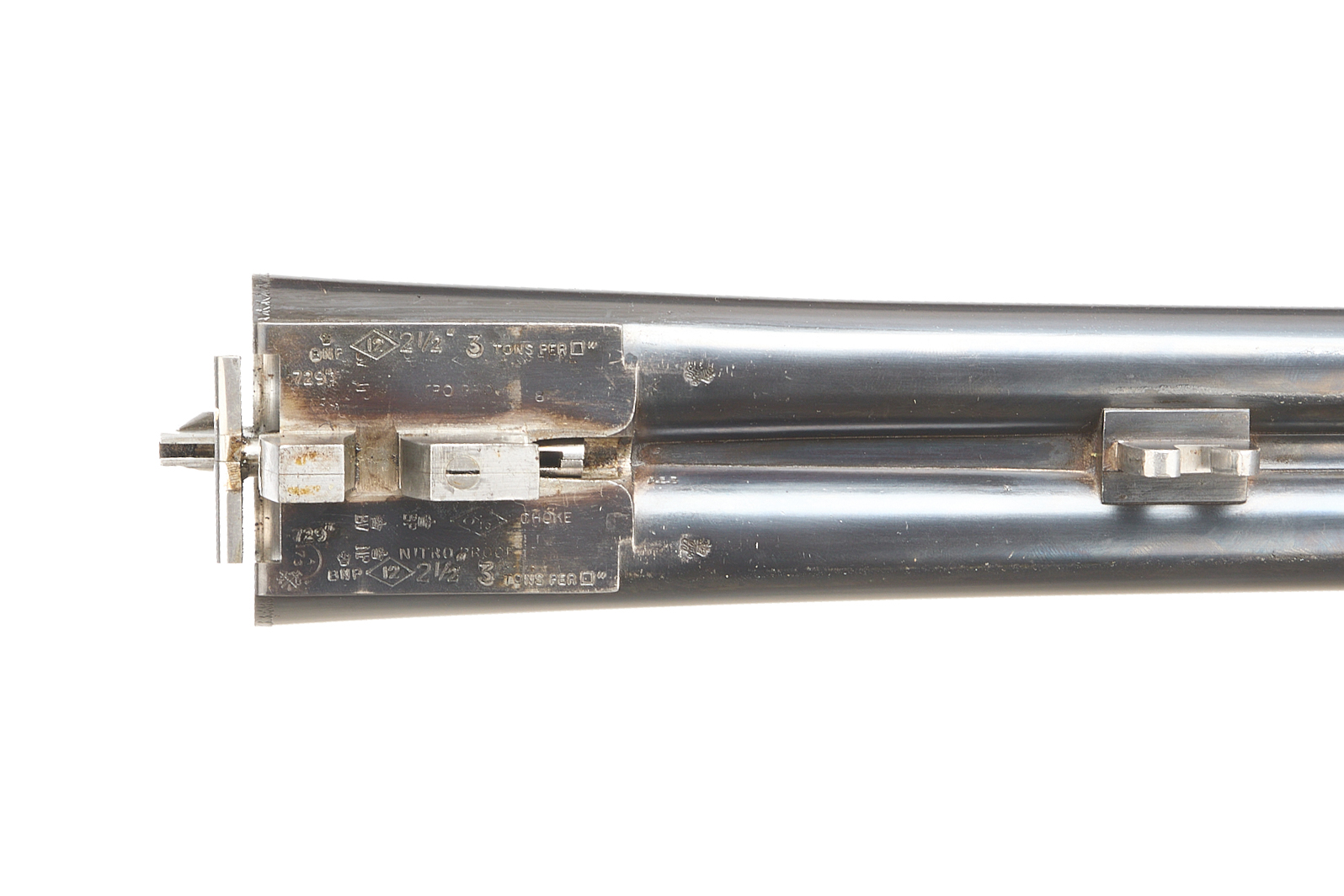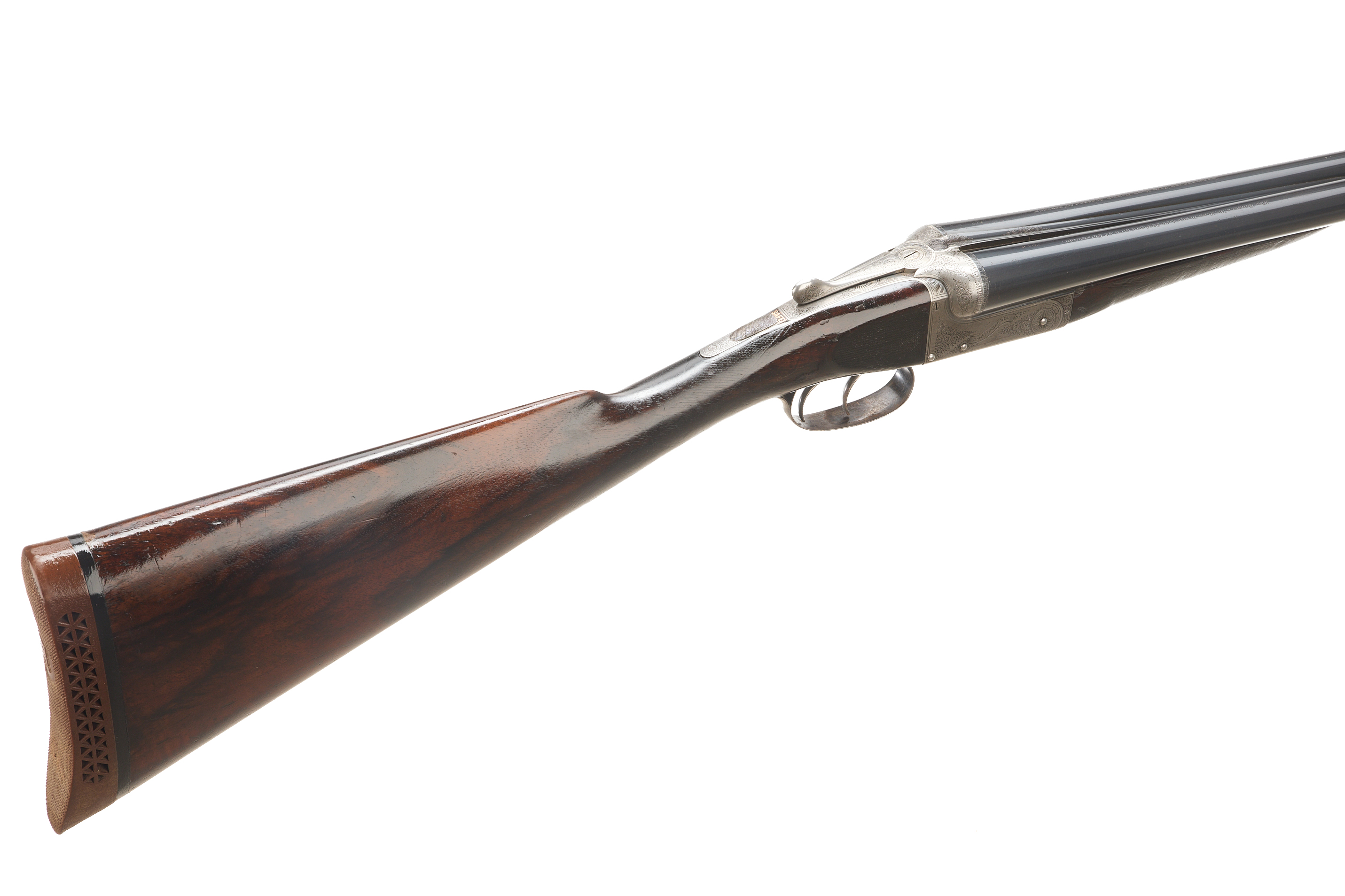 Parker Hale ventilated butt pad, straight grip and forend with little chequering. Replaced Alex Martin ribless barrels engraved ‘NEW BARRELS BY ALEX. HENRY & Co. 22 FREDERICK ST. EDINBURGH’, ‘INCORPORTAED WITH ALEX.MARTIN GLASGOW & ABERDEEN’. Treble grip action, removable striker discs, slender hold open top lever, automatic safety with ‘SAFE’ inlaid in gold. The action finely engraved with bouquets and extensive acanthus scrolling, ‘DANL FRASER & CO’ on a scroll to the sides.