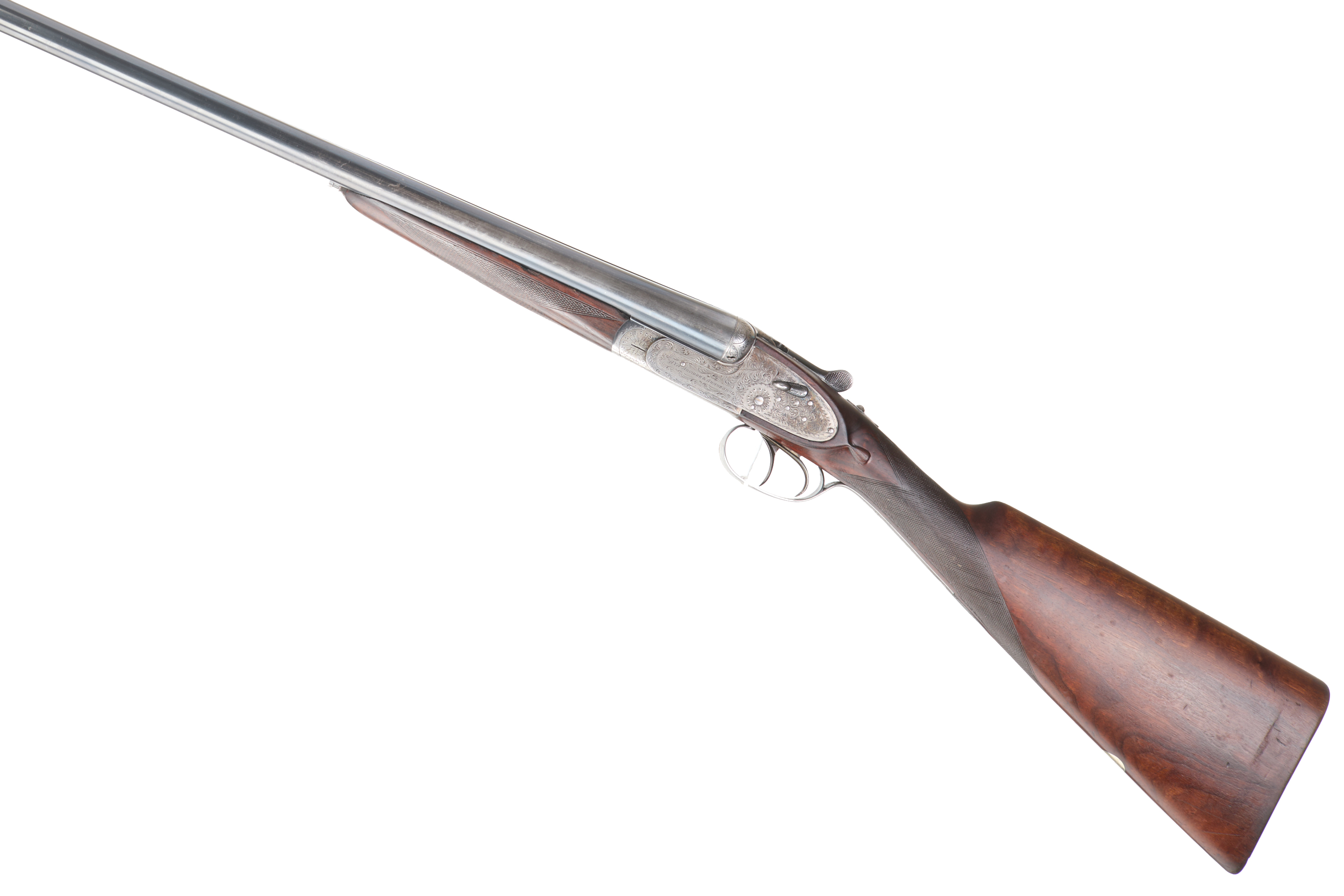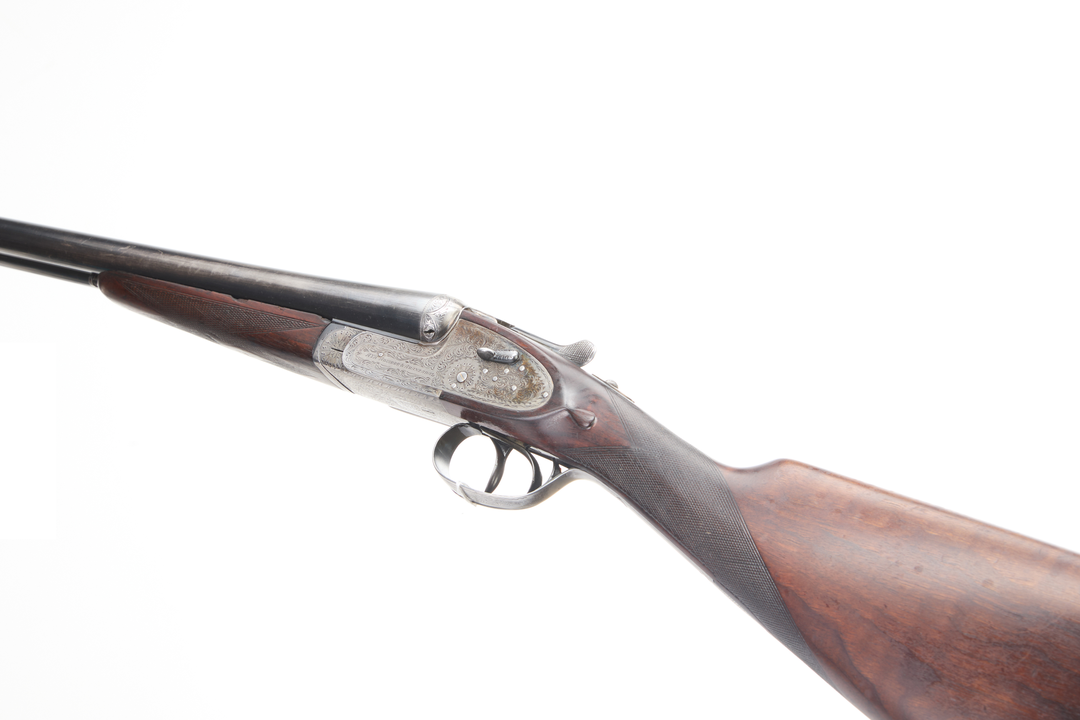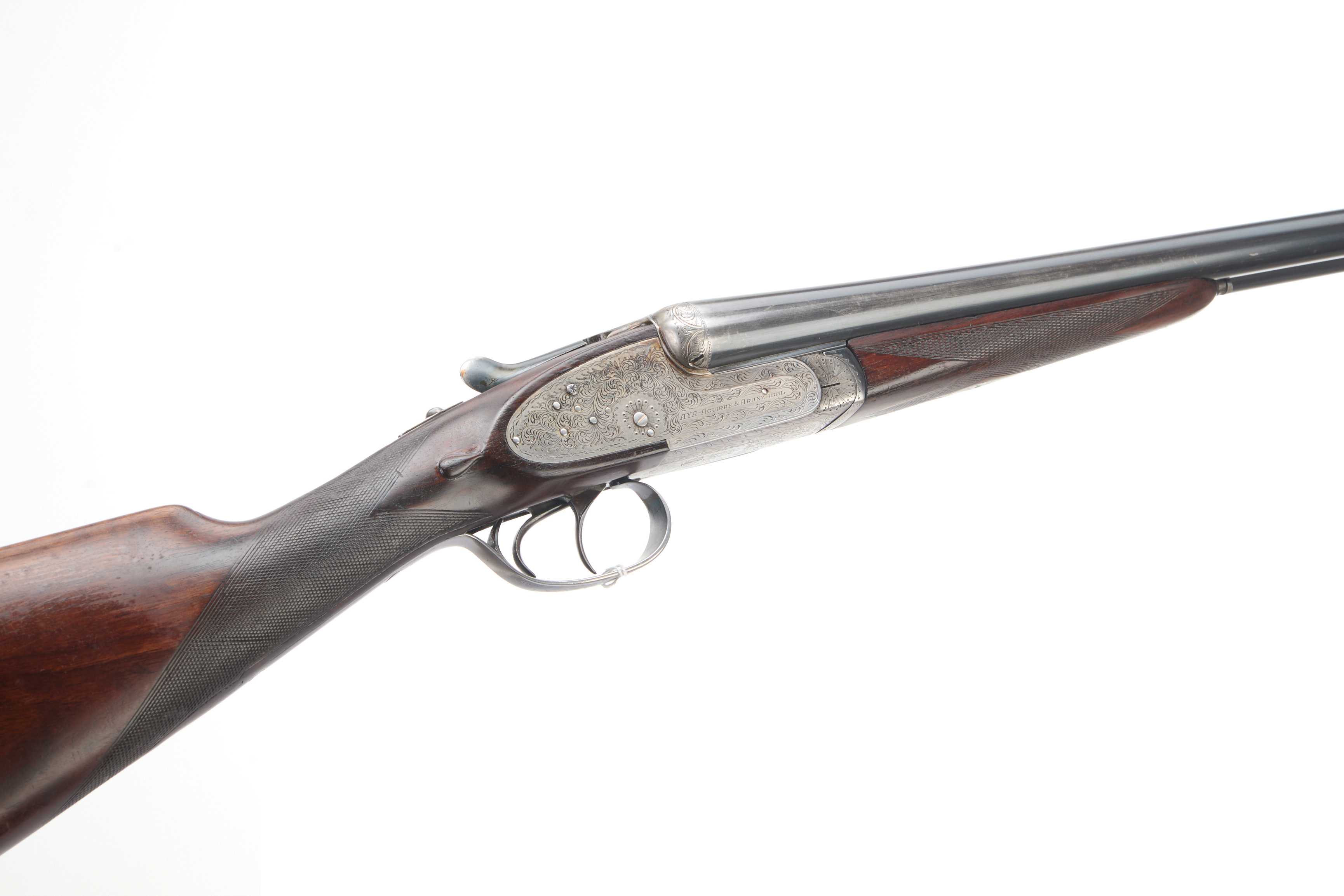 Chequered butt, straight grip and forend. Midrib engraved ‘AYA – AGUIRRE & ARANZABAL – MADE IN SPAIN’ with acanthus highlight to breech end. Action hold-open top lever, automatic safety with ‘S’ inlaid in gold, hand detachable sidelocks, cocking indicators. Elaborate, deeply engraved throughout the action with acanthus scrolling and the makers name to the sides. Barrels – 28 1/4in, Chambers – 2 3/4 in, Choke – Cyl, 1/4, LOP – 14 1/2 in, OAL – 45 in