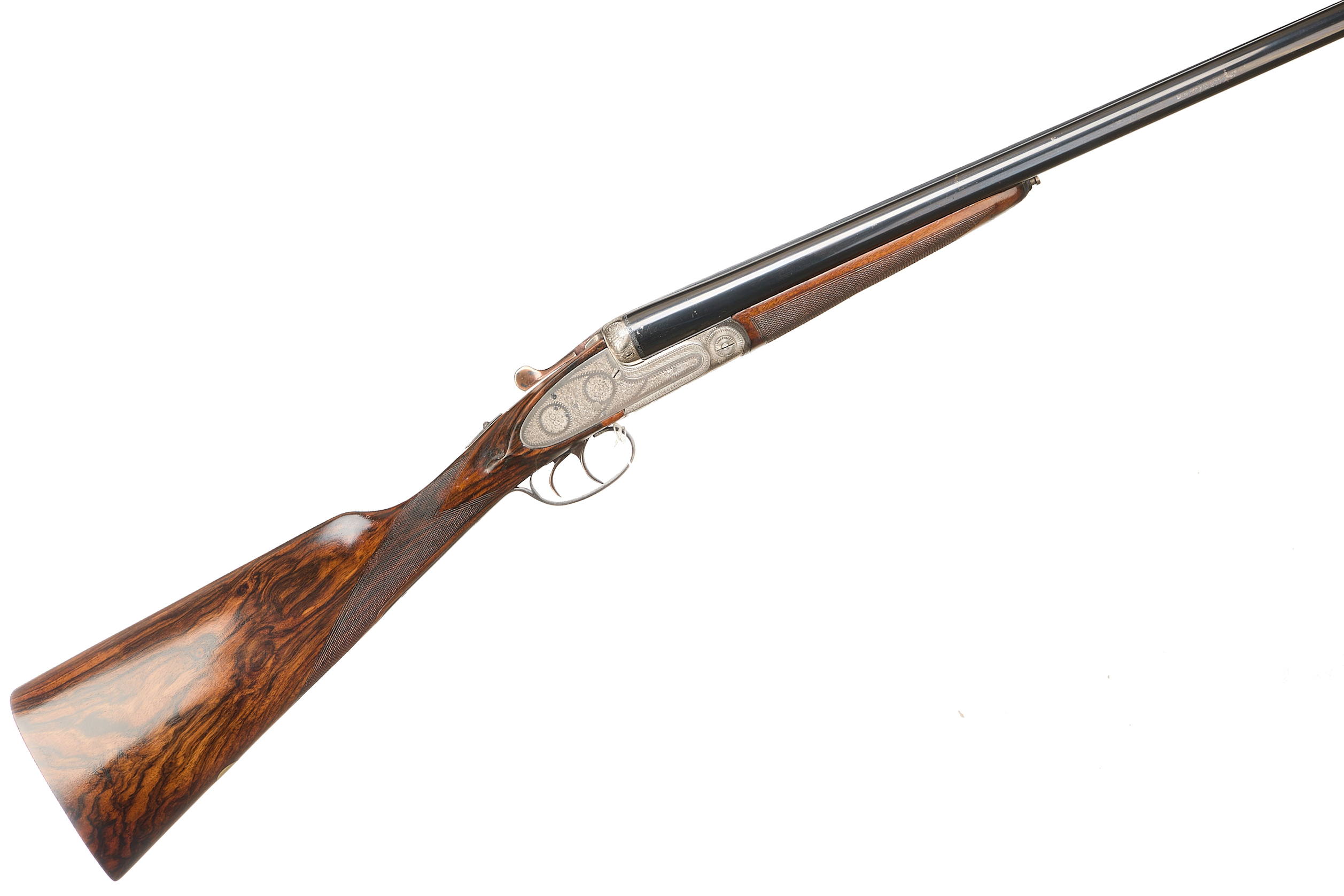 Chequered butt to highly figured stock, chequered straight grip and forend. Tapered flat rib, engraved ‘DENTON & KENNELL’ . Chopper lump barrels, top lever, automatic safety with ‘SAFE’. The action bright, engraved with bouquets acanthus scroll. O2 for 1996.