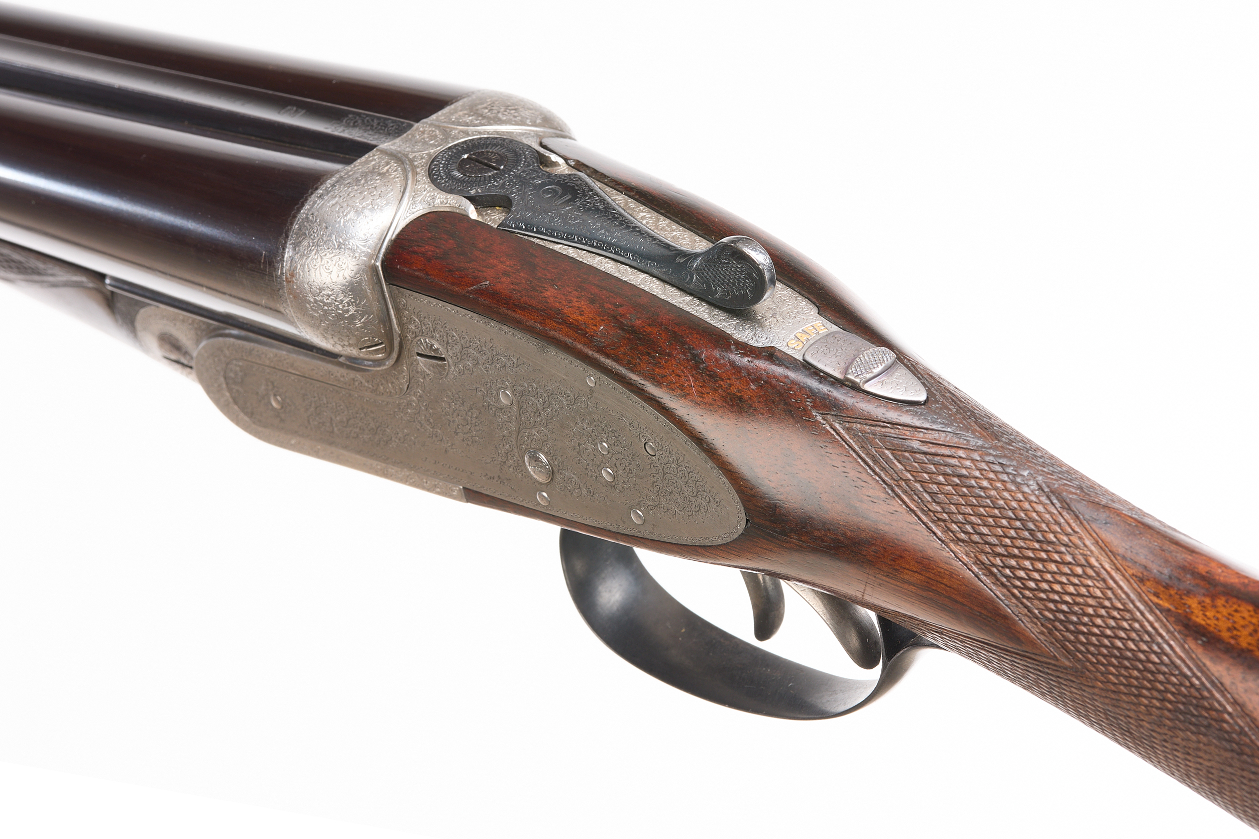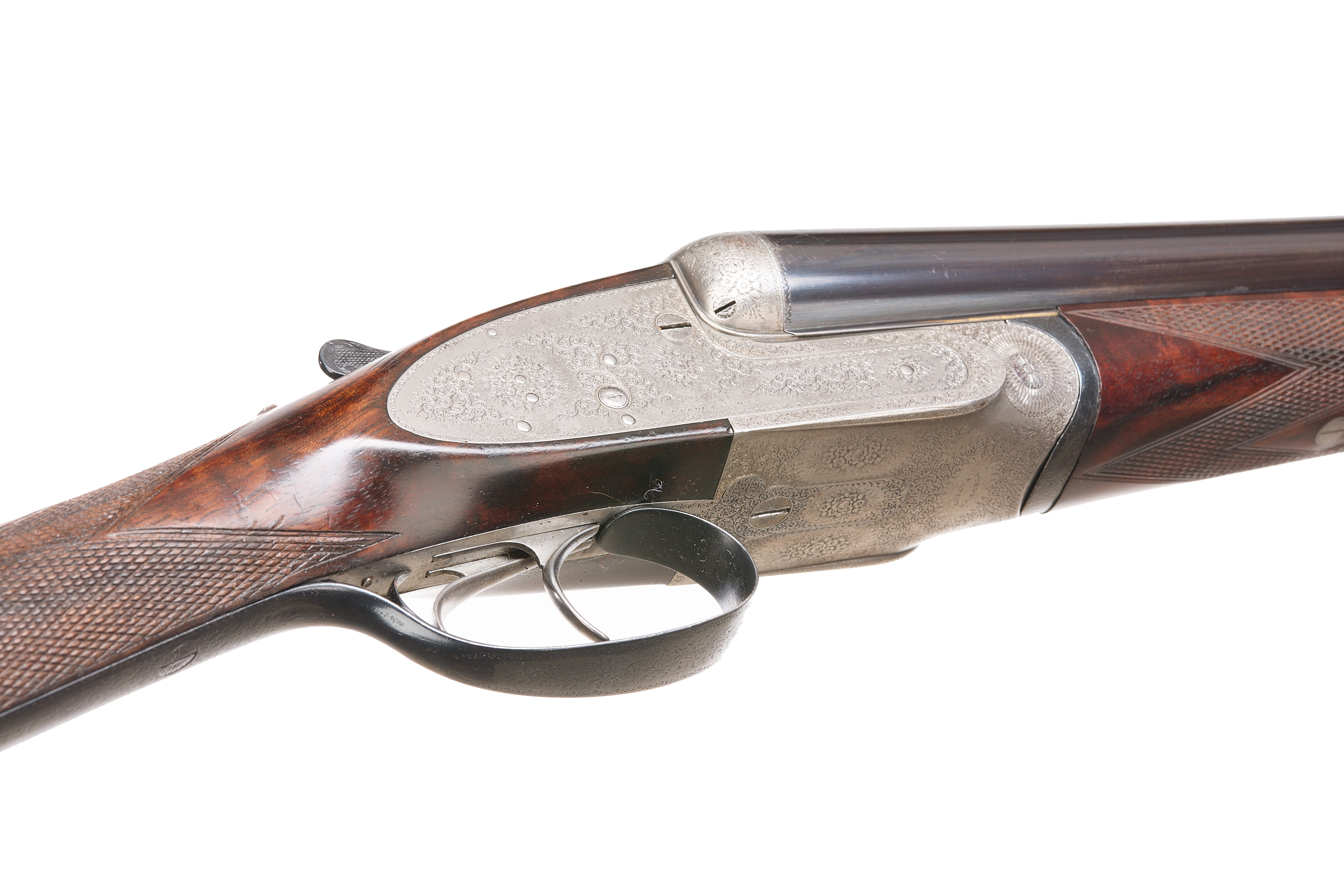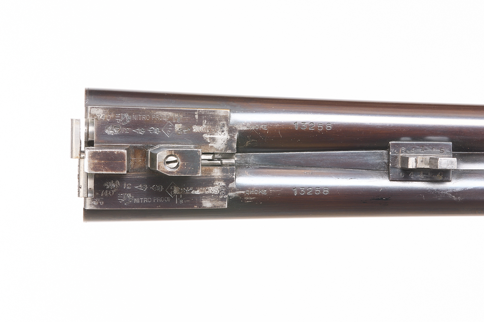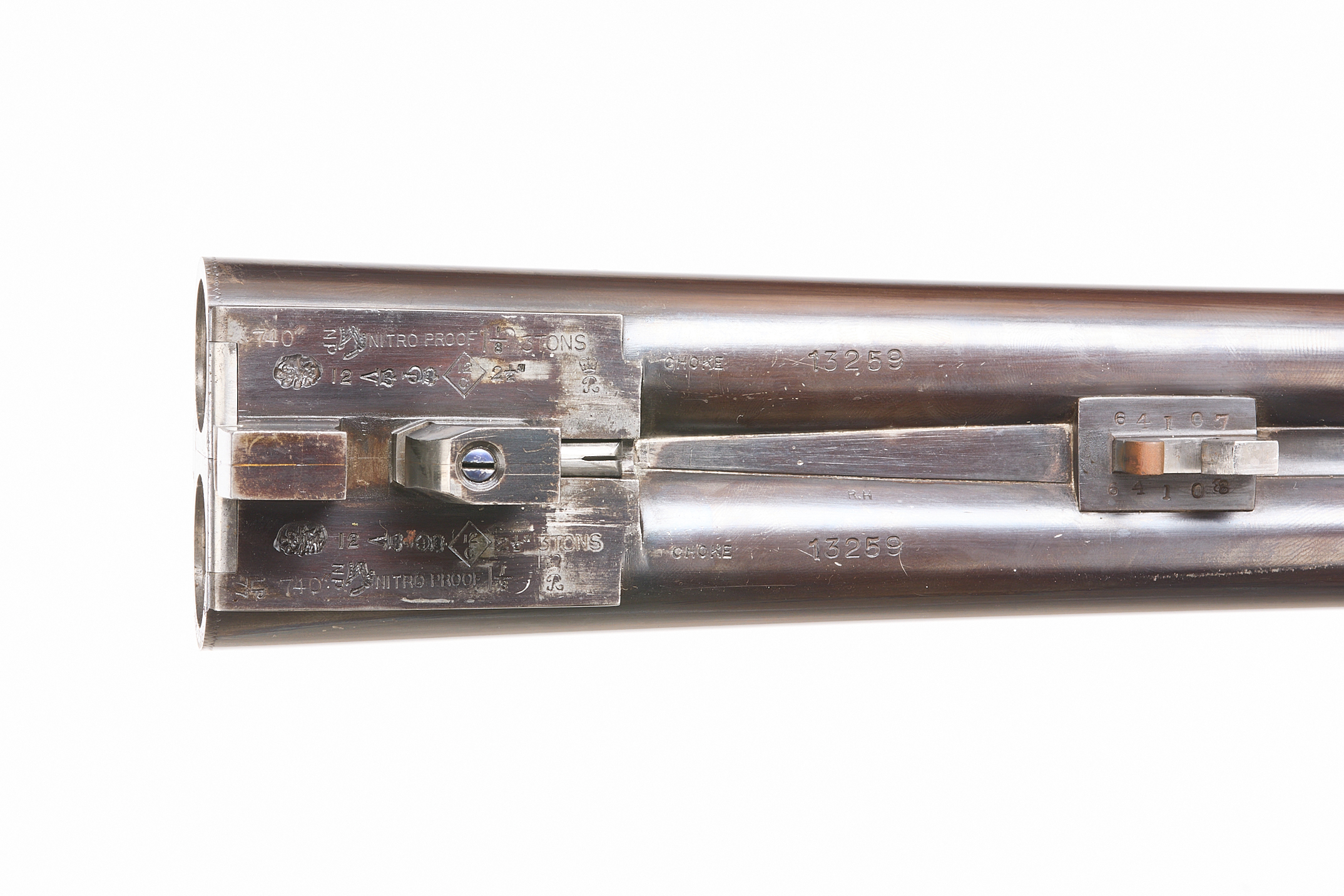 Weight:6lb. 13½oz. Calibre:12-bore Barrels: 30in. Whitworth Choke: Both Full Stock: 14 5/8 1/16in. Notes: Early example of a Wem ejector Gold oval 1903: Rib taken off and refastened 3rd April 1941: New barrels fitted to pair Light Cyl. & Mod. Belong to the Earl of Dundonald 6th July 1972: Now the property of John E Milne