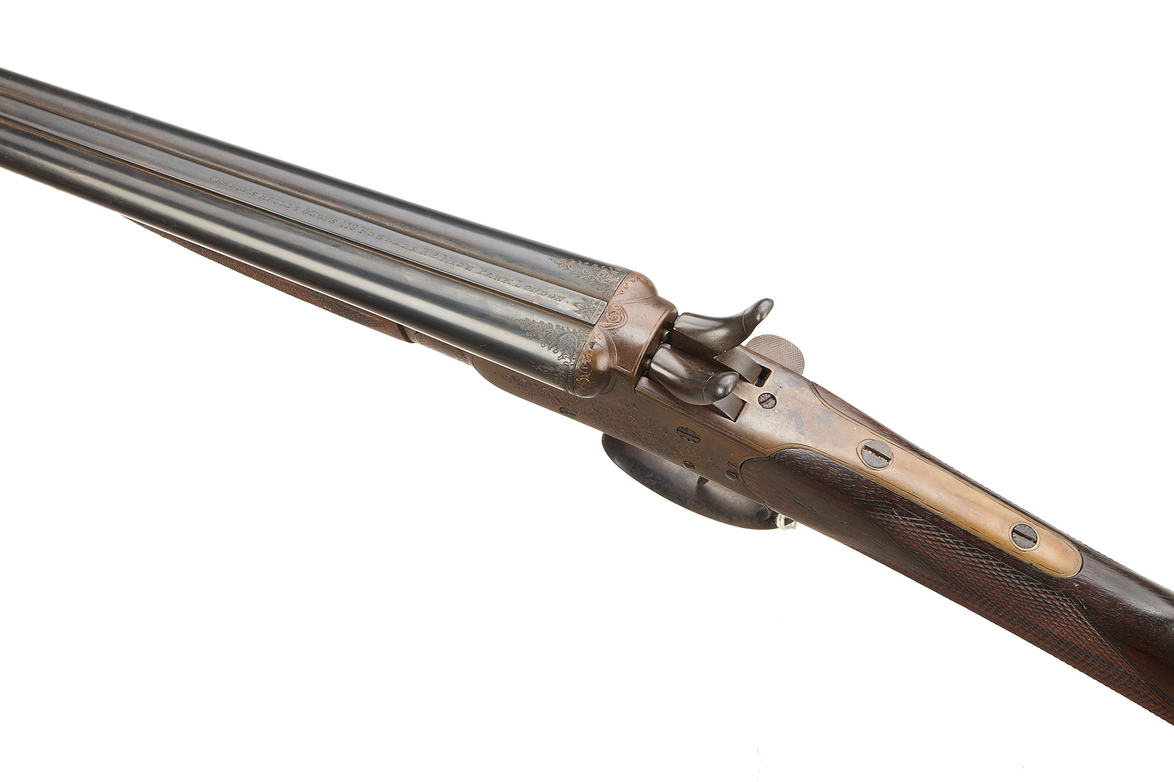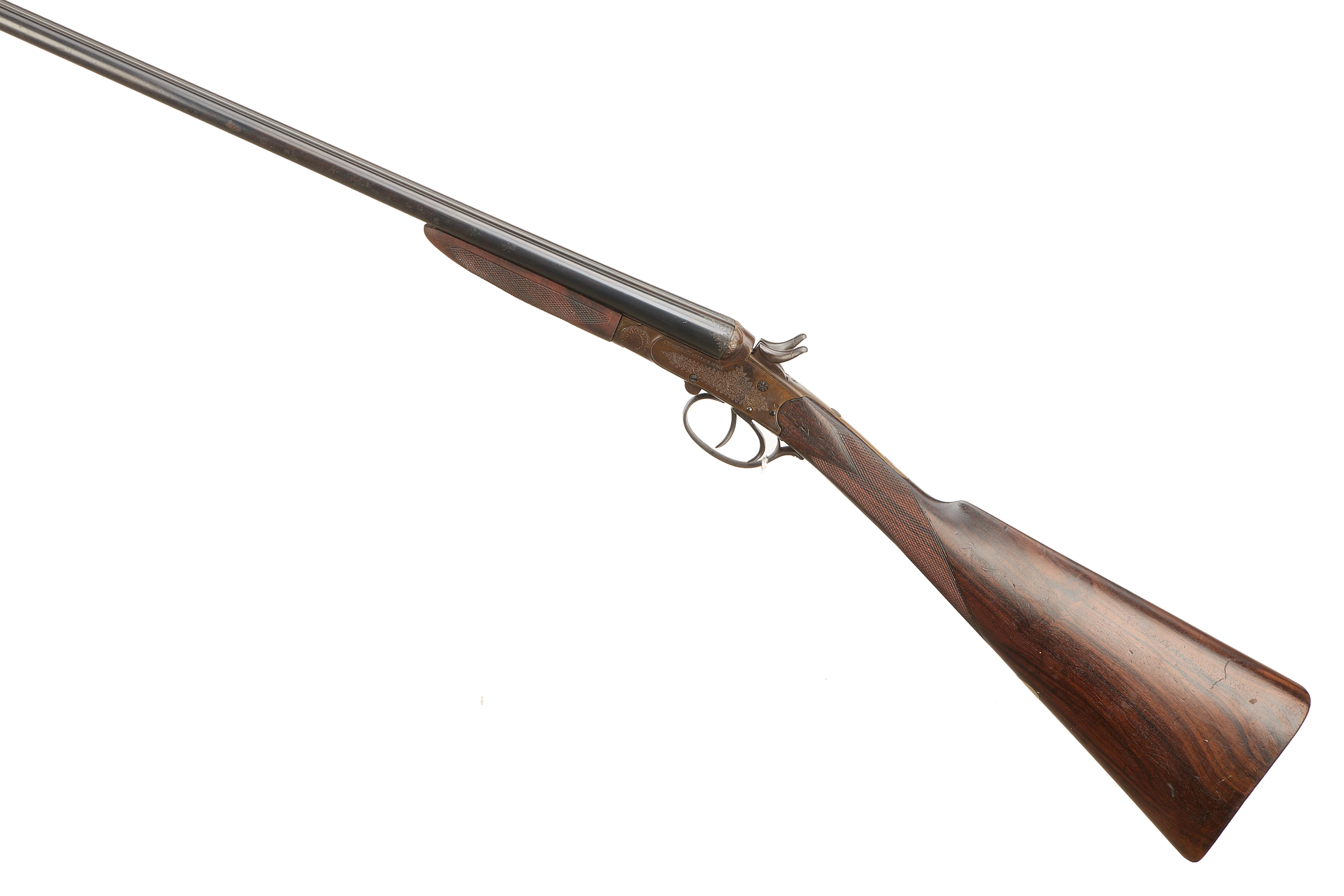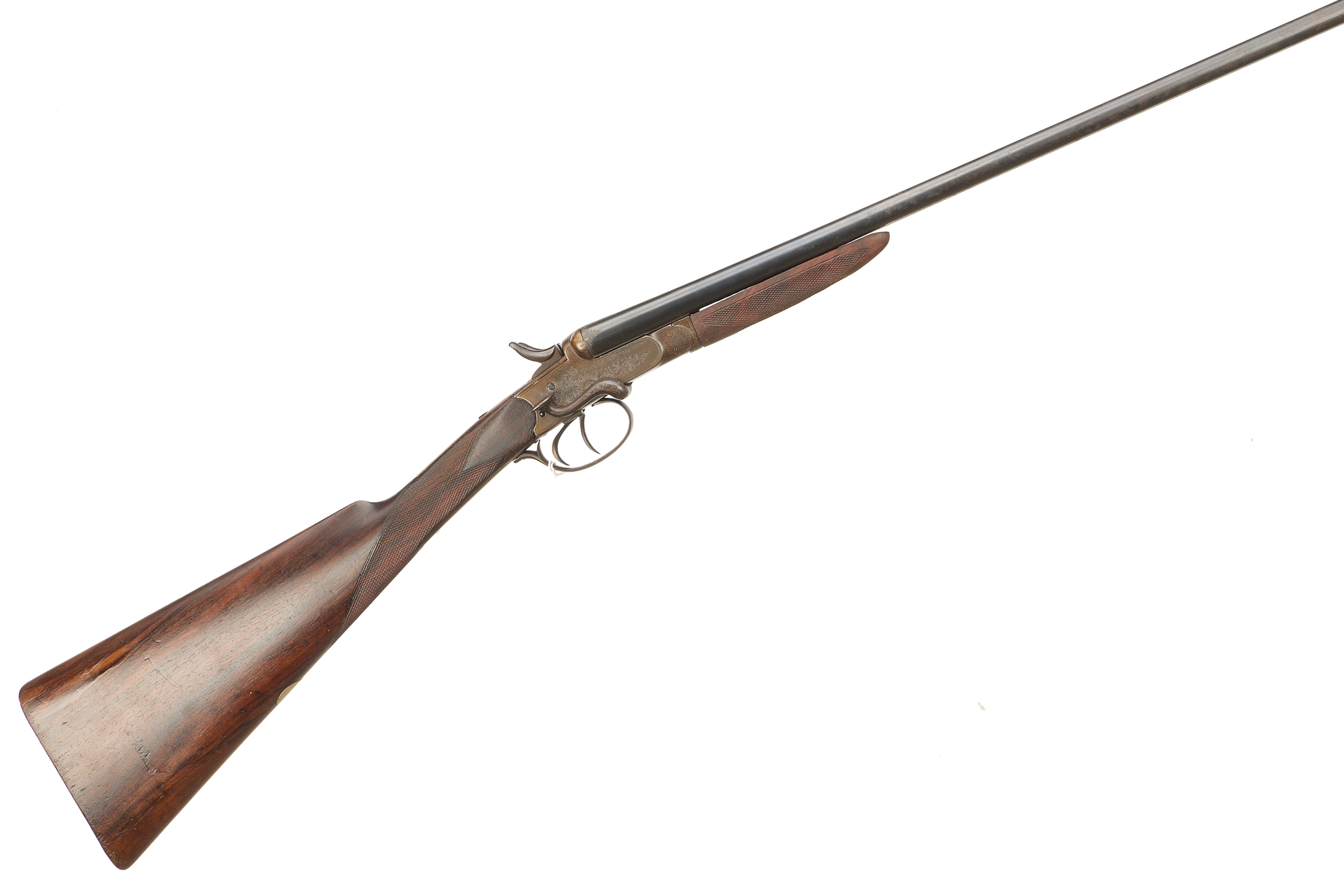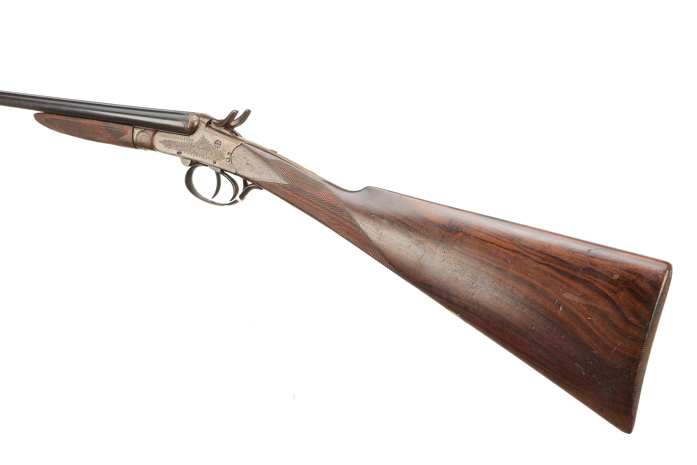 Replaced stock, scroll flourish embellishments to breech end. Action refinished, 2007 reproof. Chambers 2 1/2", Barrel 28 1/2", Pull 14 1/2", OAL 43 5/8".