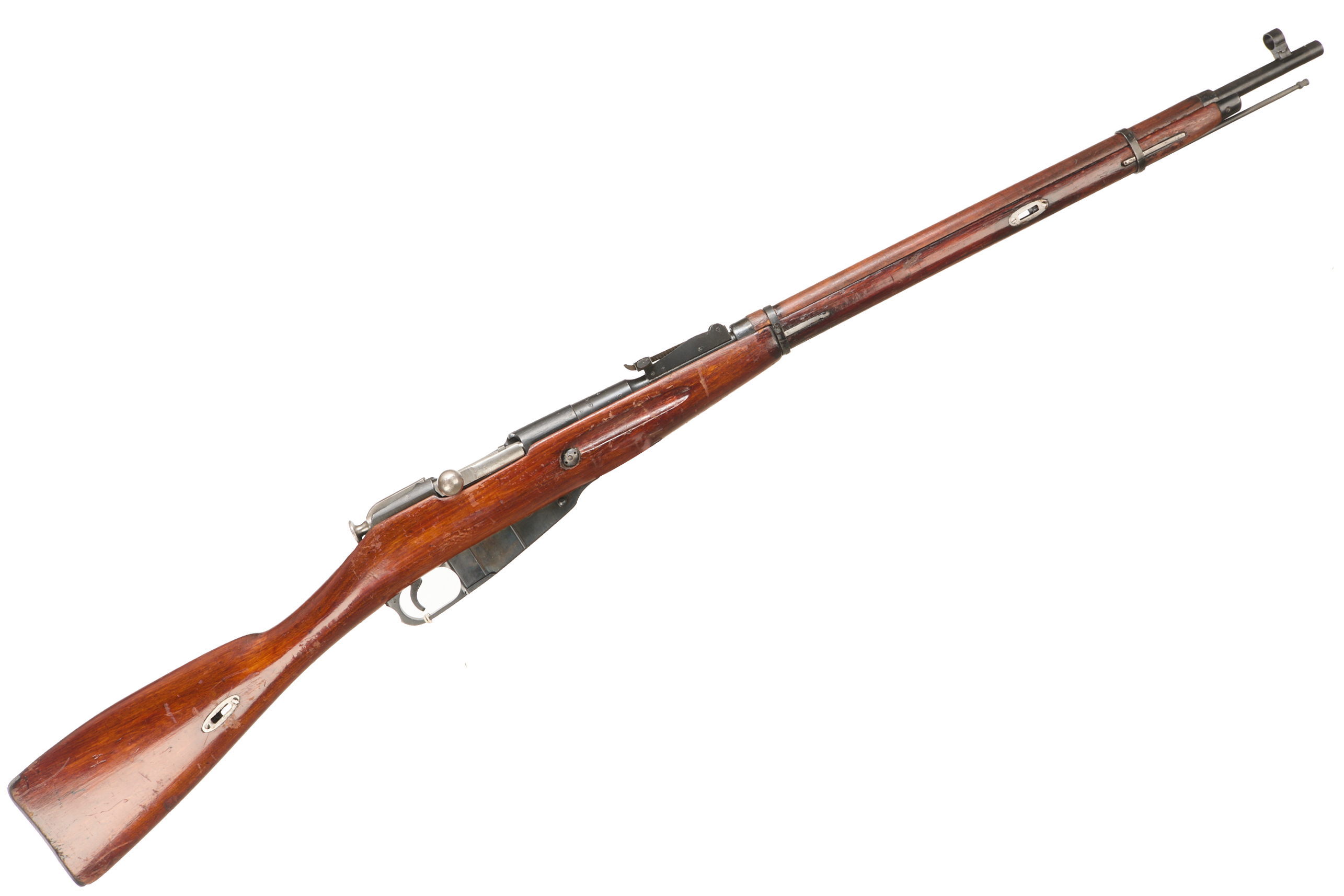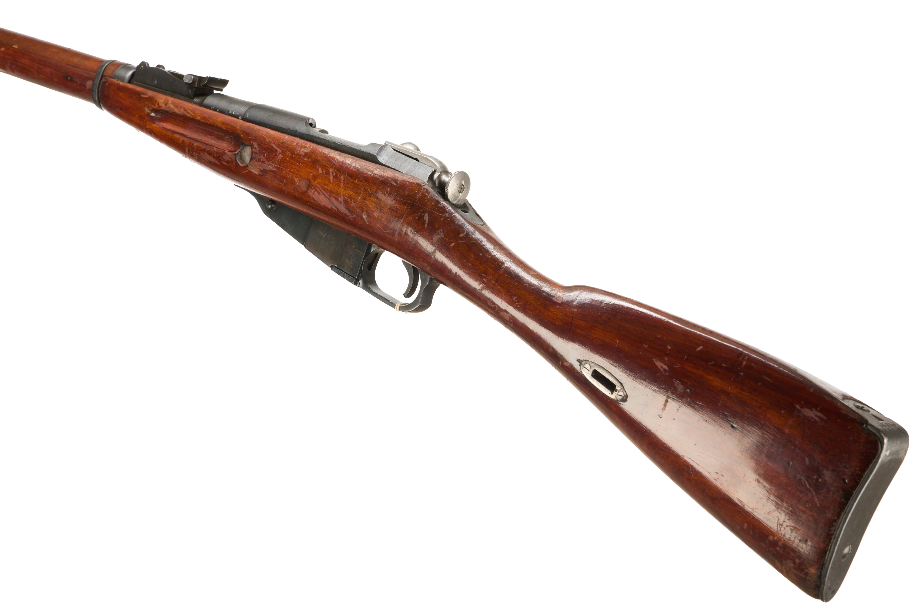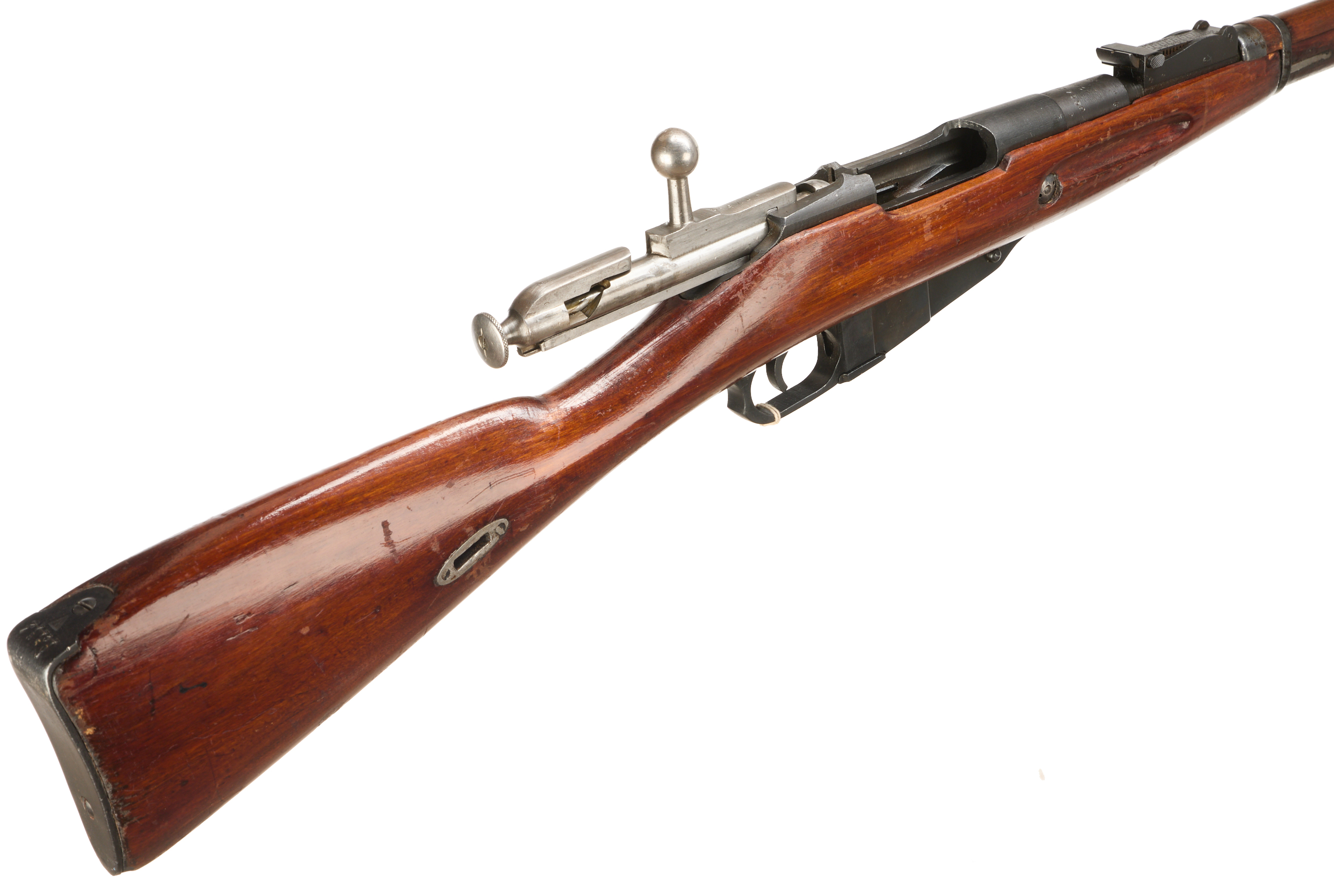 A model 1891/30, for 1943, produced in Izhevsk Arsenal, all matching numbers EXCEPT butt plate. Steel butt plate, hardwood stock with front and rear sling mounting points. Ladder rear sight, hooded post front sight. Country of manufacture: Soviet Union,