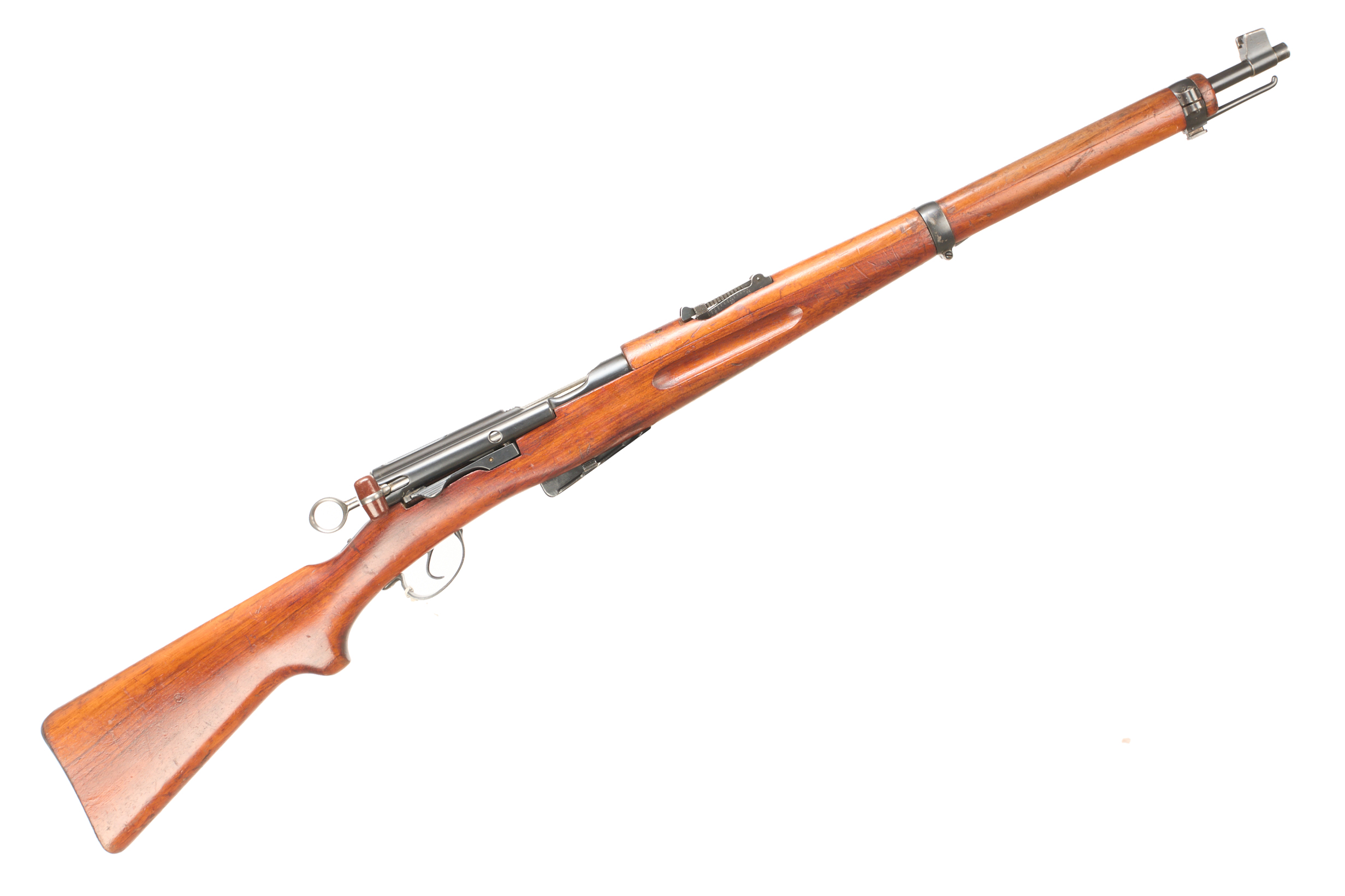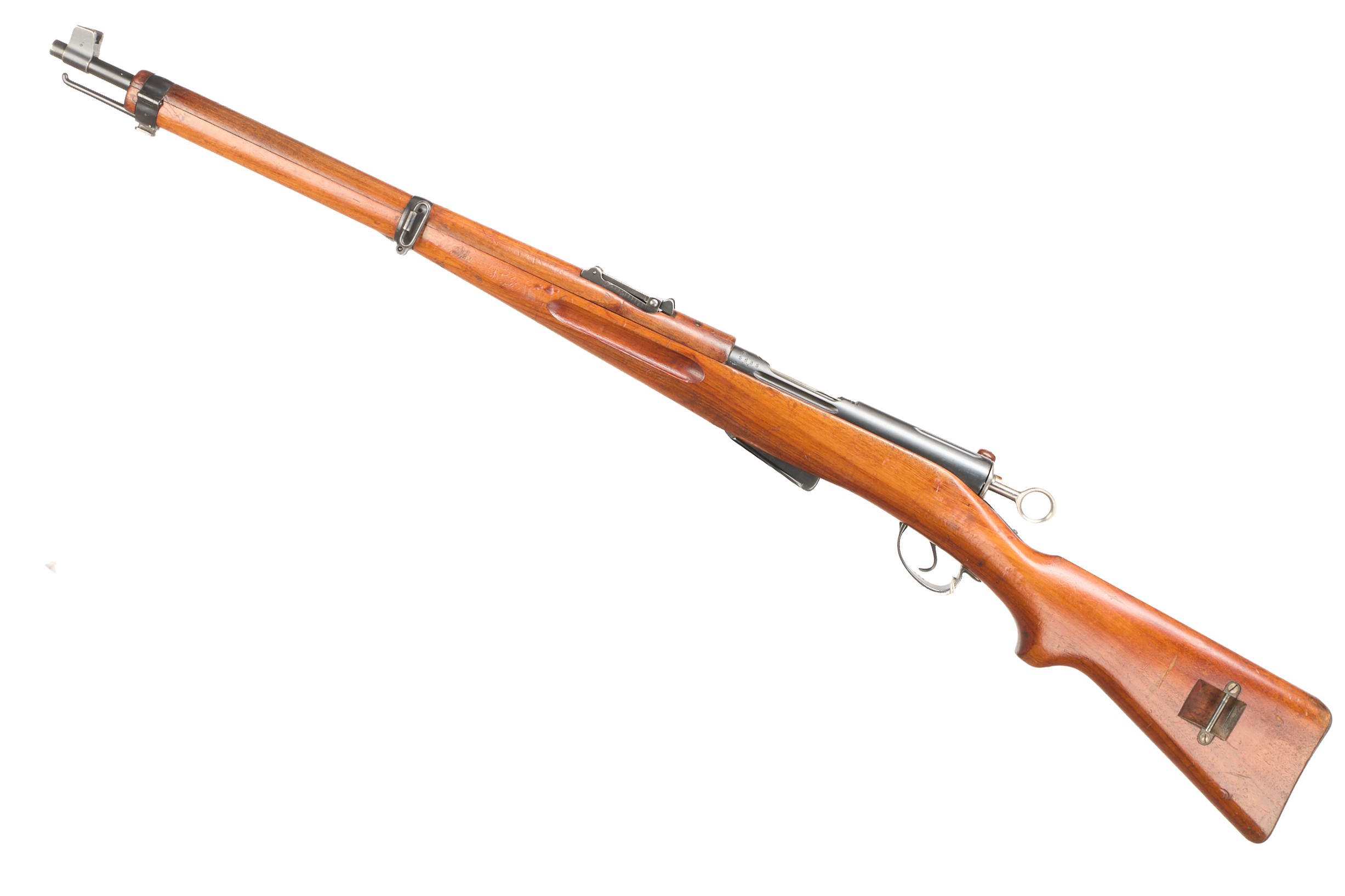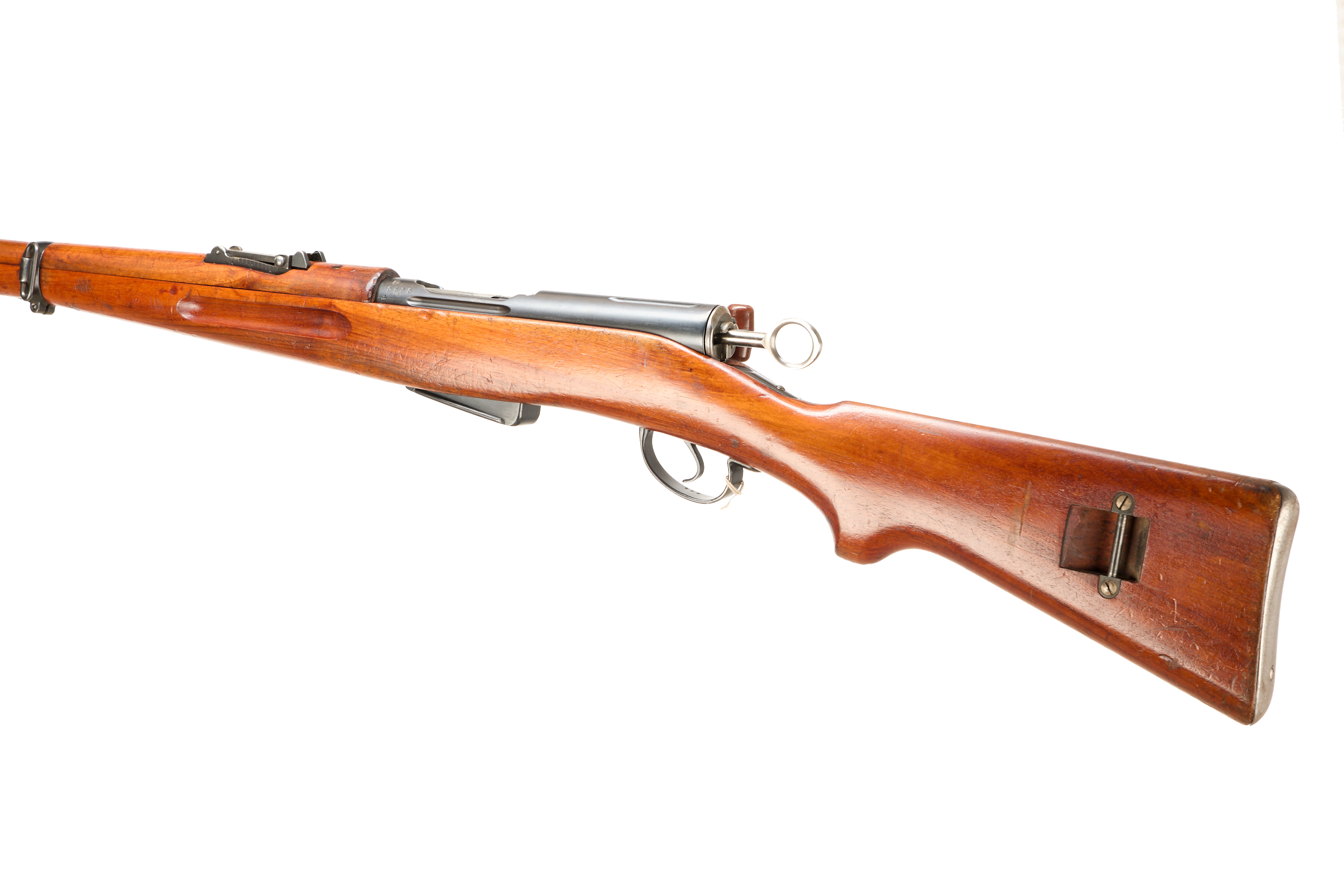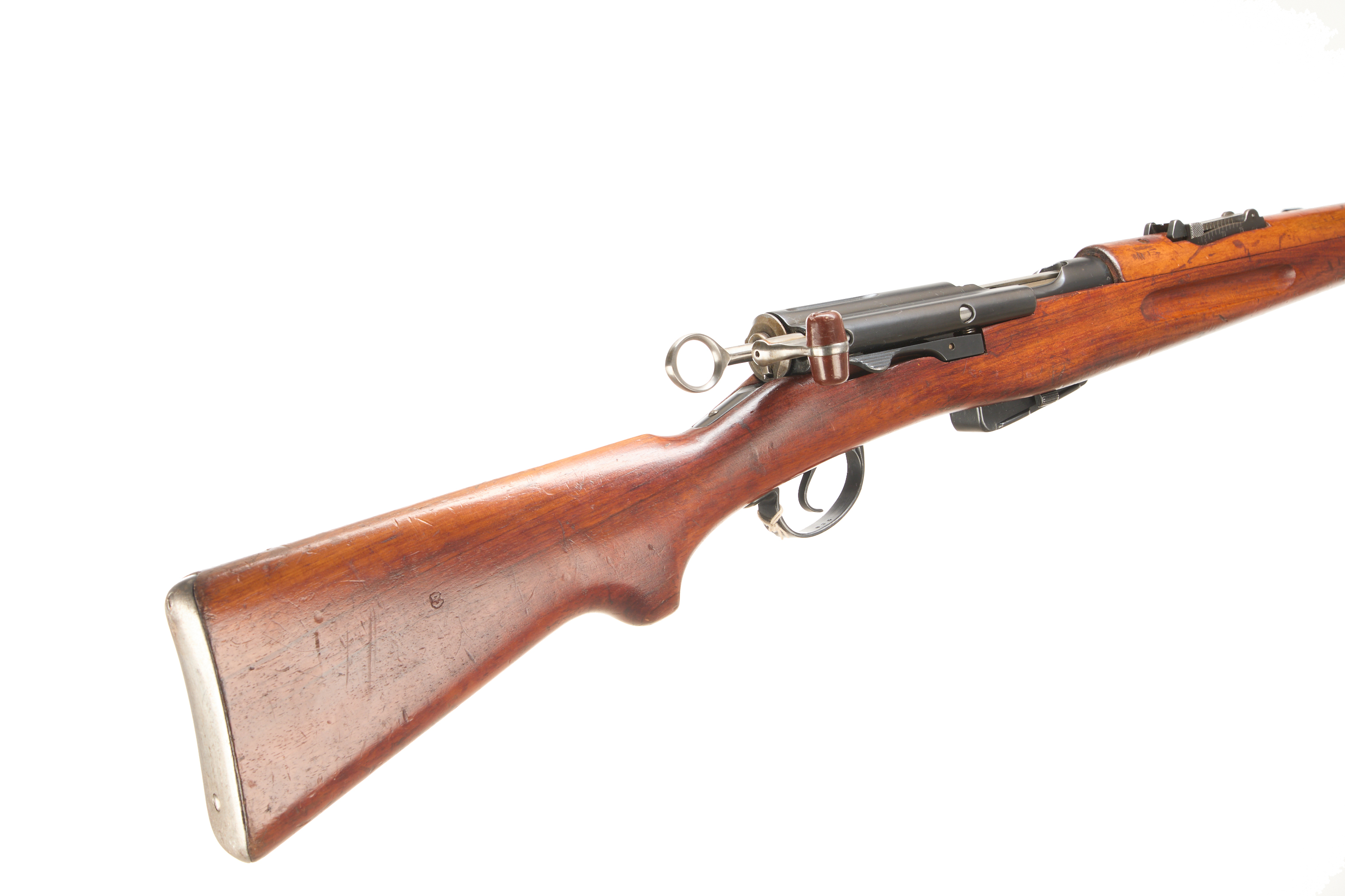 Metal buttplate, sling attachment, full length stock, barrel band with additional sling swivel. Bayonet lug, adjustable post foresight with protectors, ramp rearsight to 1500m. Matching serial numbers. CW detachable magazine. Country of manufacture: Switzerland