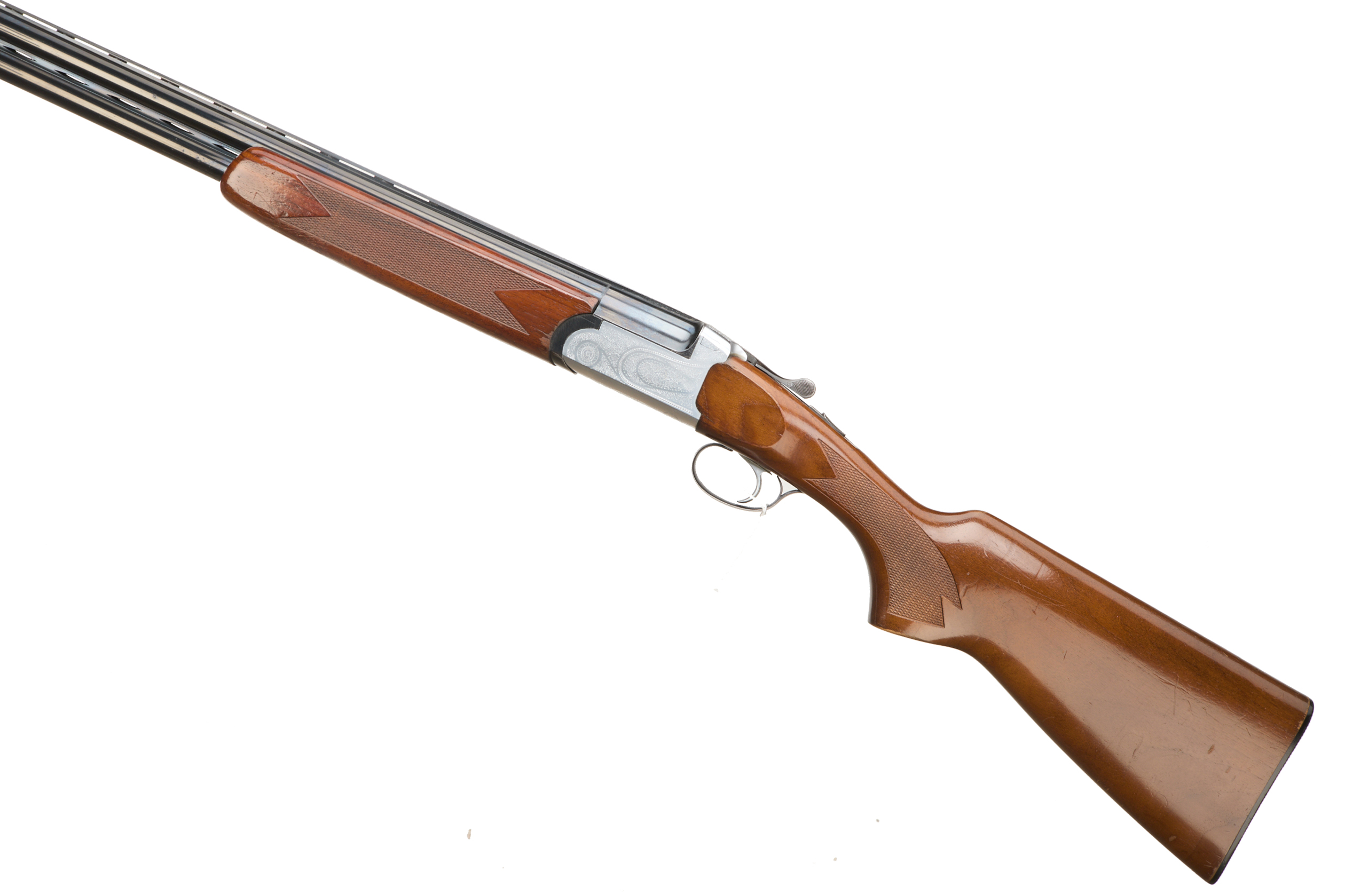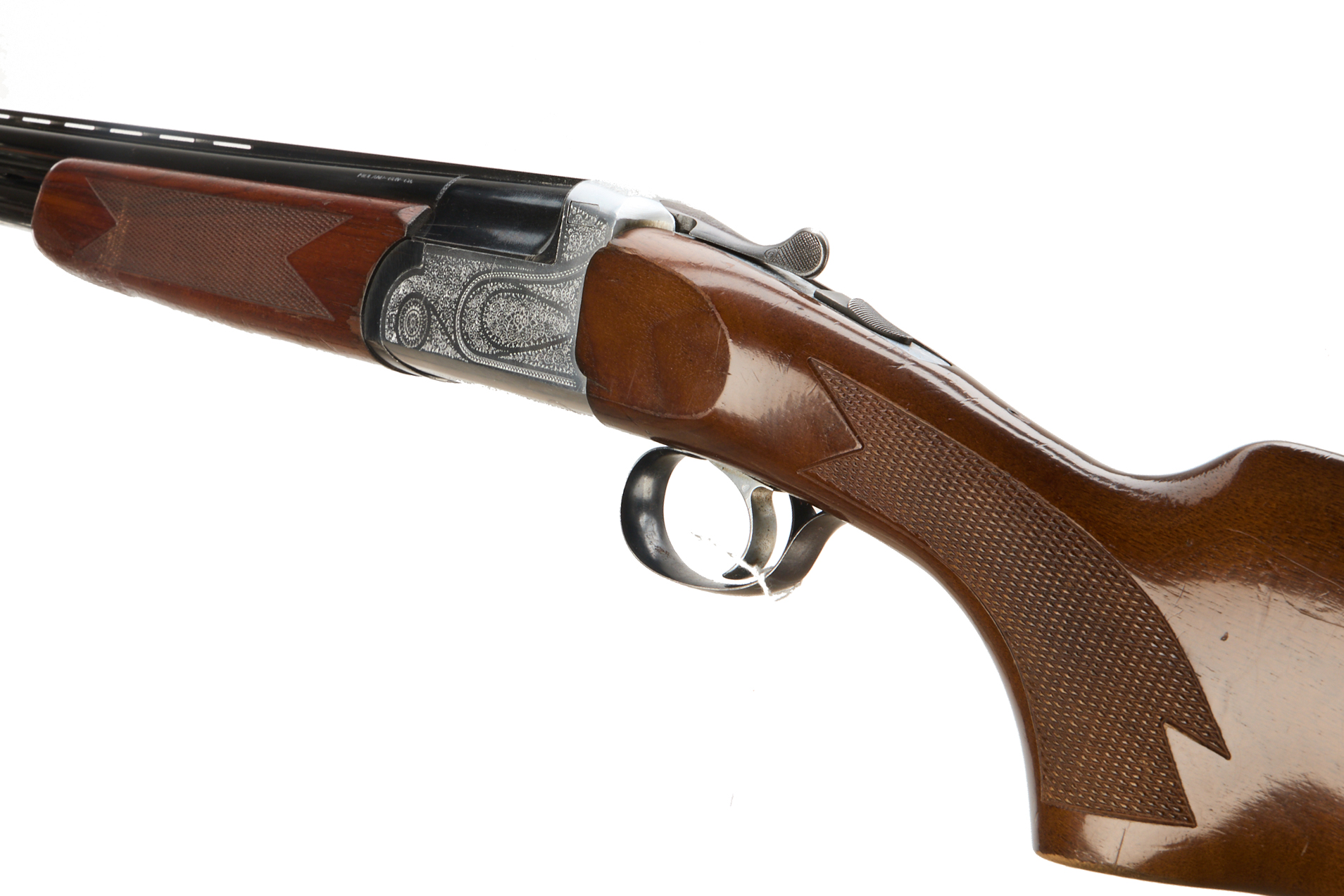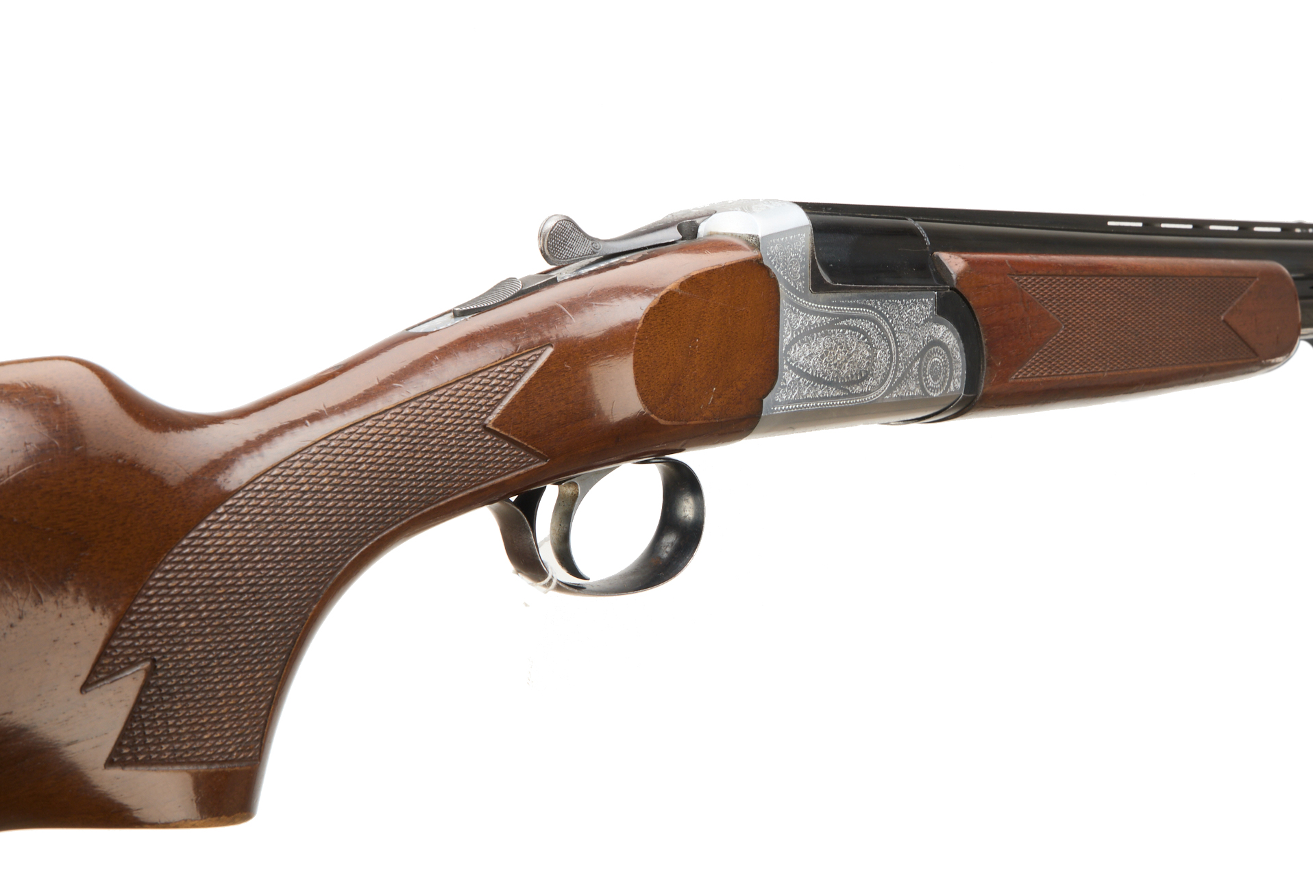 Ebonite butt pad, chequered semi-pistol grip and forend, ventilated top and mid rib. Acanthus scrolls to action. Integrated barrel selector (selective single trigger) and safety.