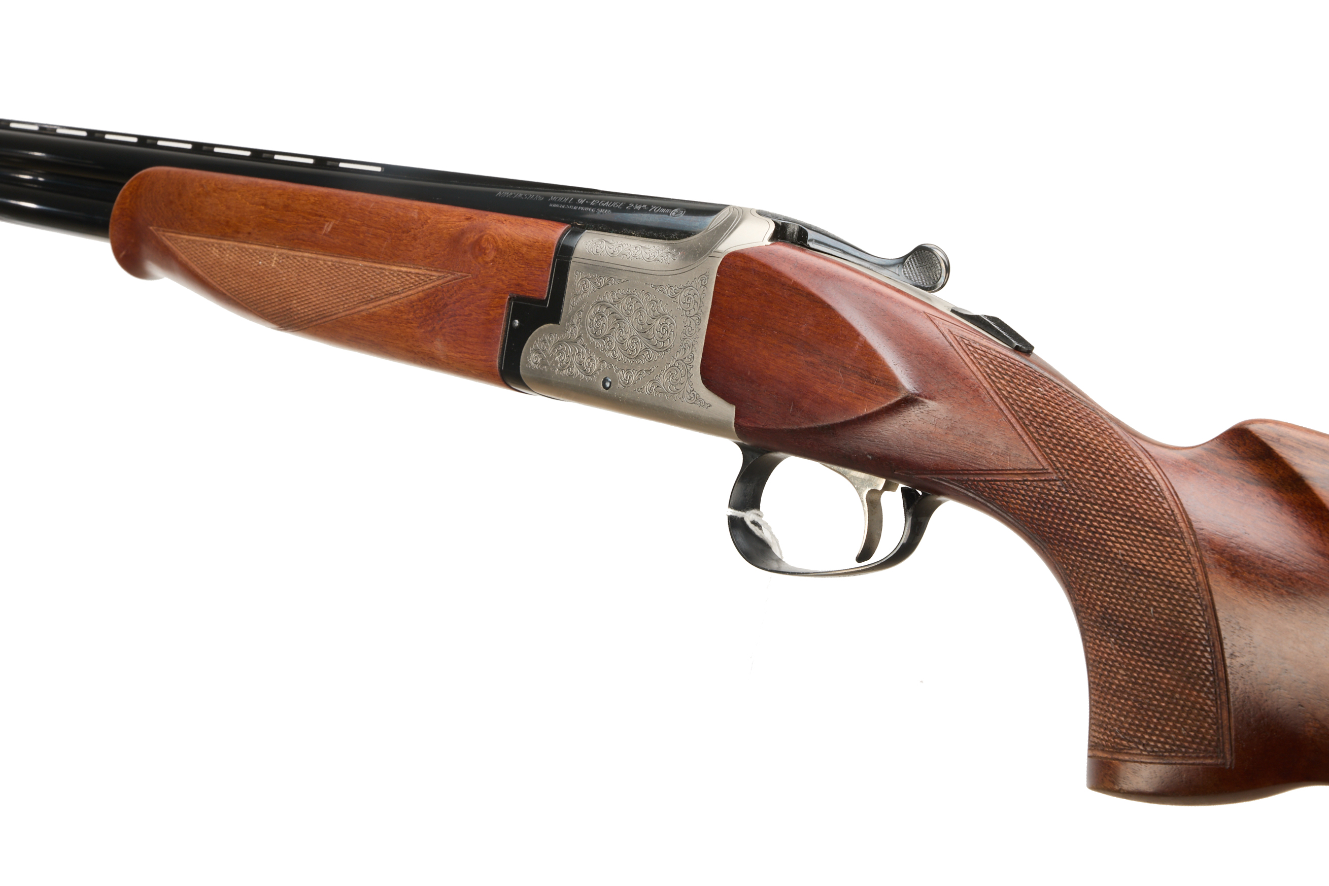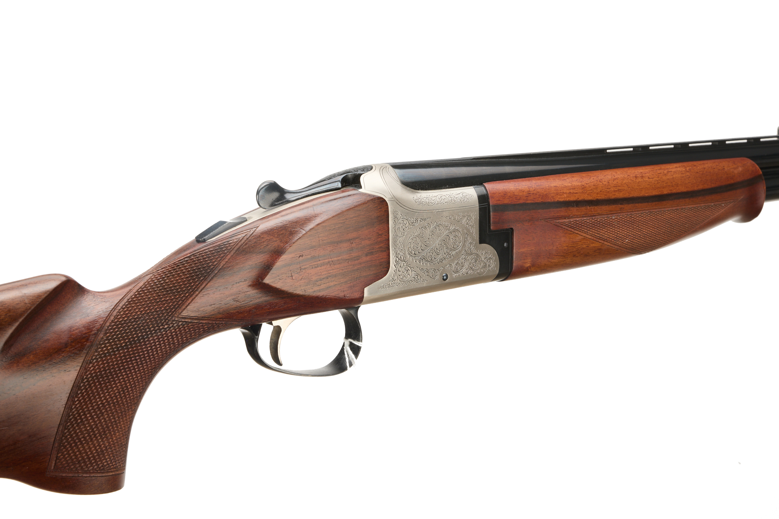 Hard plastic butt pad, chequered semi-pistol grip and forend, ventilated top rib. Acanthus scrolls to action. Integrated barrel selector (selective single trigger) and safety.