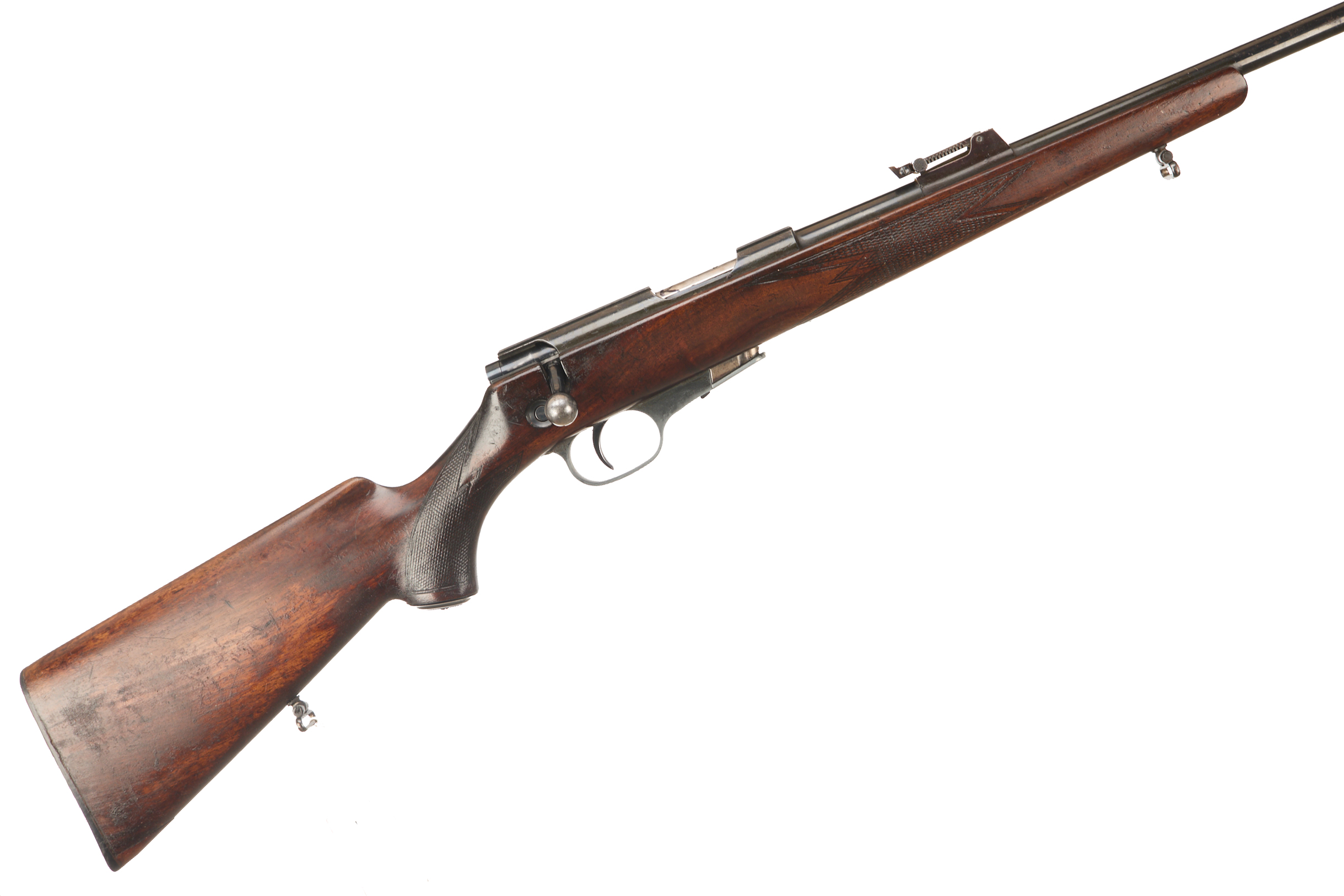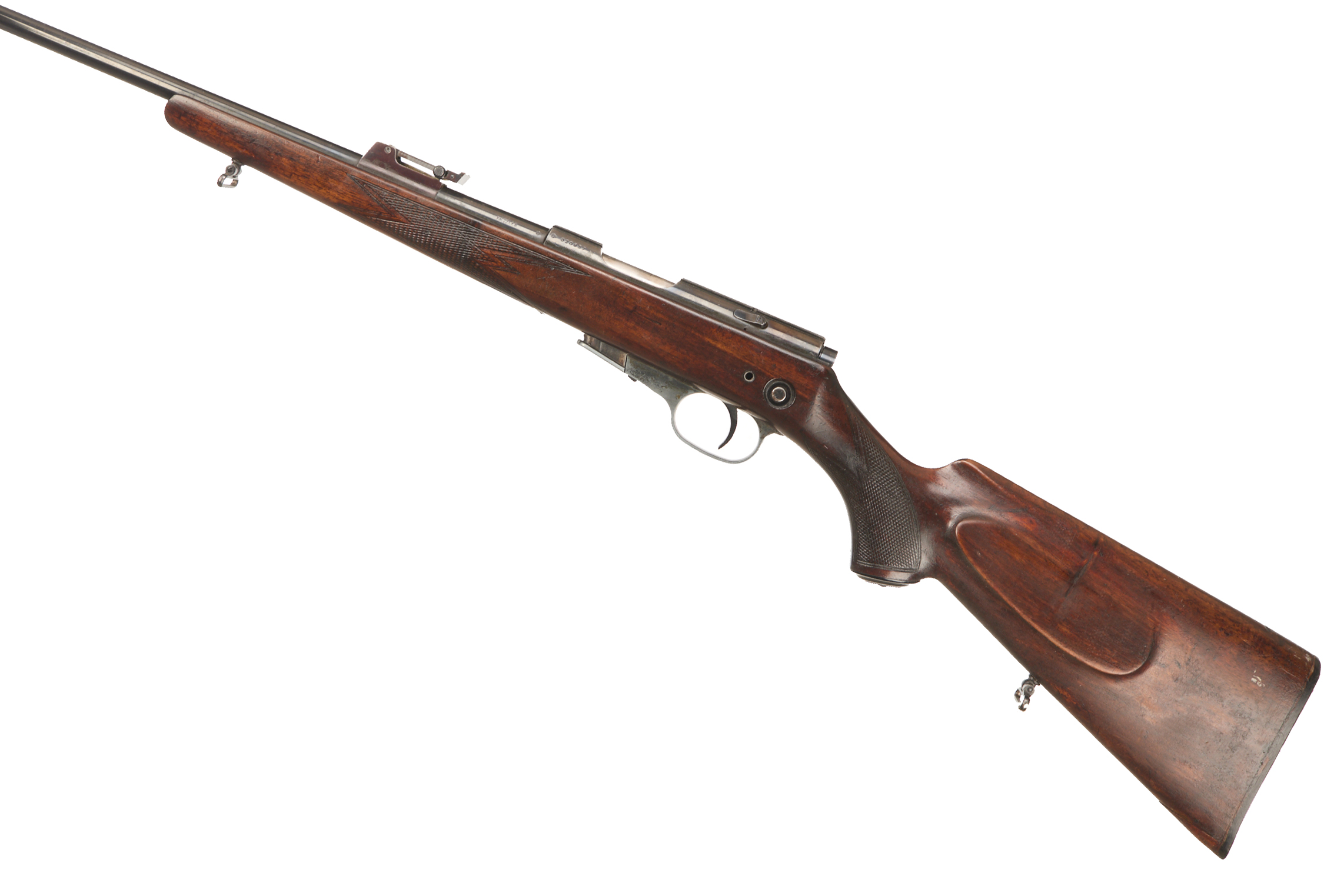 Plastic butt pad, walnut stock with integral cheek piece and chequered grip and forend. Front and rear sling loops. Hooded bead front sight, adjustable notch rear sight. Action machined for dovetail scope rings. Screw cut barrel with thread protector. CW detachable box magazine.