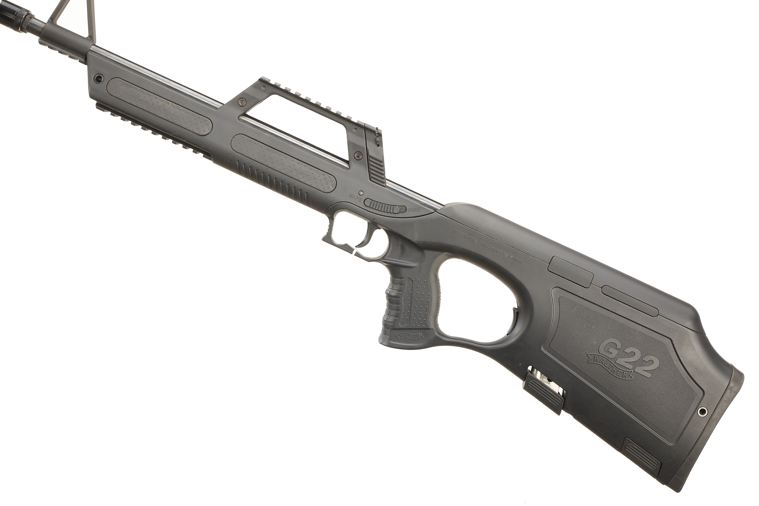 Bullpup design stock, thumbhole full pistol grip. Threaded muzzle, post foresight, rearsight and rail in integral carrying handle. In the manufacturer’s case with accessories.