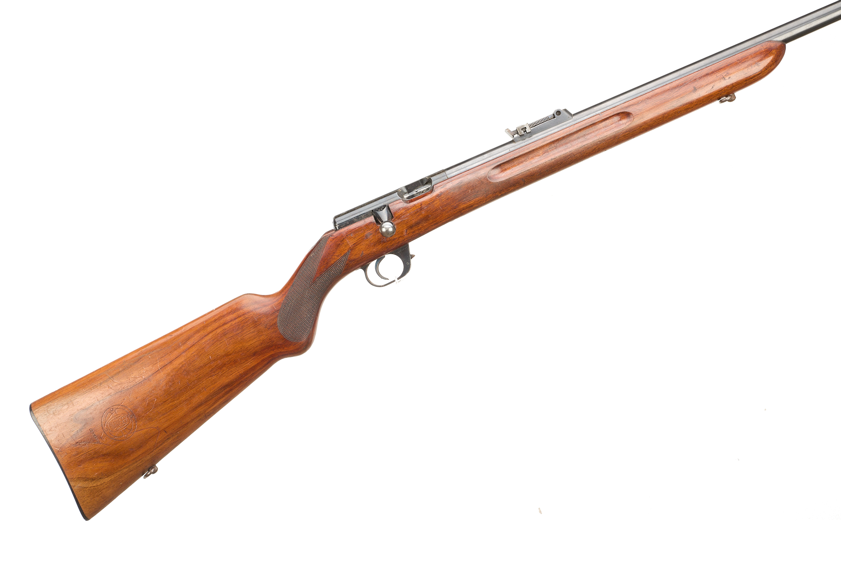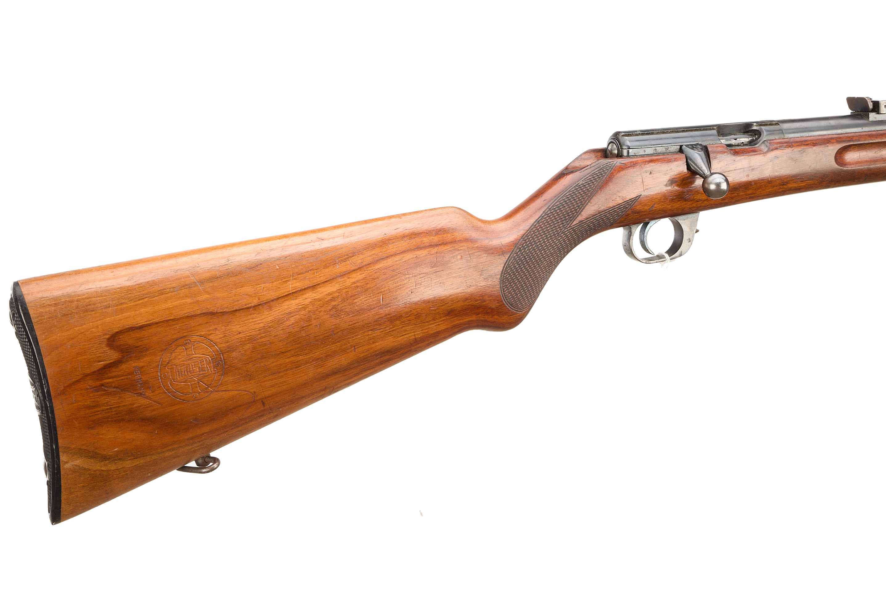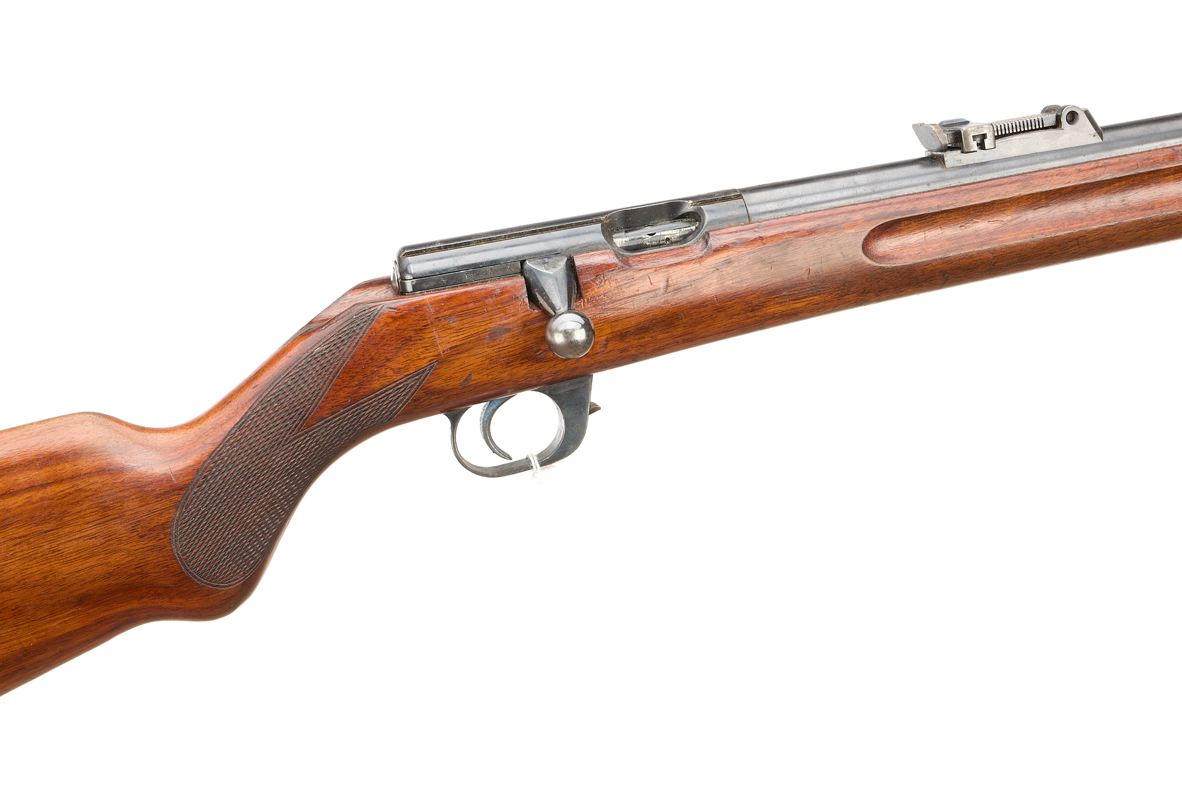 ‘MAUSER’ embossed butt plate, same to side of stock. Chequered semi-pistol grip stock, sling attachments. Screwcut, ramp-mounted bead foresight, notched, ramped rearsight. Side safety. Magazine absent.