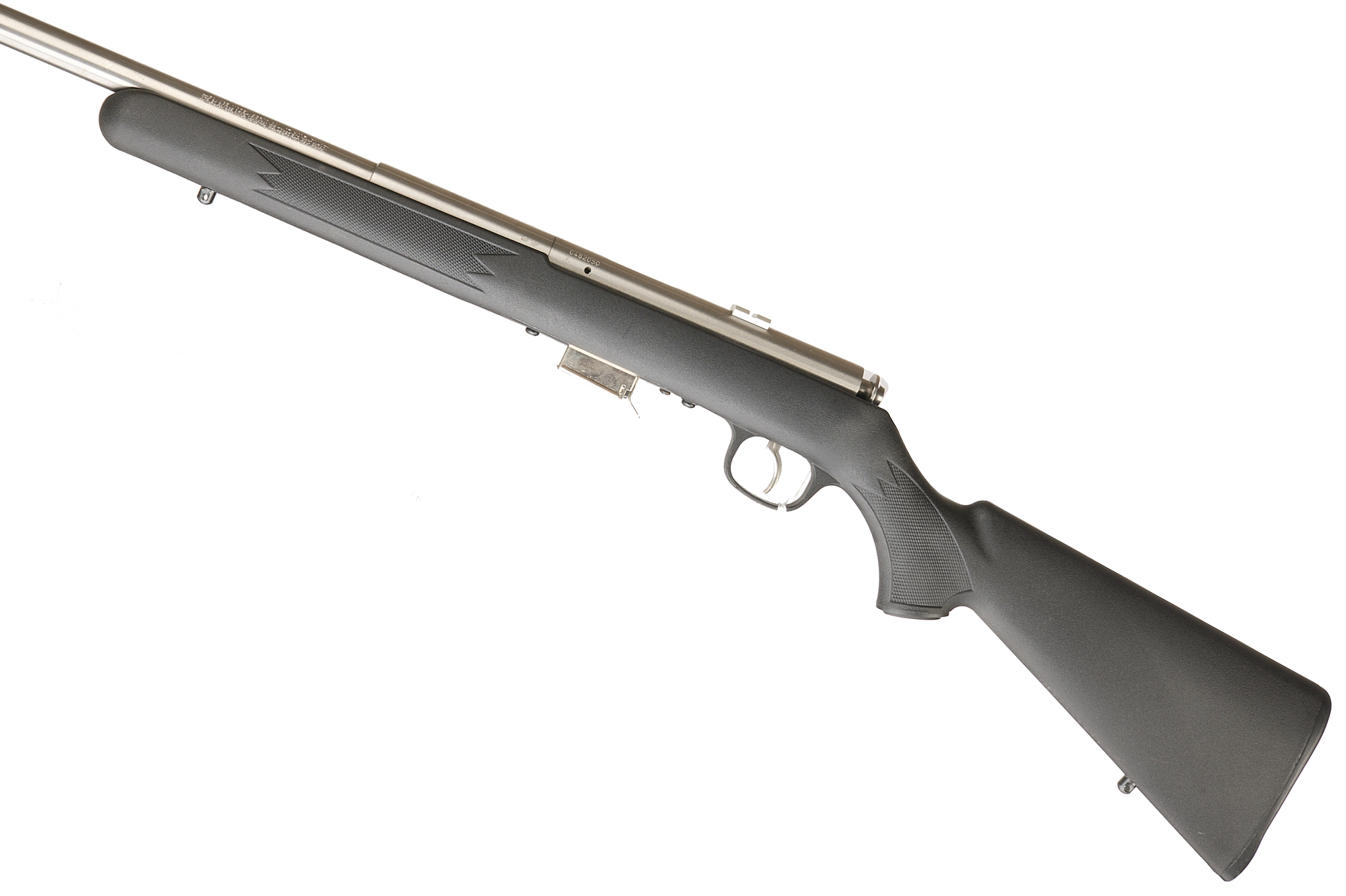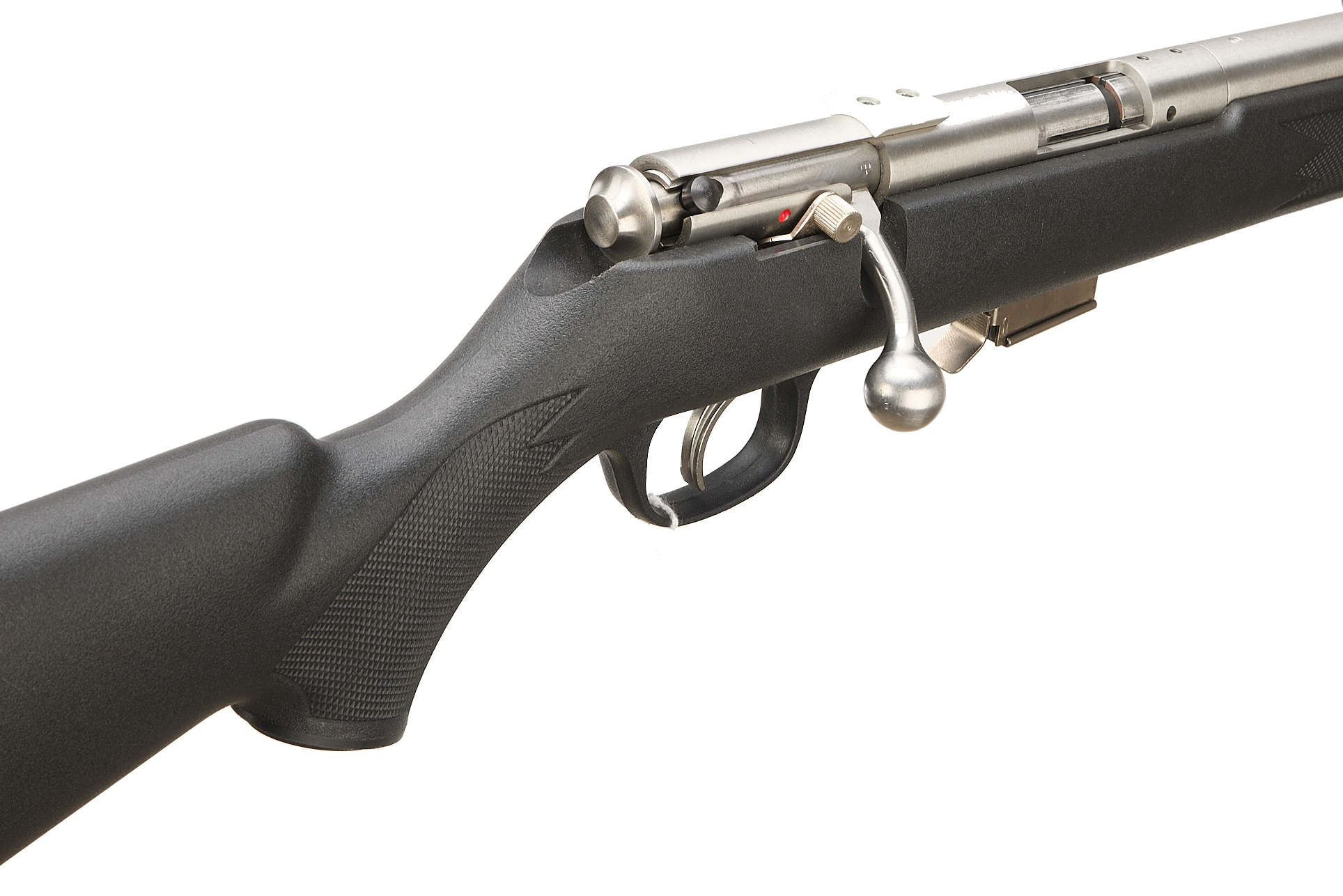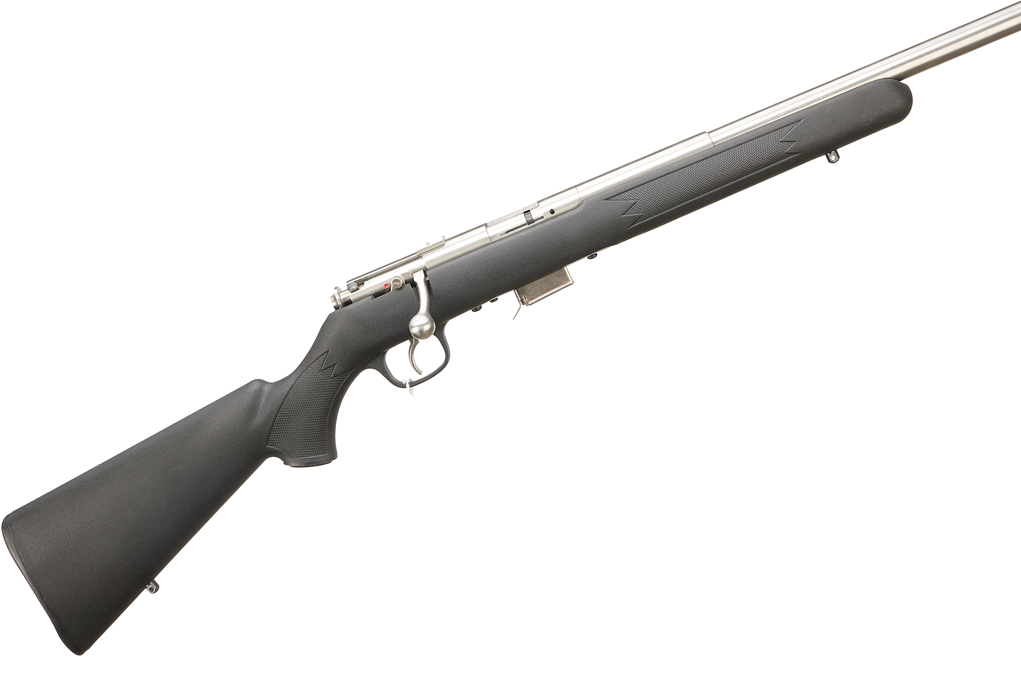 Synthetic stock, front and rear sling studs, screw cut barrel with thread protector. CW detachable box magazine. Stainless action and barrel. Tapped for scope rails CW rear picatinny rail.