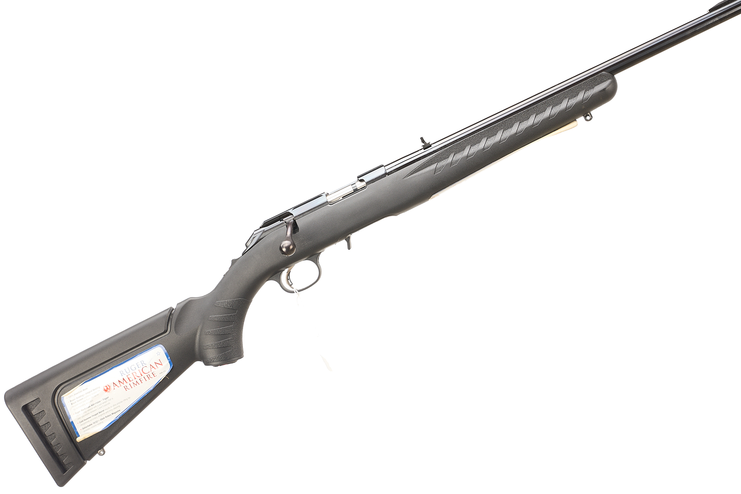 Synthetic stock, dovetail scope mounts, fibre optic front sight, folding rear sight. Front and rear sling studs. Screw cut barrel with thread protector. CW 10 round box magazine.