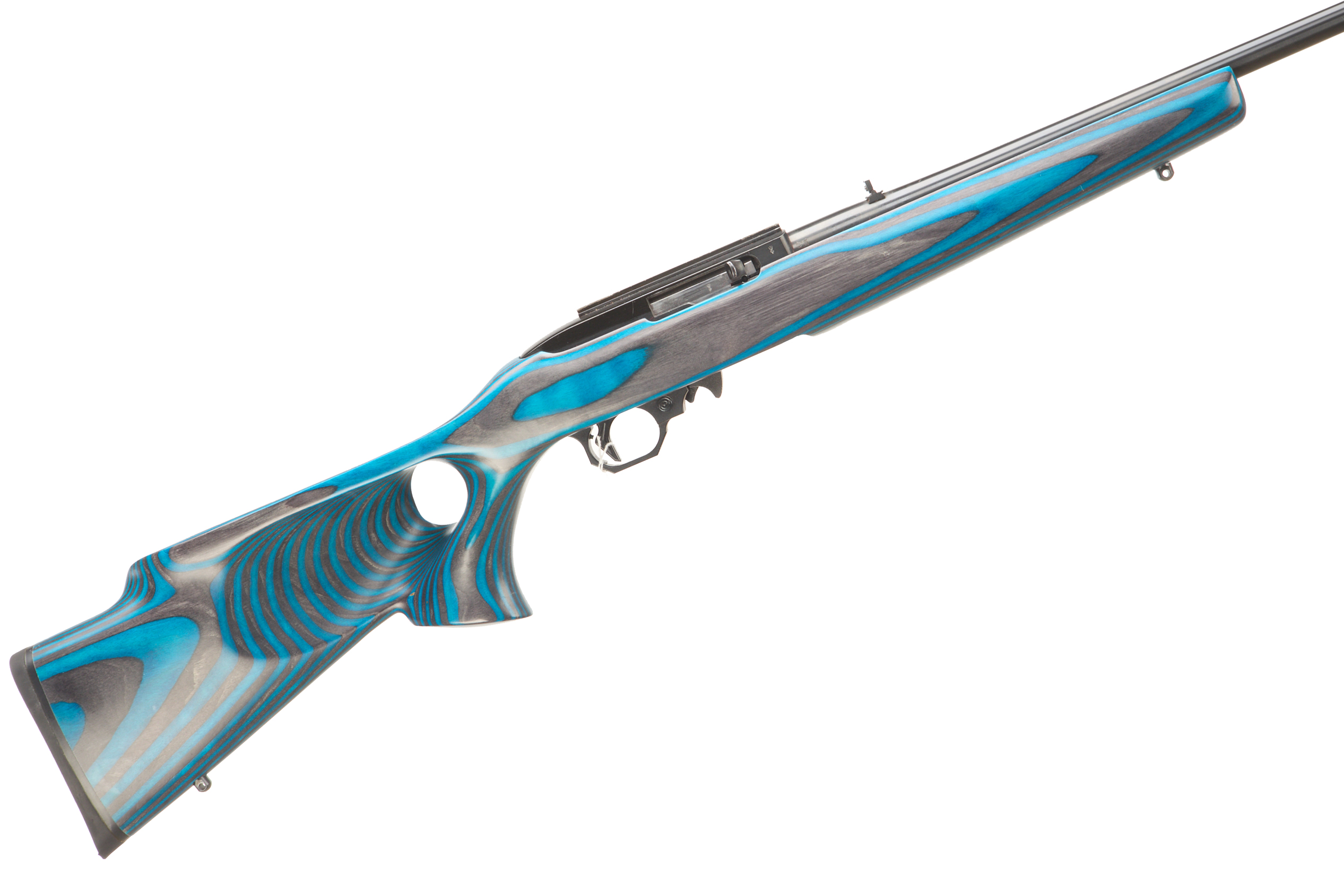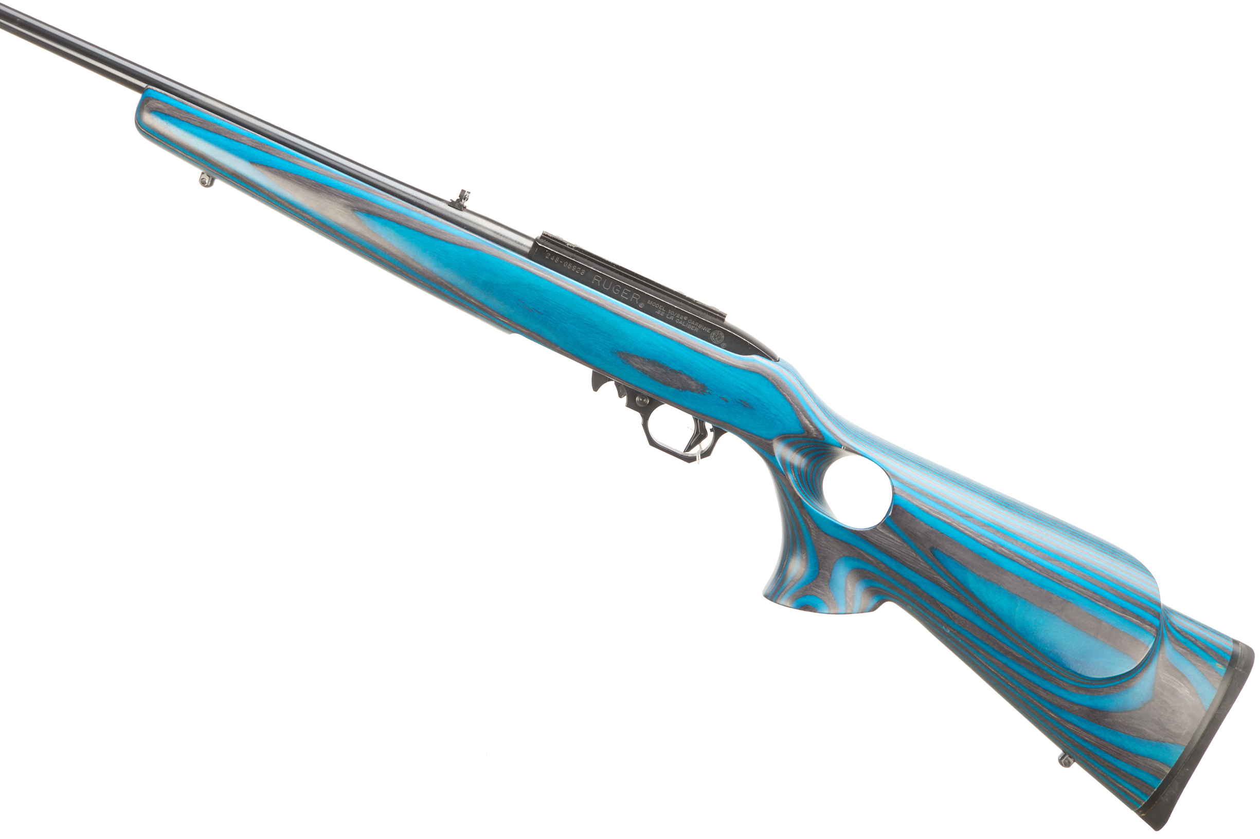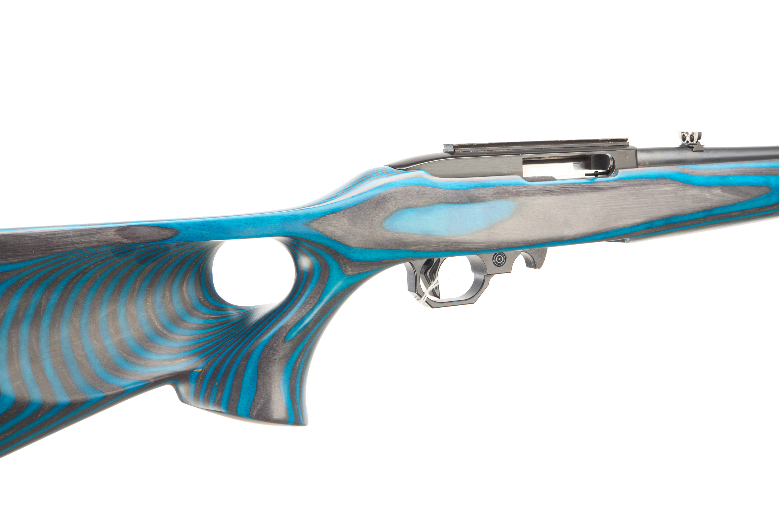 Smooth thumbhole stock with integral cheek piece, front and rear sling studs, post front sight, folding notch rear sight. Fitted with dovetail scope rail. Screw cut barrel CW thread protector. CW Volquartsen TG2000 trigger and detachable 10 round rotary magazine.