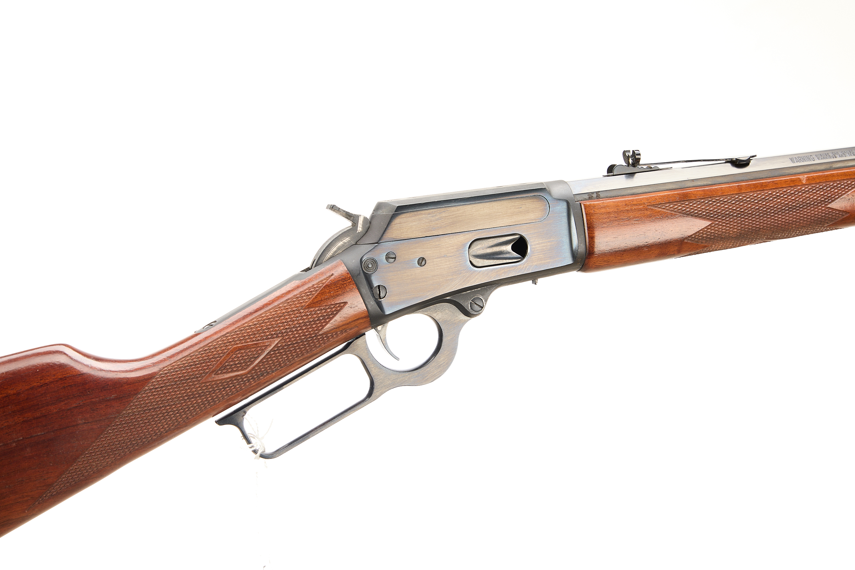 1997 model with octagonal barrel. Soft rubber butt pad, chequered walnut stock and forend. Blued receiver, bead front sight, semi-buckhorn rear sight. Tapped for top scope rail.