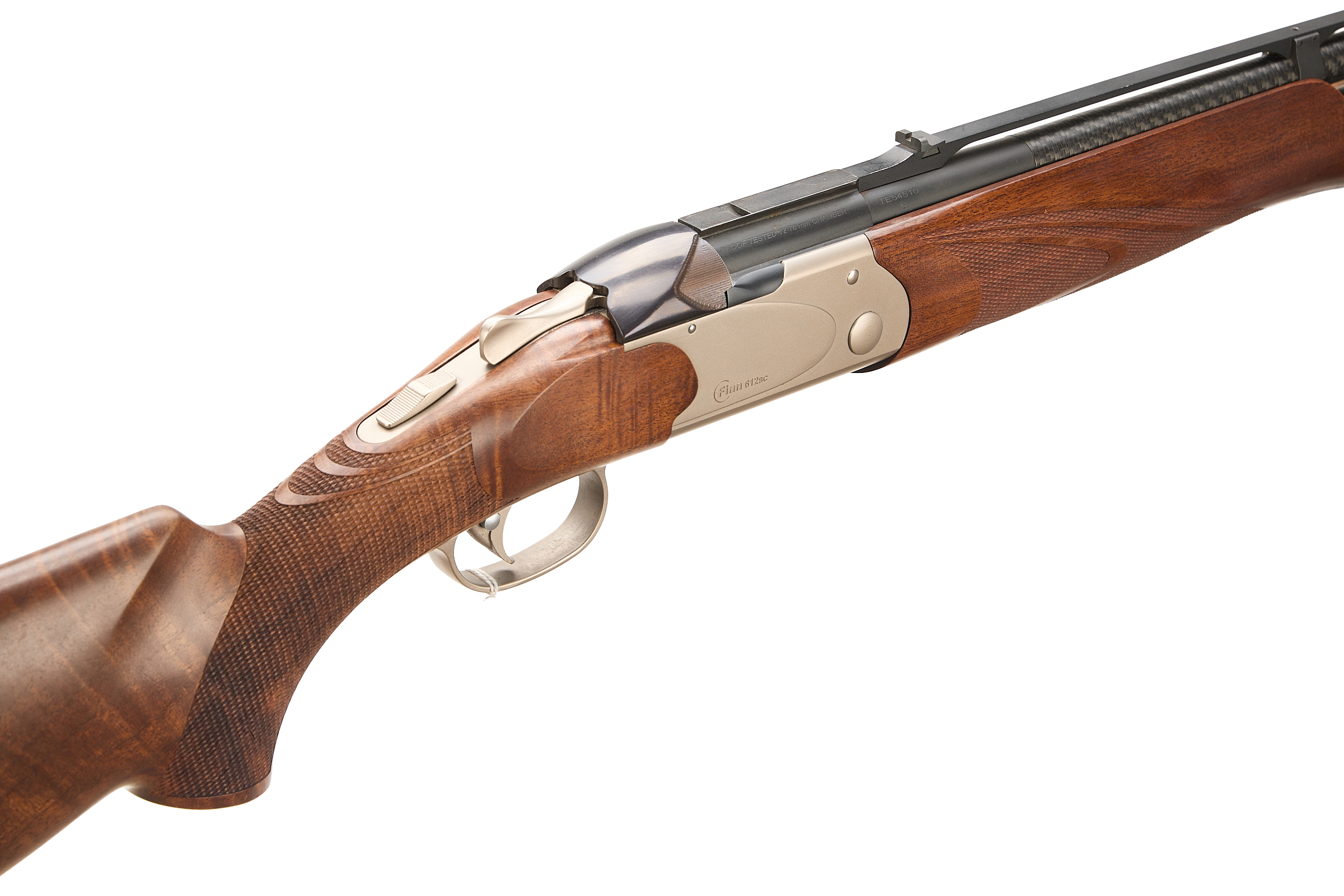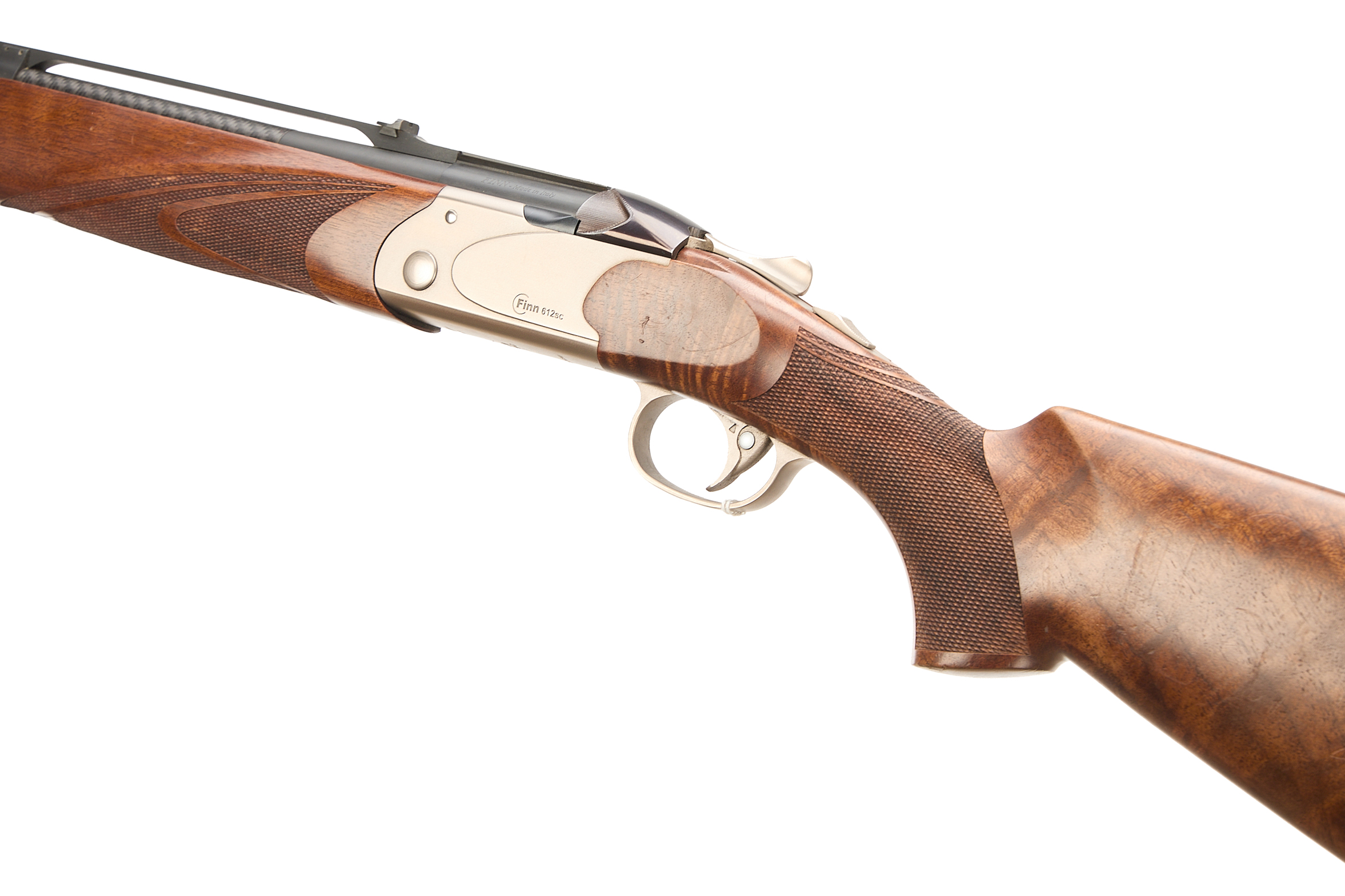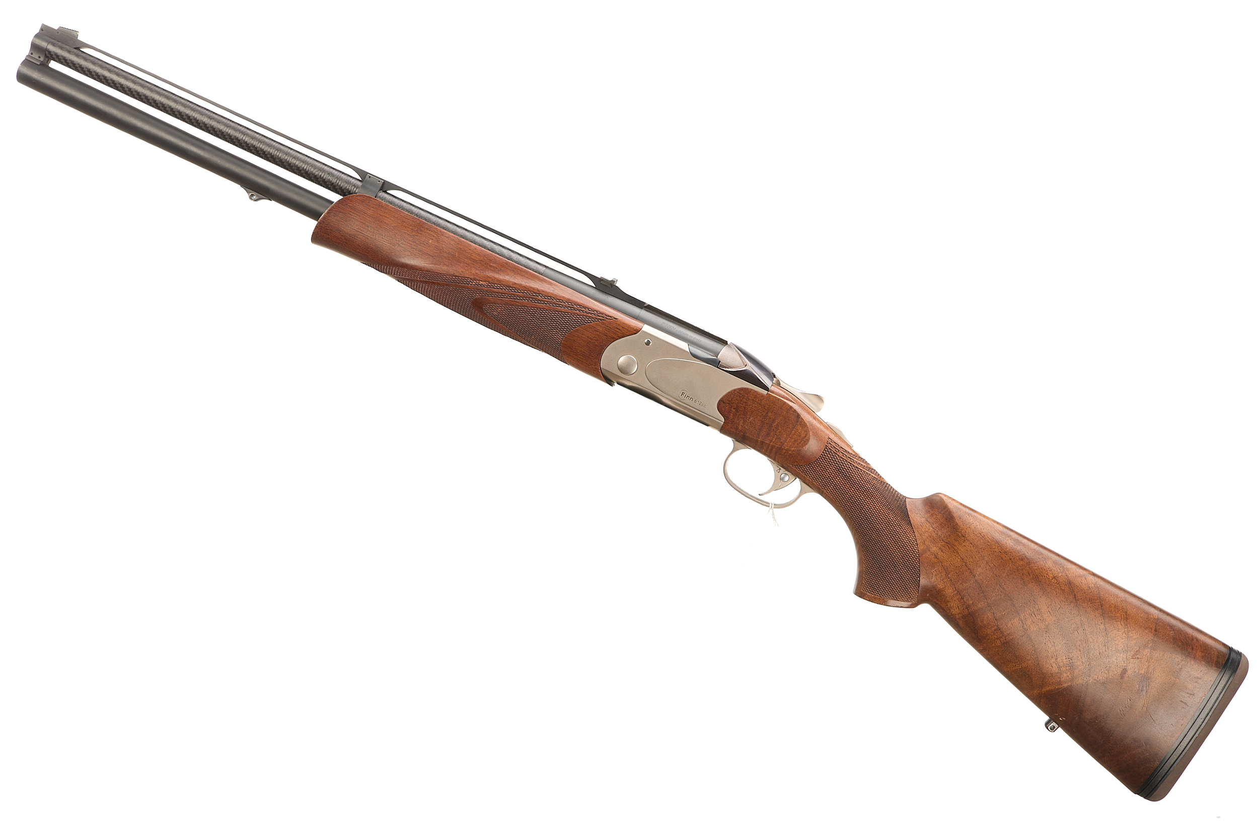 Cushioned butt pad, chequered pistol grip and forend, bead foresight, notched rearsight mounted on aluminium open rib. Carbon fibre upper .223 rifle barrel, the lower barrel matt. Blued, sliding top lock bolt, ribbed to sides. The action matt finish, unadorned, engraved ‘FINN 612sc’, the underside same with ‘MAROCCHI’. Detachable Picatinny scope rail. In the manufacturer’s case.