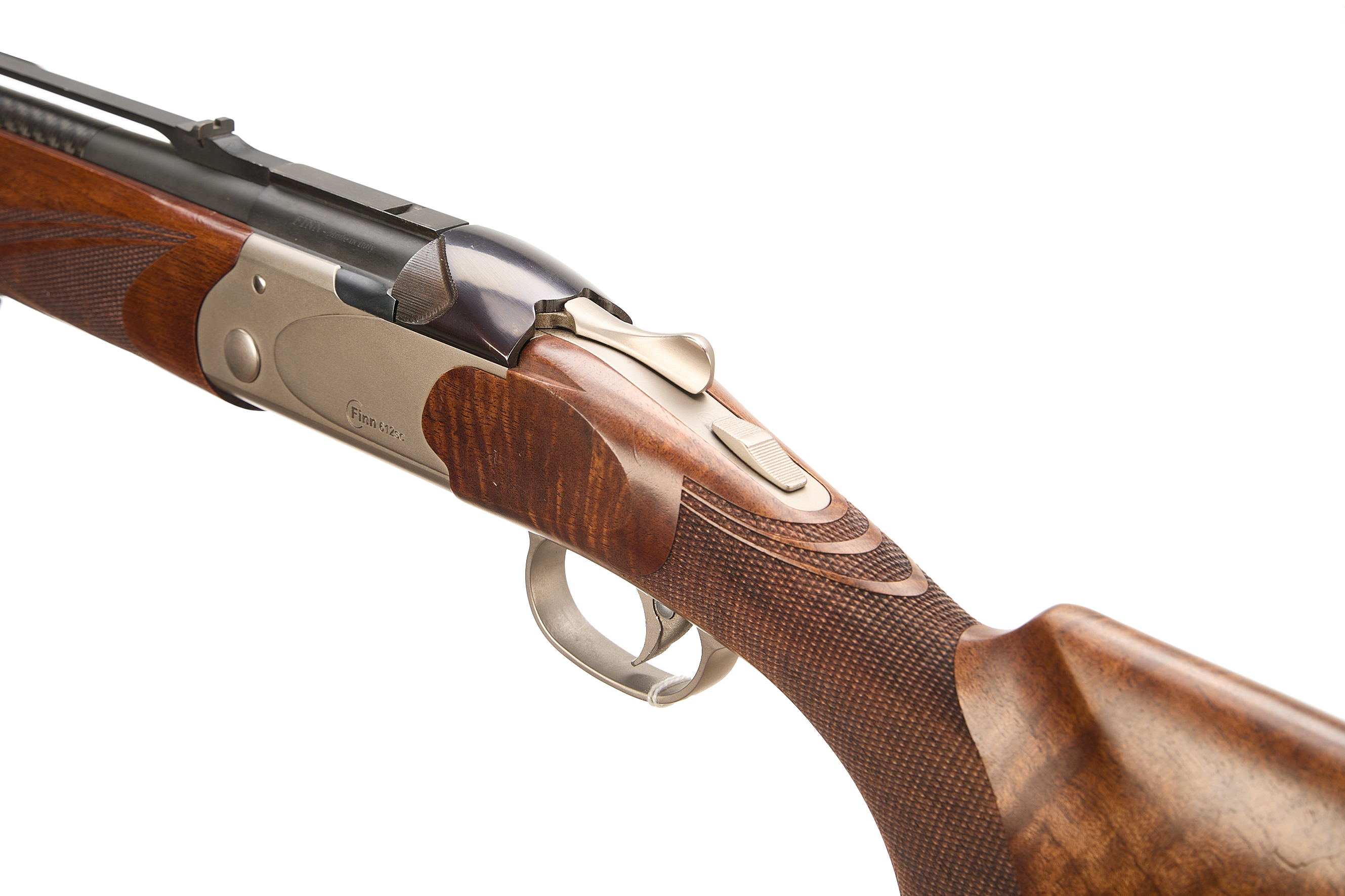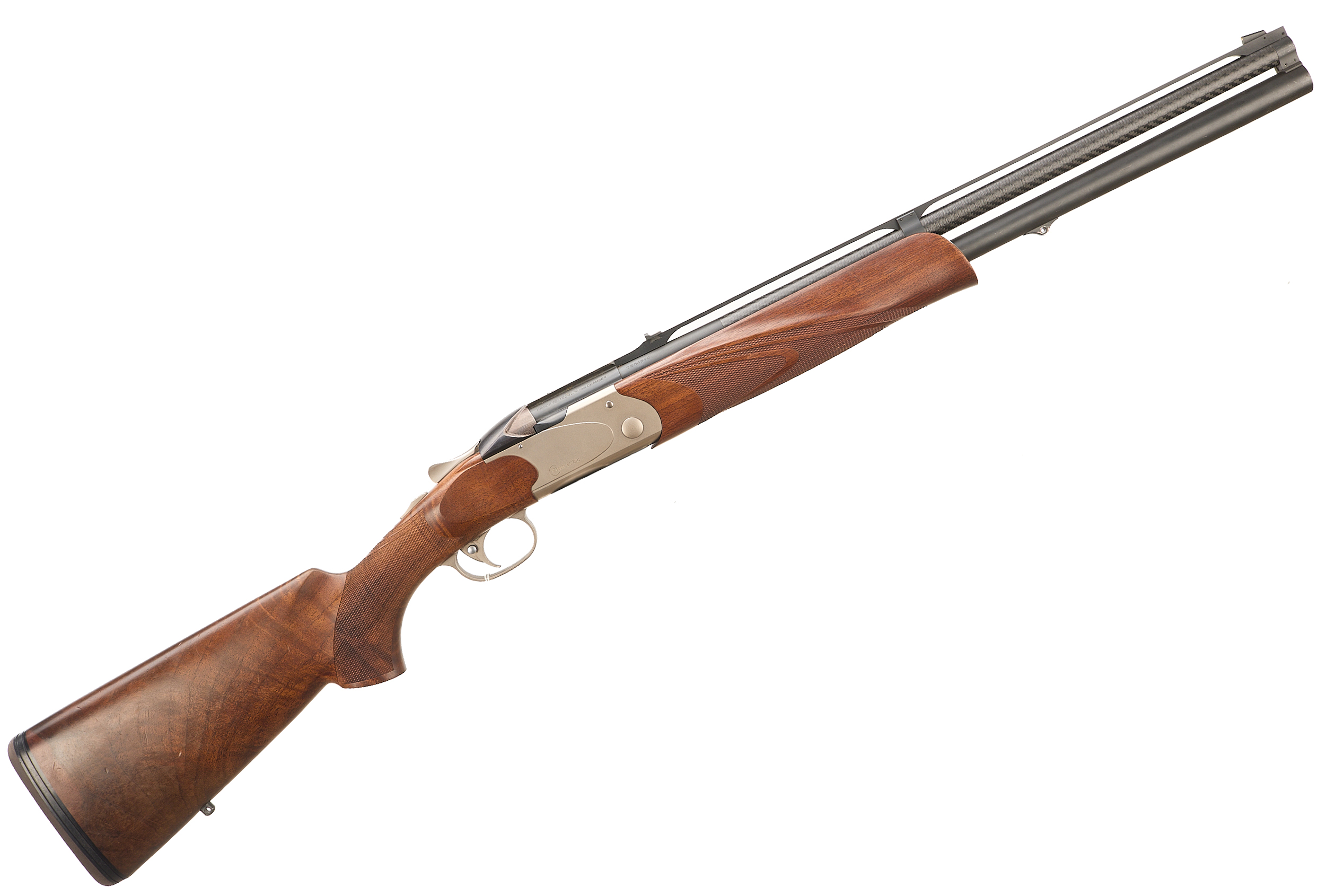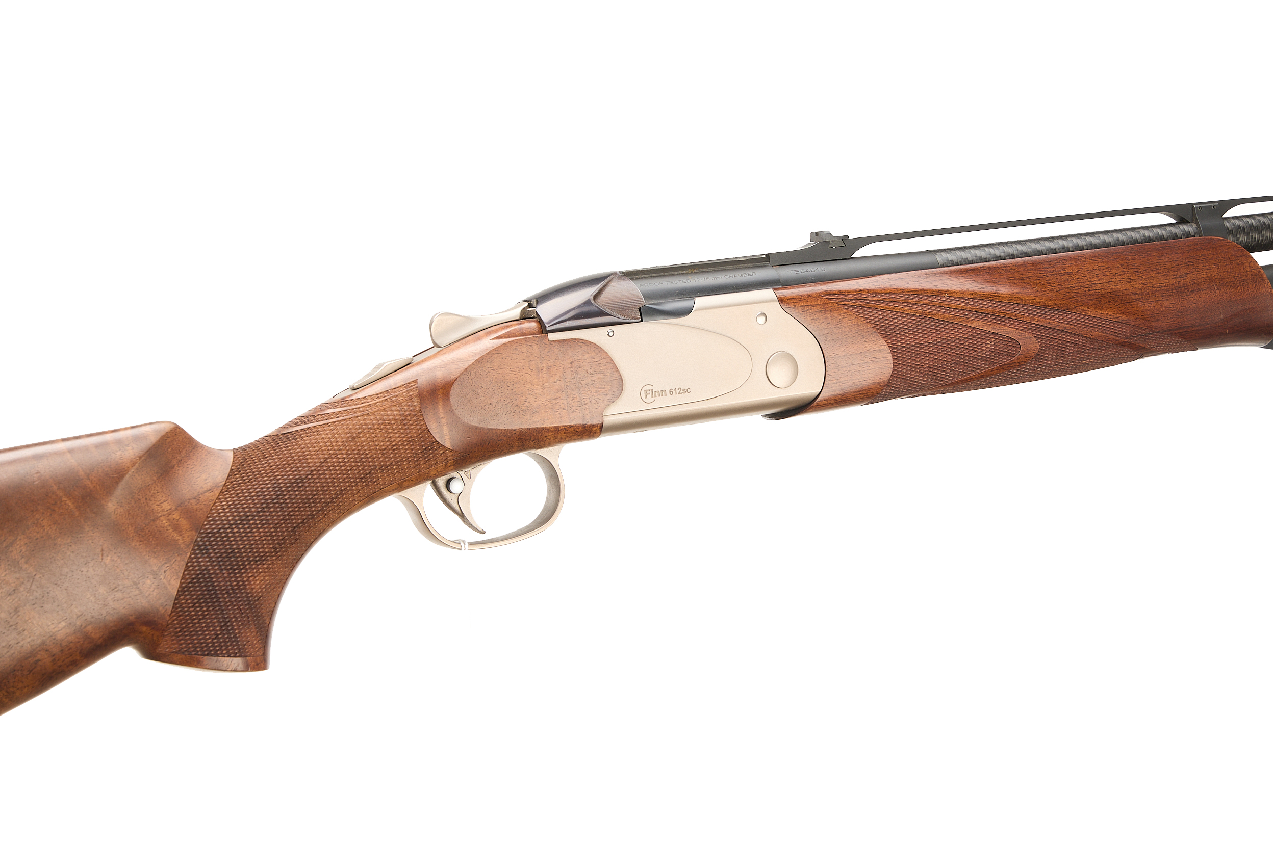 Cushioned butt pad, chequered pistol grip and forend, bead foresight, notched rearsight mounted on aluminium open rib. Carbon fibre upper .223 rifle barrel, the lower barrel matt. Blued, sliding top lock bolt, ribbed to sides. The action matt finish, unadorned, engraved ‘FINN 612sc’, the underside same with ‘MAROCCHI’. Detachable Picatinny scope rail. In the manufacturer’s case.