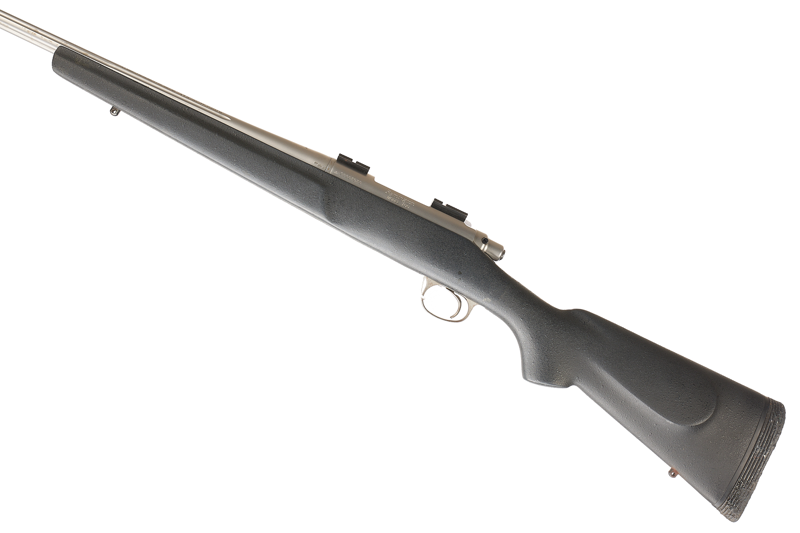 Cushioned butt plate and semi-pistol grip, rounded forend, with ebonite end cap. Screwcut with cap, double scope mount, sling attachments. Integrated magazine, safety.