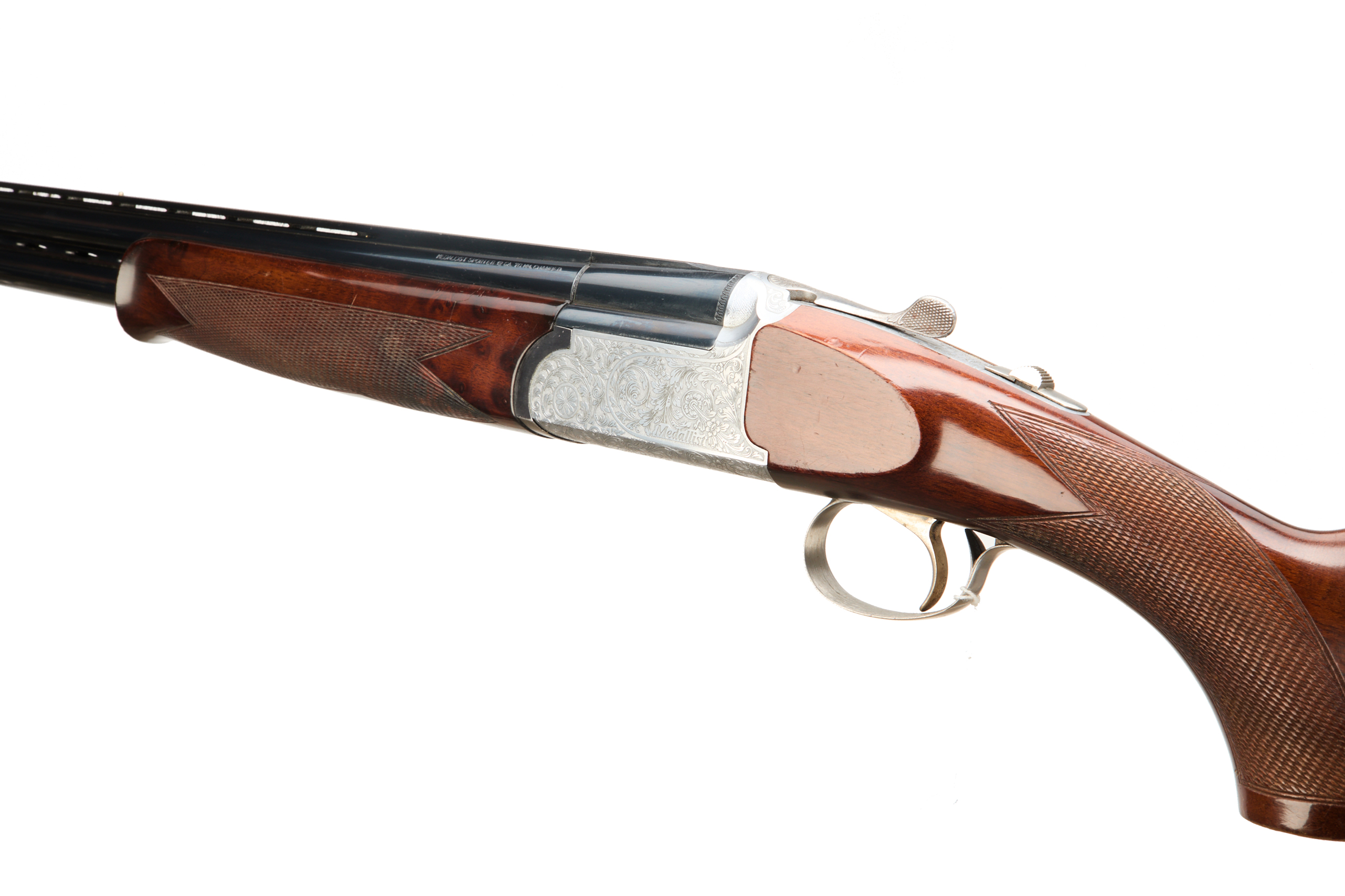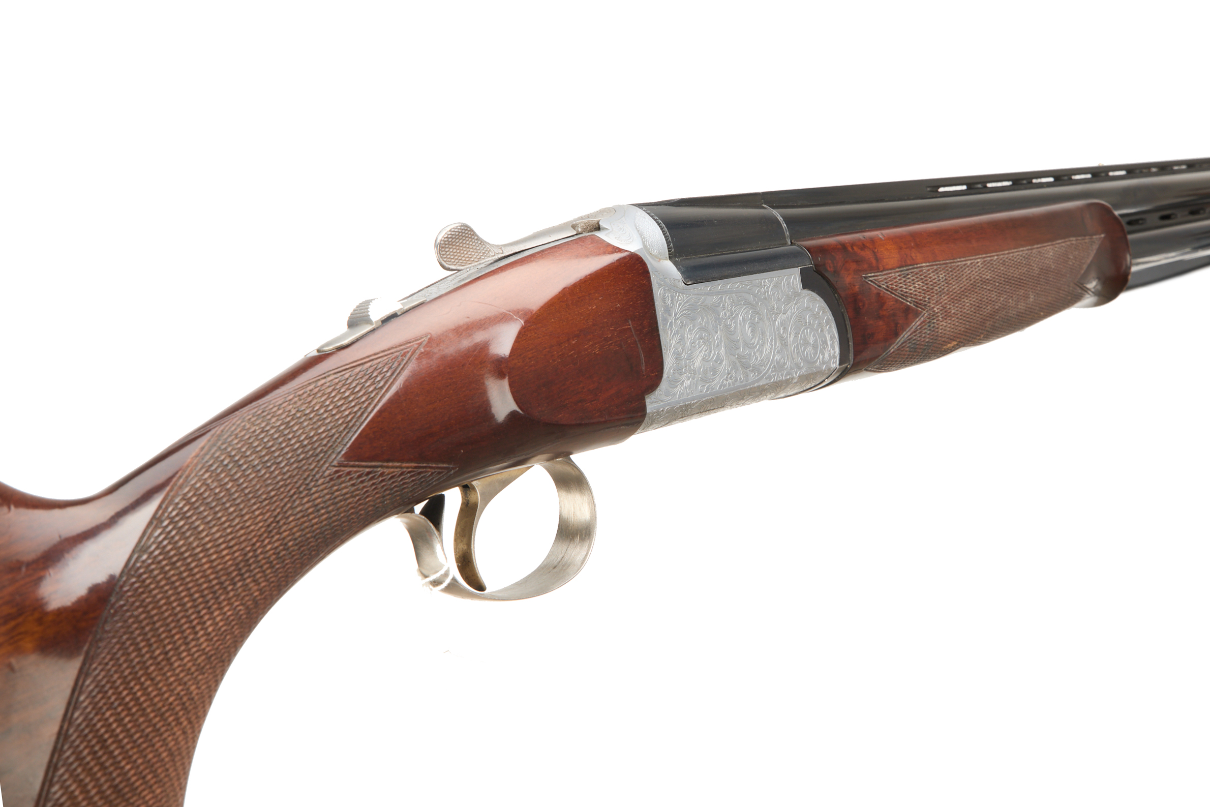 Cushioned butt pad, chequered full-pistol grip and forend, ventilated top and mid rib. Acanthus and floral scrolls to action. Faded gold wash trigger, integrated barrel selector (selective single trigger) and safety.