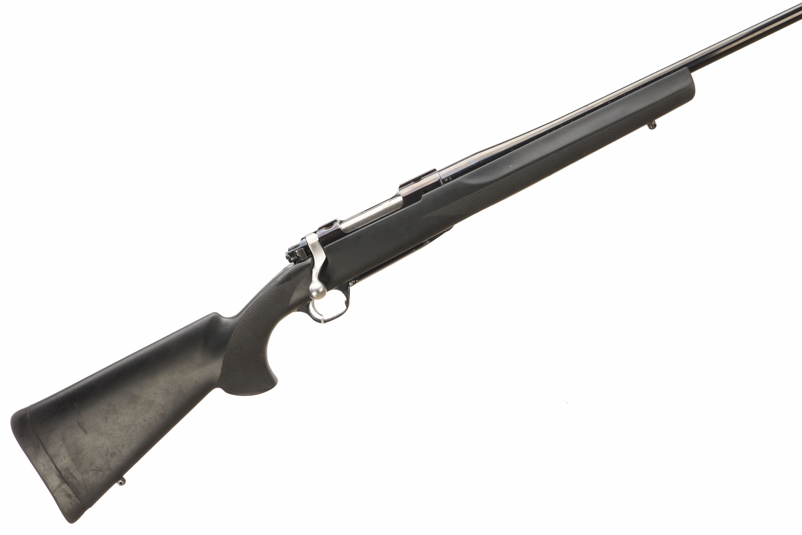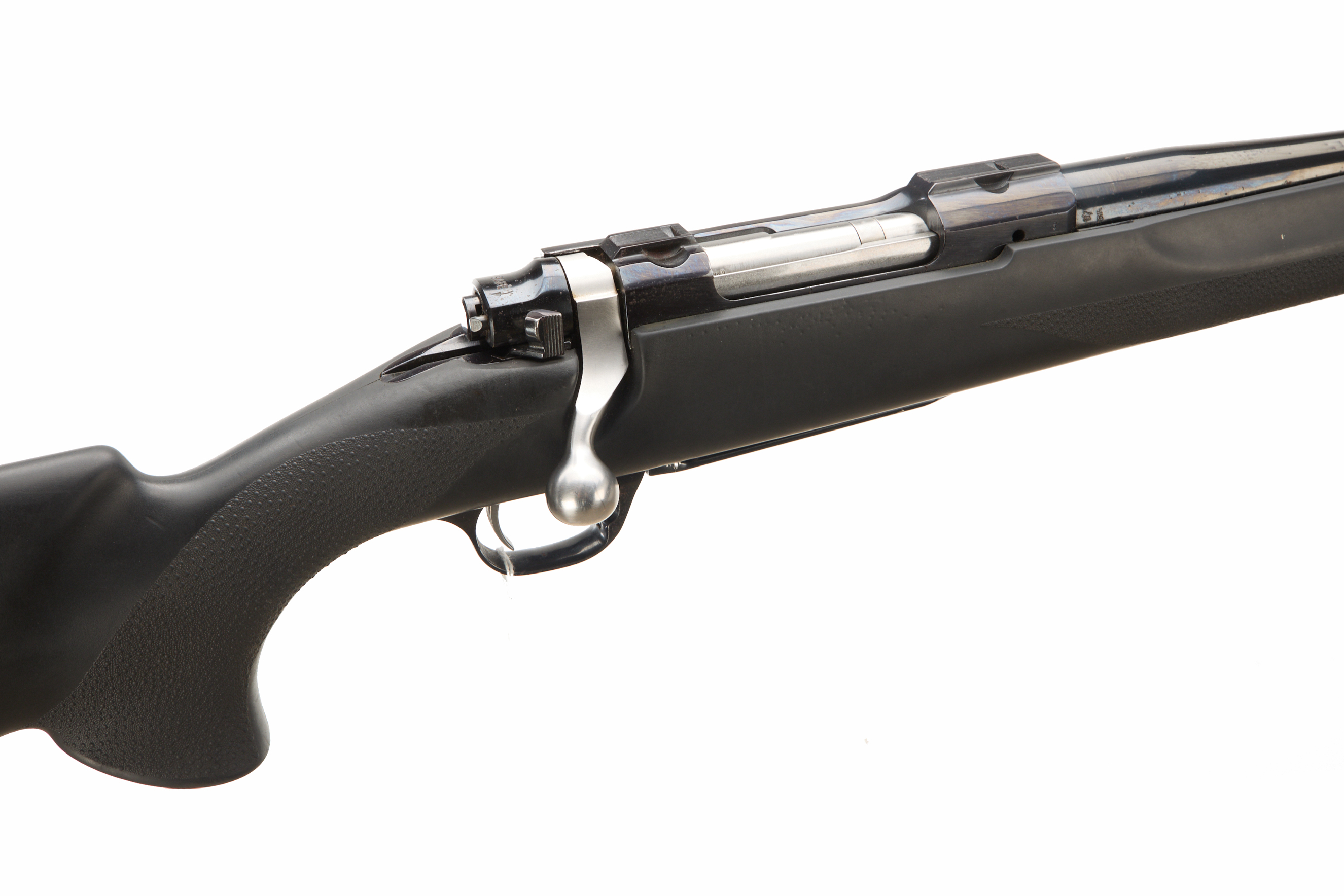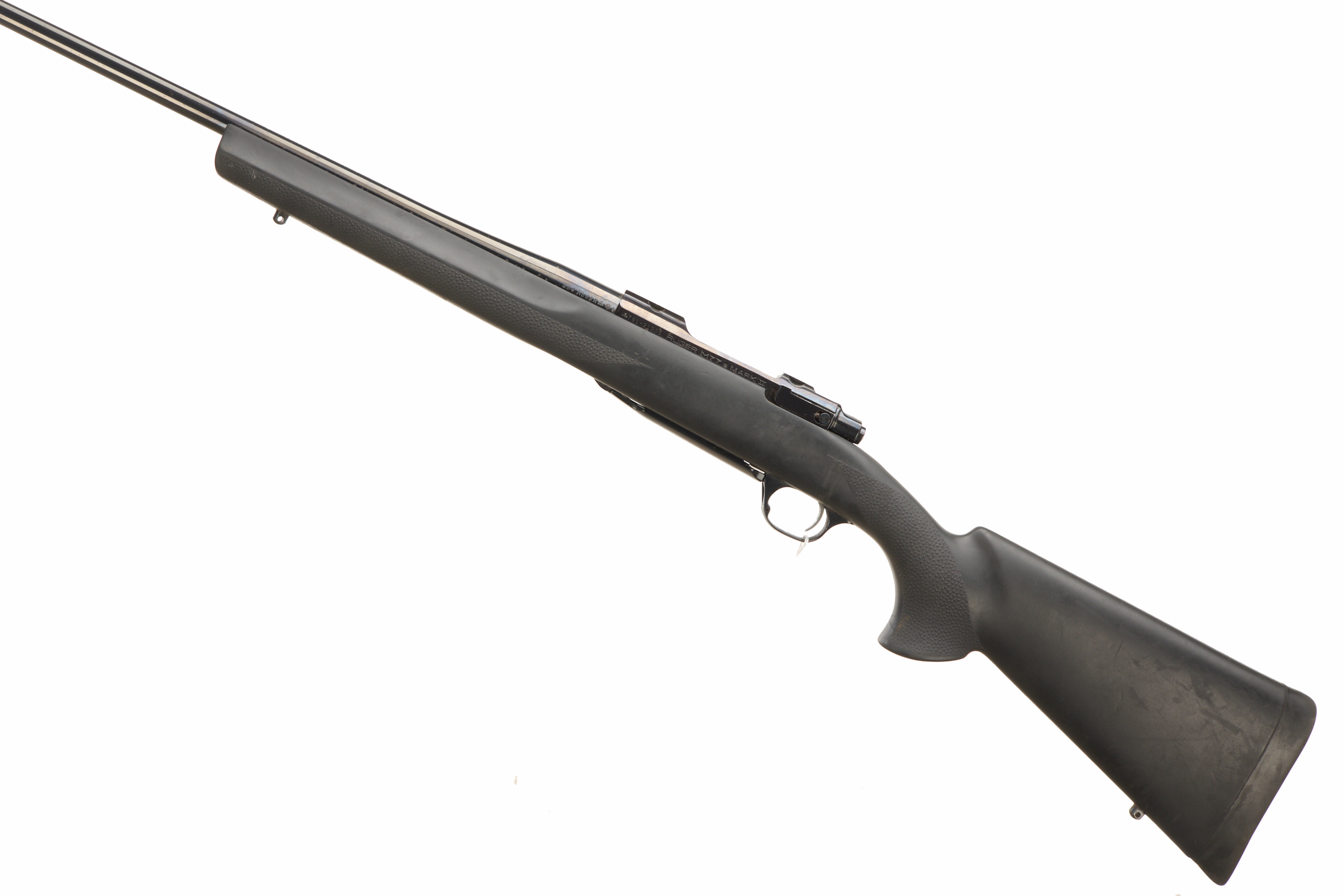 Cushioned butt, textured synthetic semi-pistol grip and rounded forend. Sling attachments. Plain muzzle, unsighted barrel, scope mounts. Internal magazine with hinged floor plate. Pivot thumb safety.