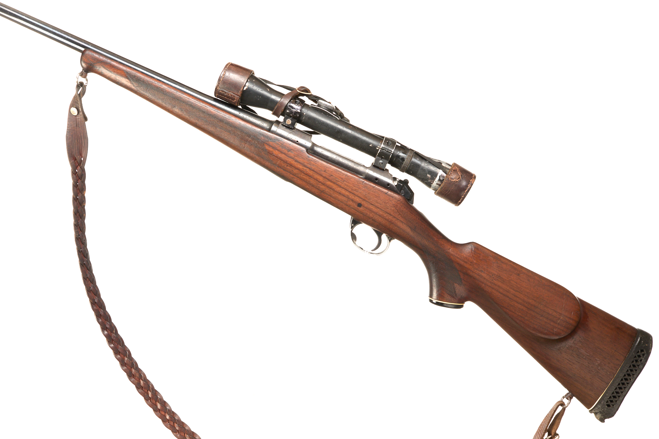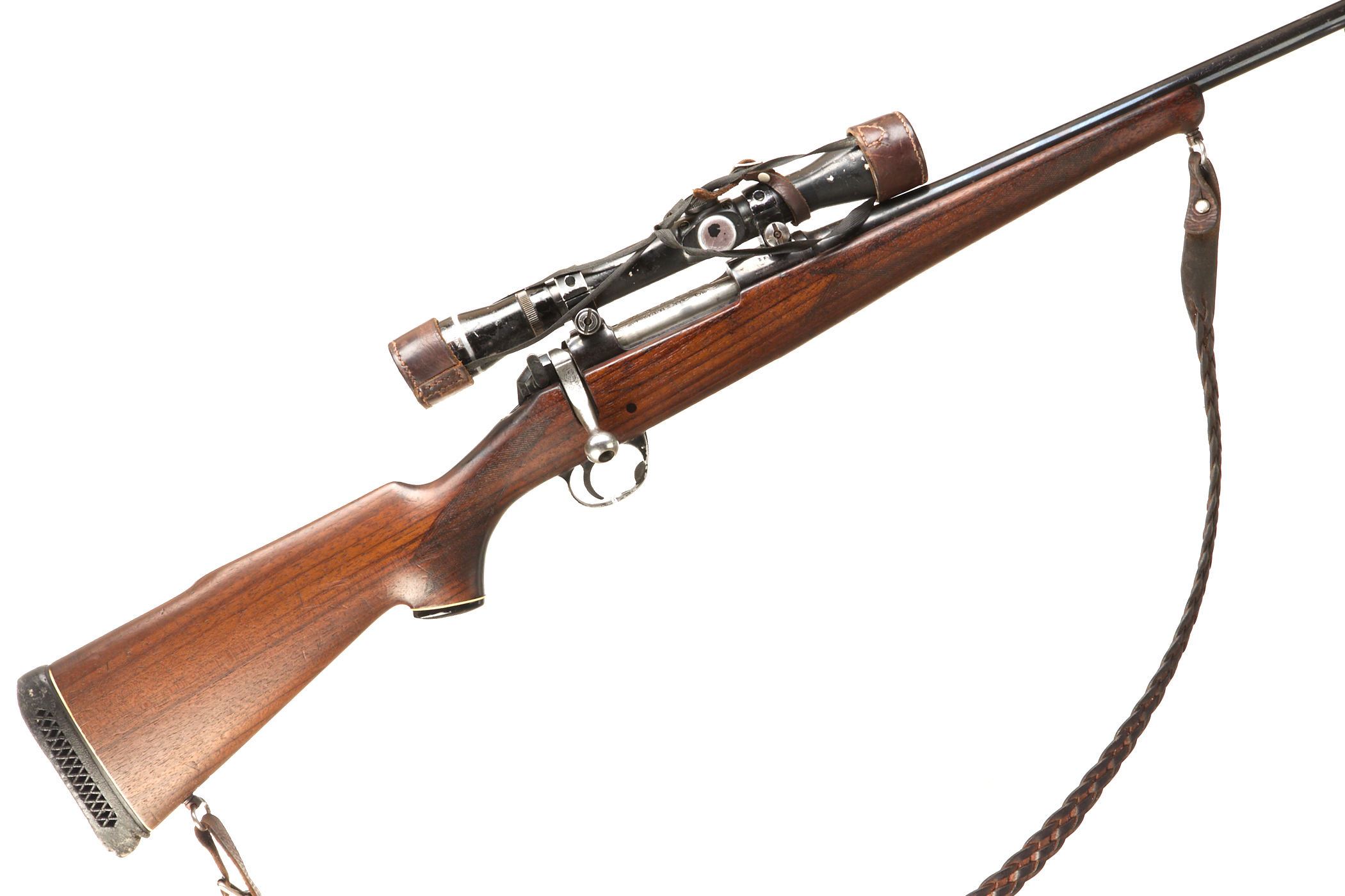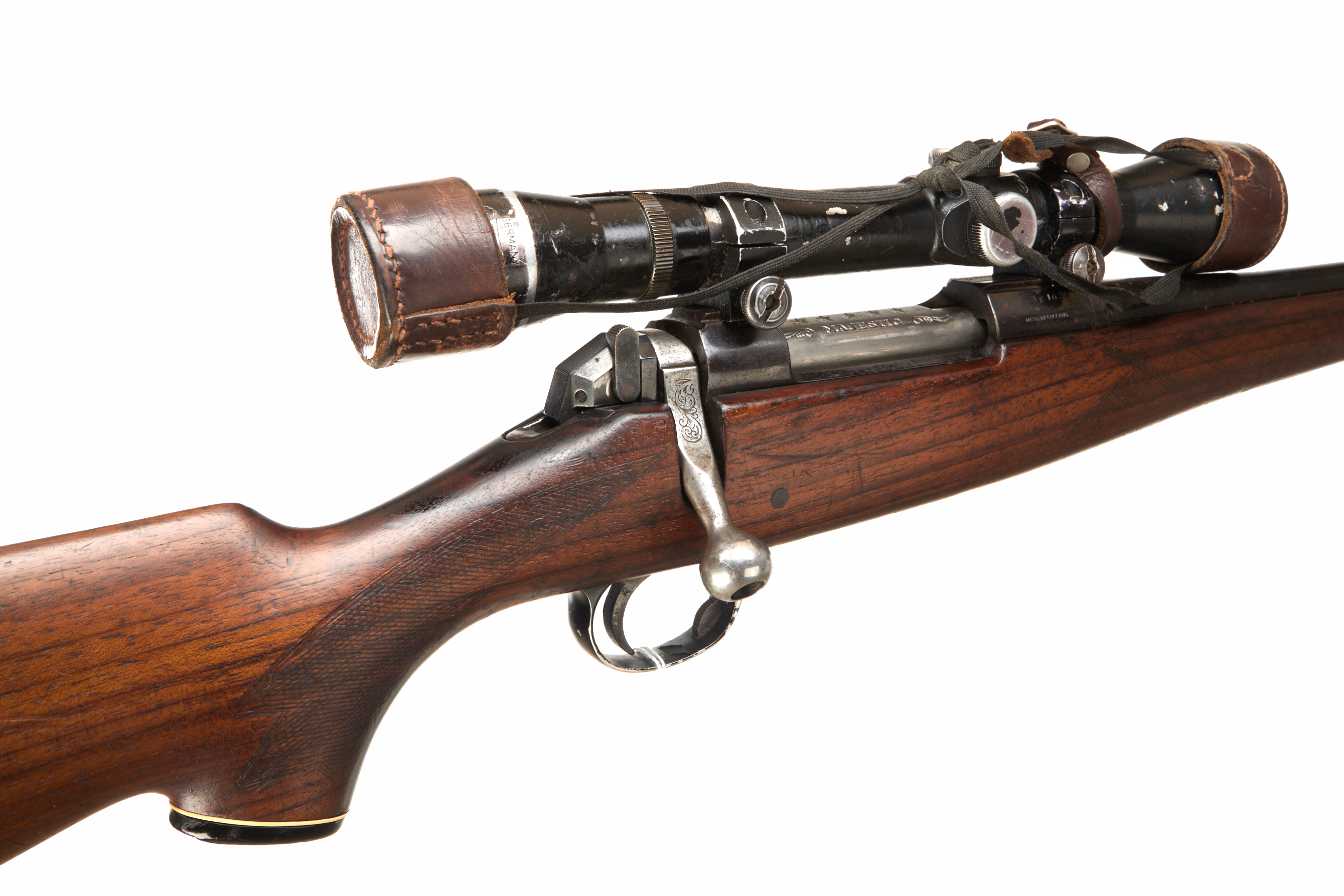 Perishing ventilated butt pad, raised cheek piece, chequered semi pistol grip and schanbel forend with ebonite end cap to pistol grip. Thumb safety, internal magazine with hinged floor plate.