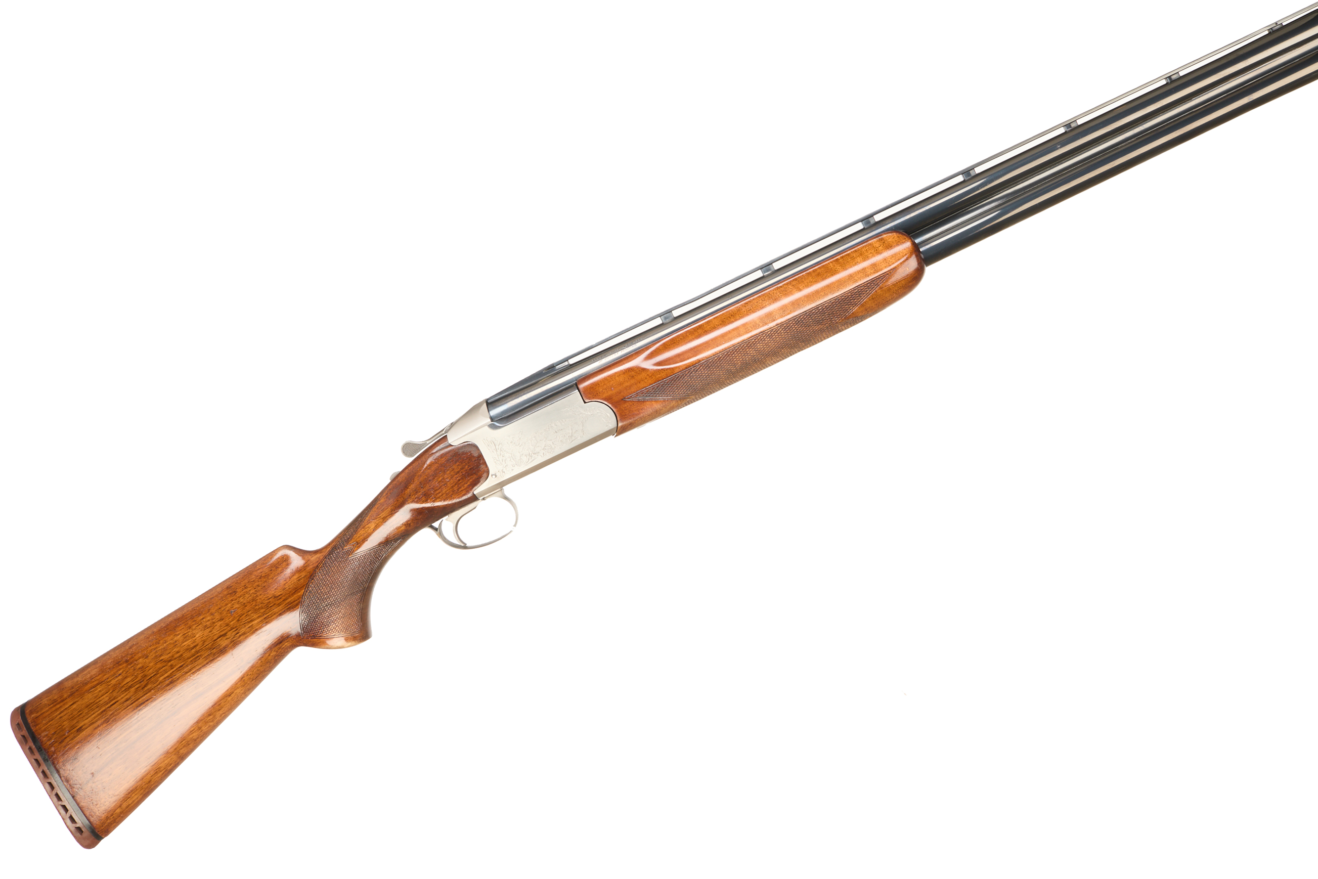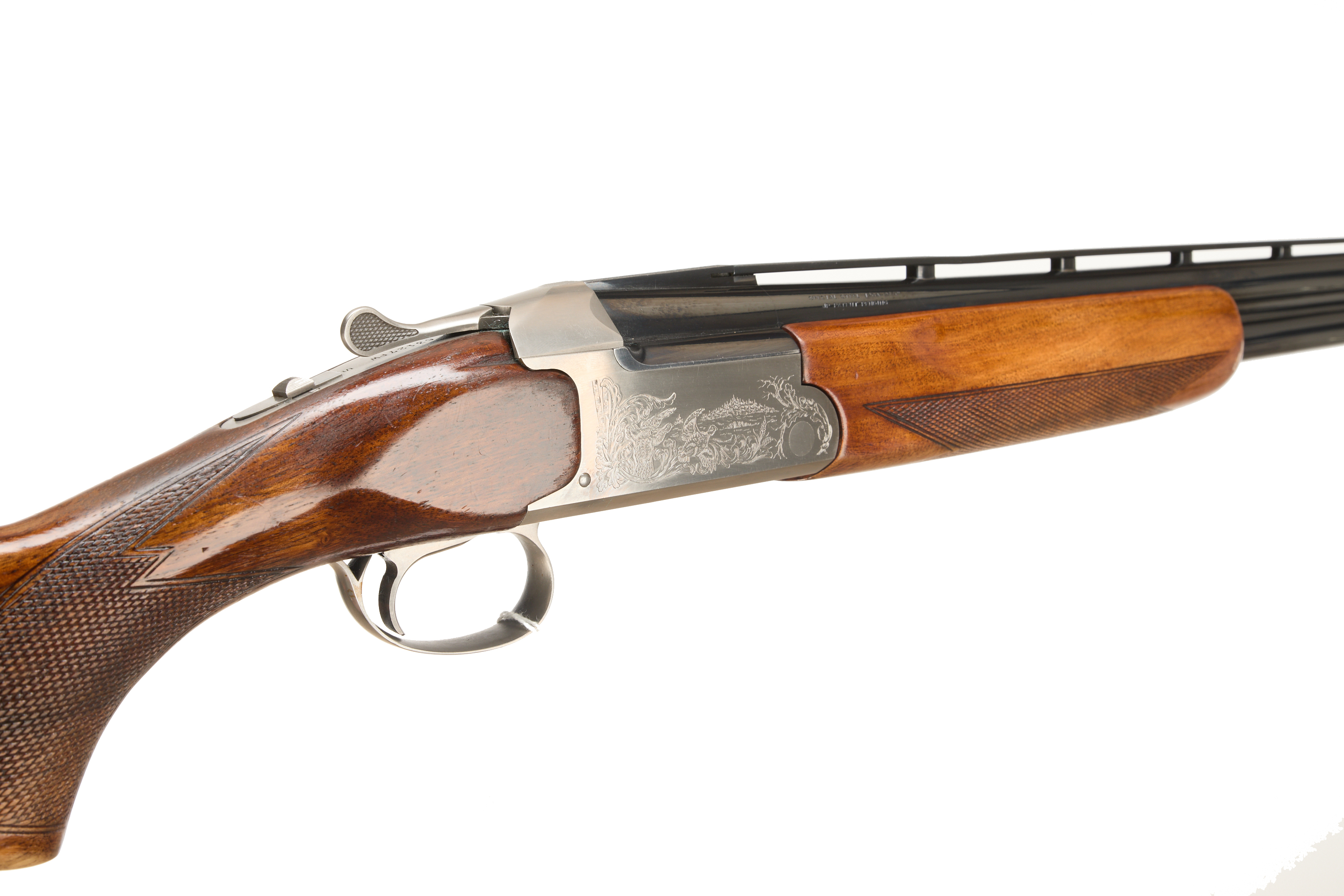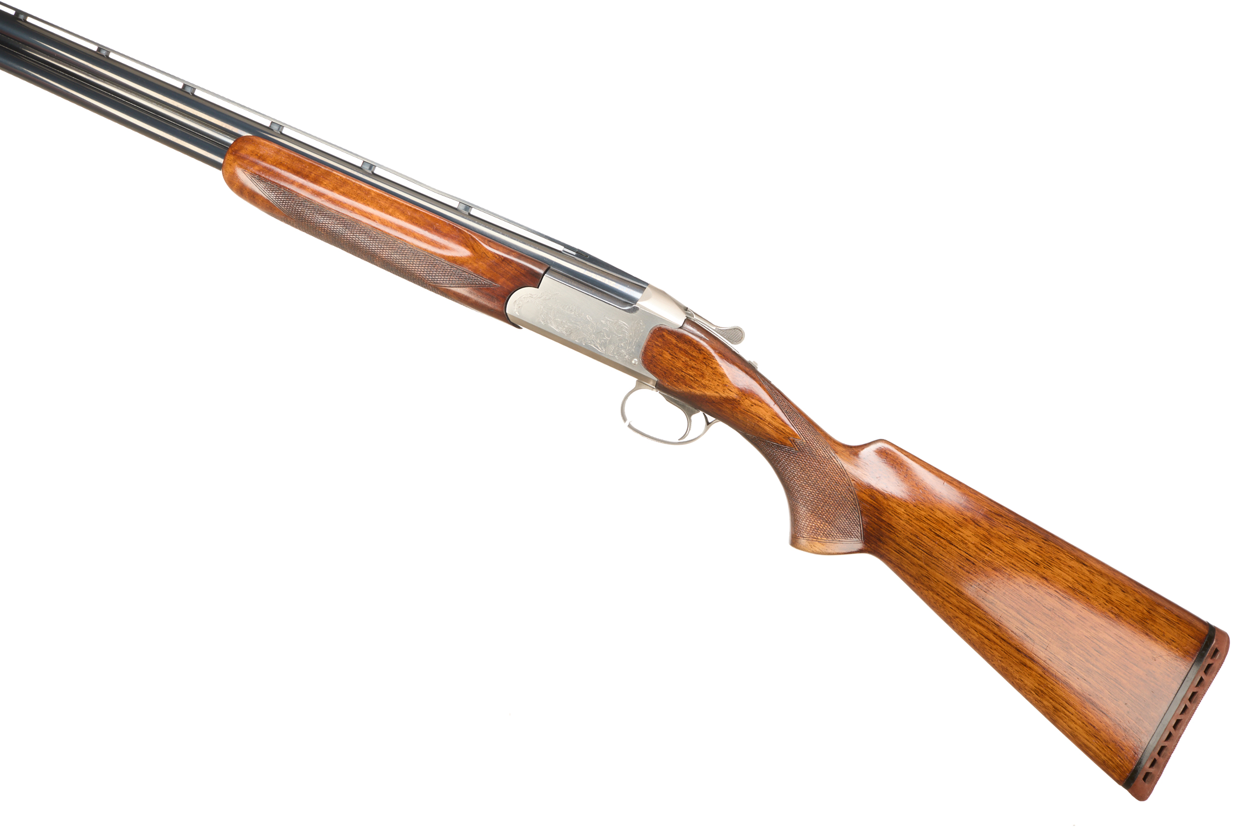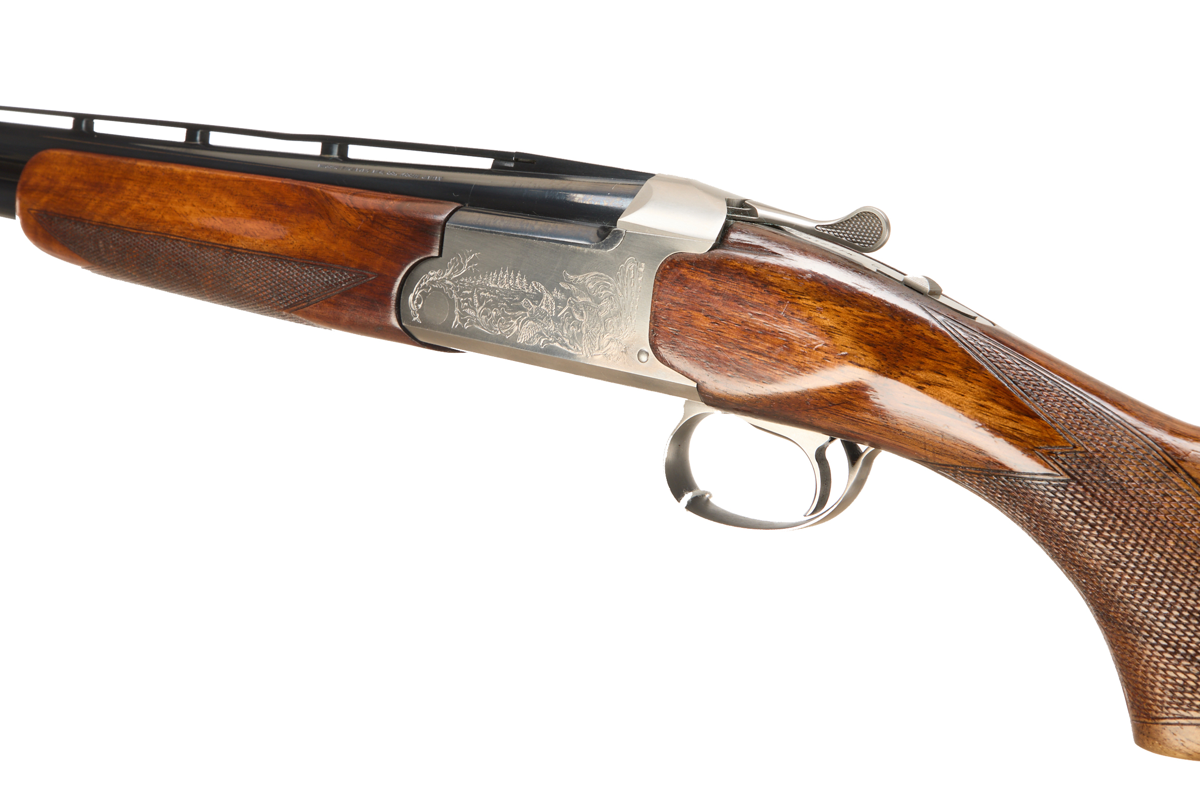 Cushioned butt pad, chequered semi-pistol grip and forend, ventilated top rib. Acanthus scrolls to underside of action, game scenes to the sides. Single trigger, integrated barrel selector and safety.