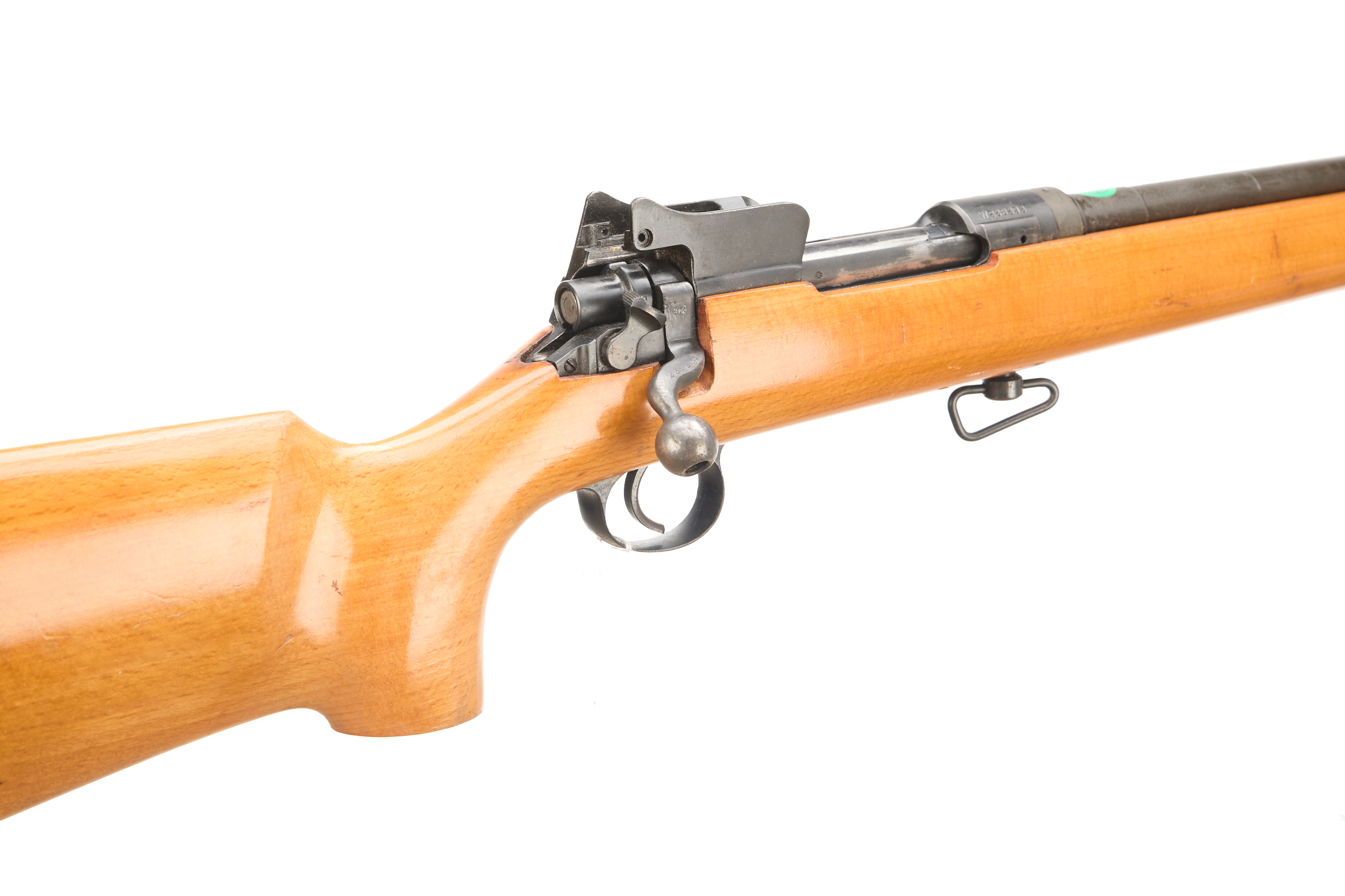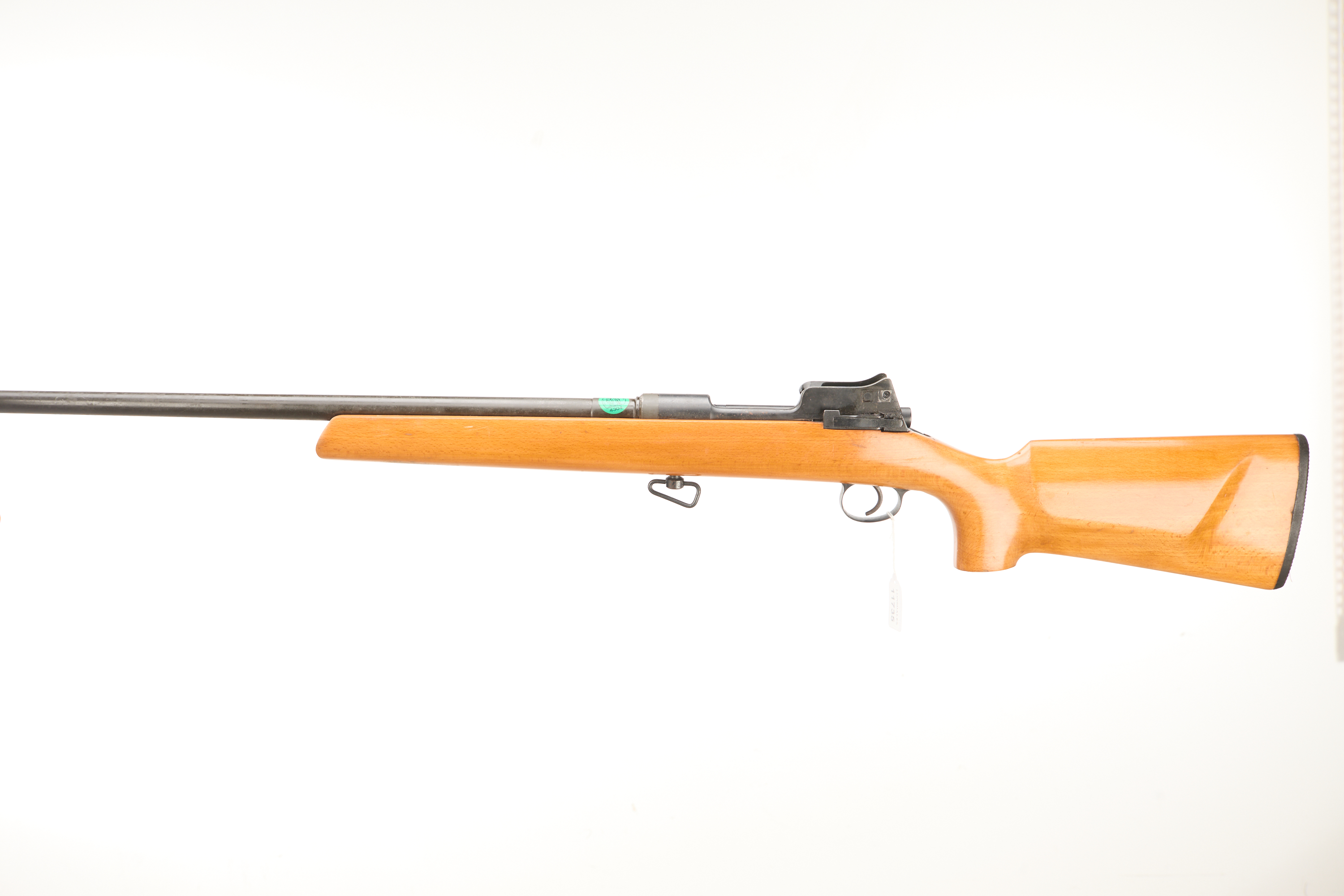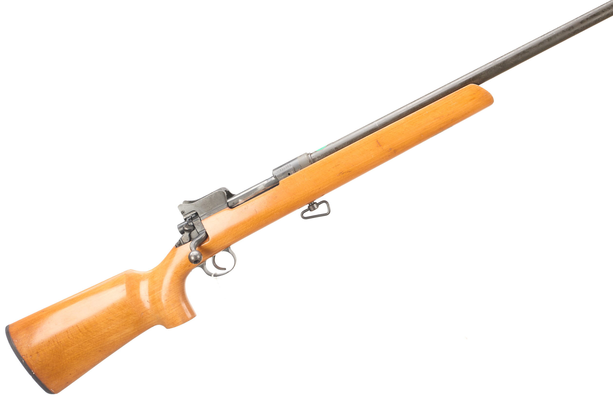Based on a P14. Cheek comb, sling swivel attachment, aluminium rail. Hooded foresight, rear sight absent. Single shot. Matching serial numbers. Barrel 26", OAL 48".