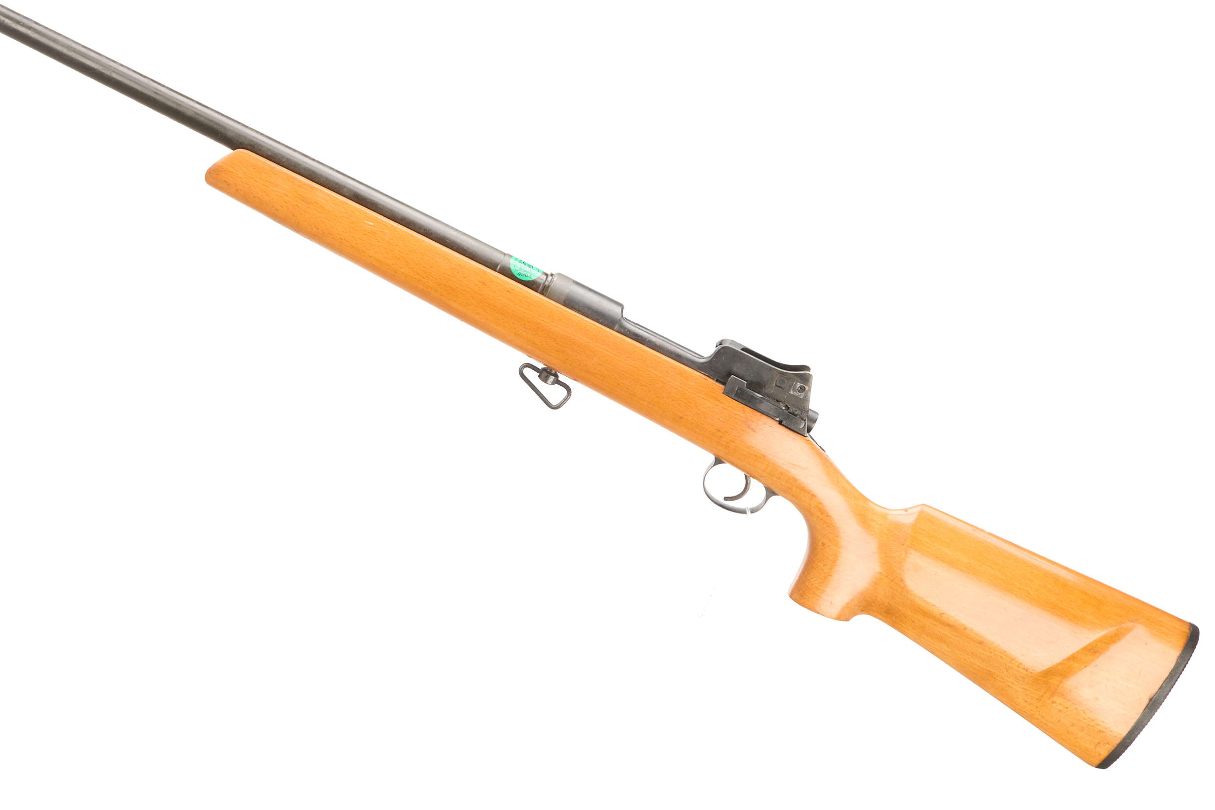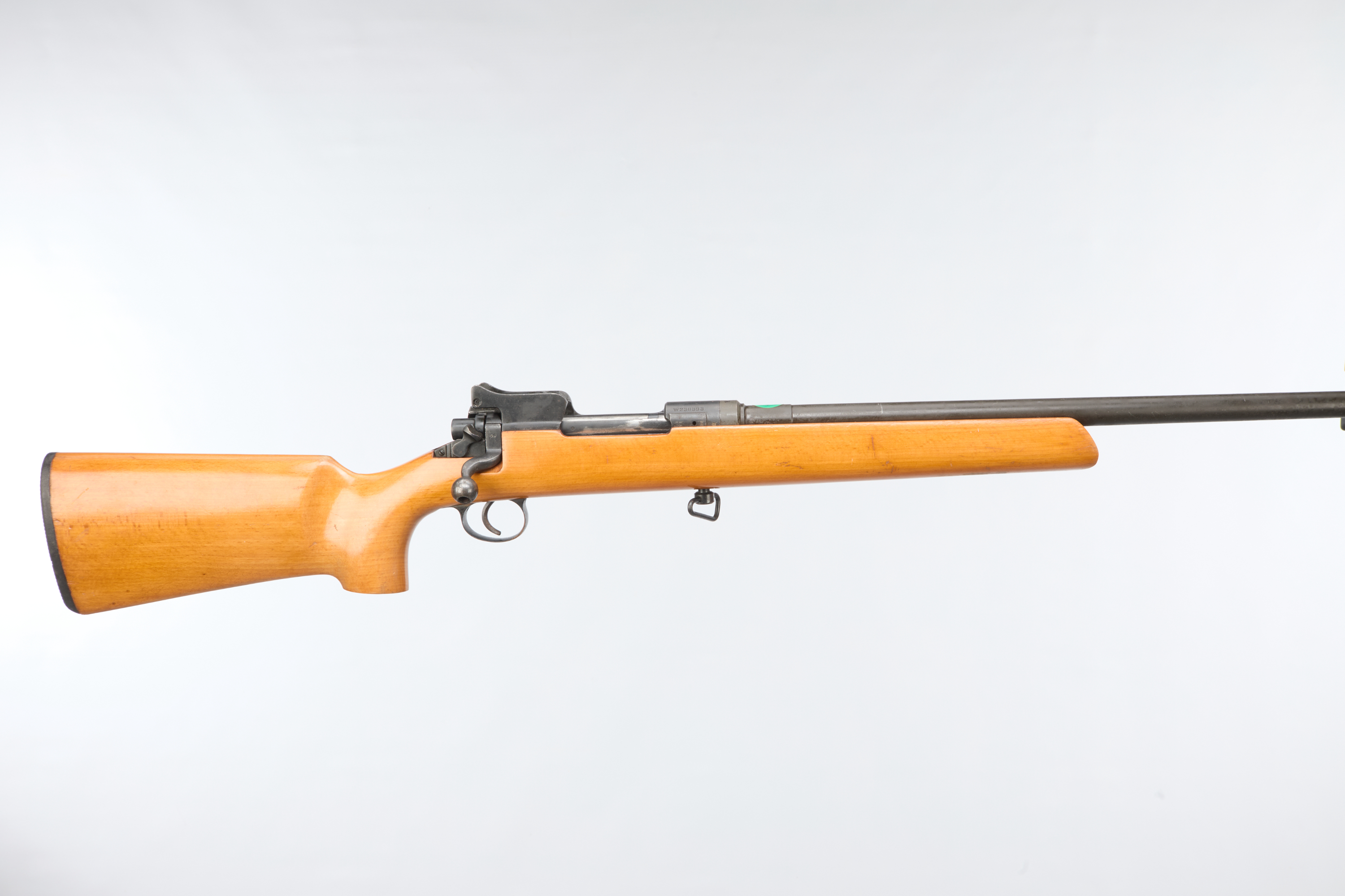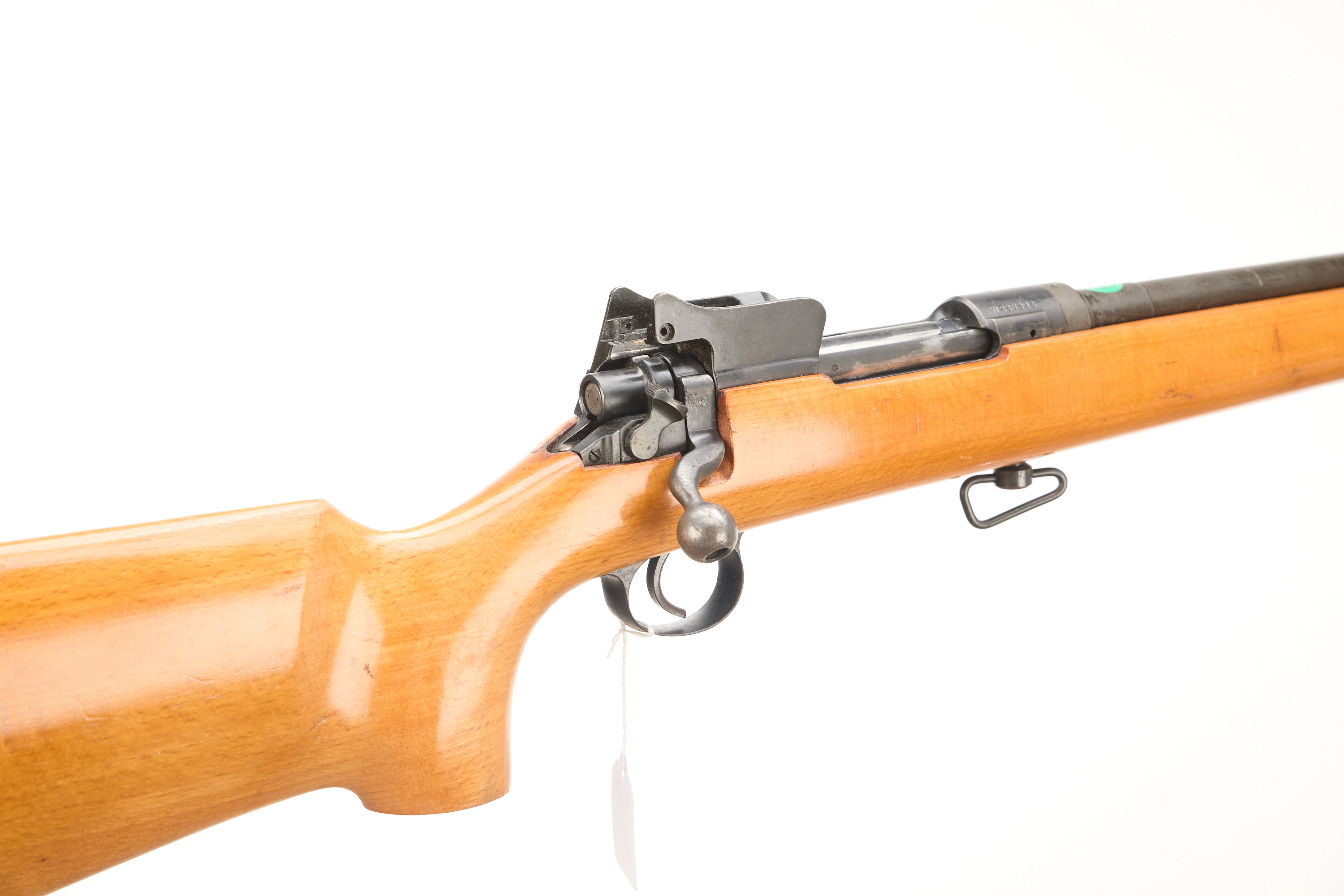 Based on a P14. Cheek comb, sling swivel attachment, aluminium rail. Hooded foresight, rear sight absent. Single shot. Matching serial numbers. Barrel 26", OAL 48".