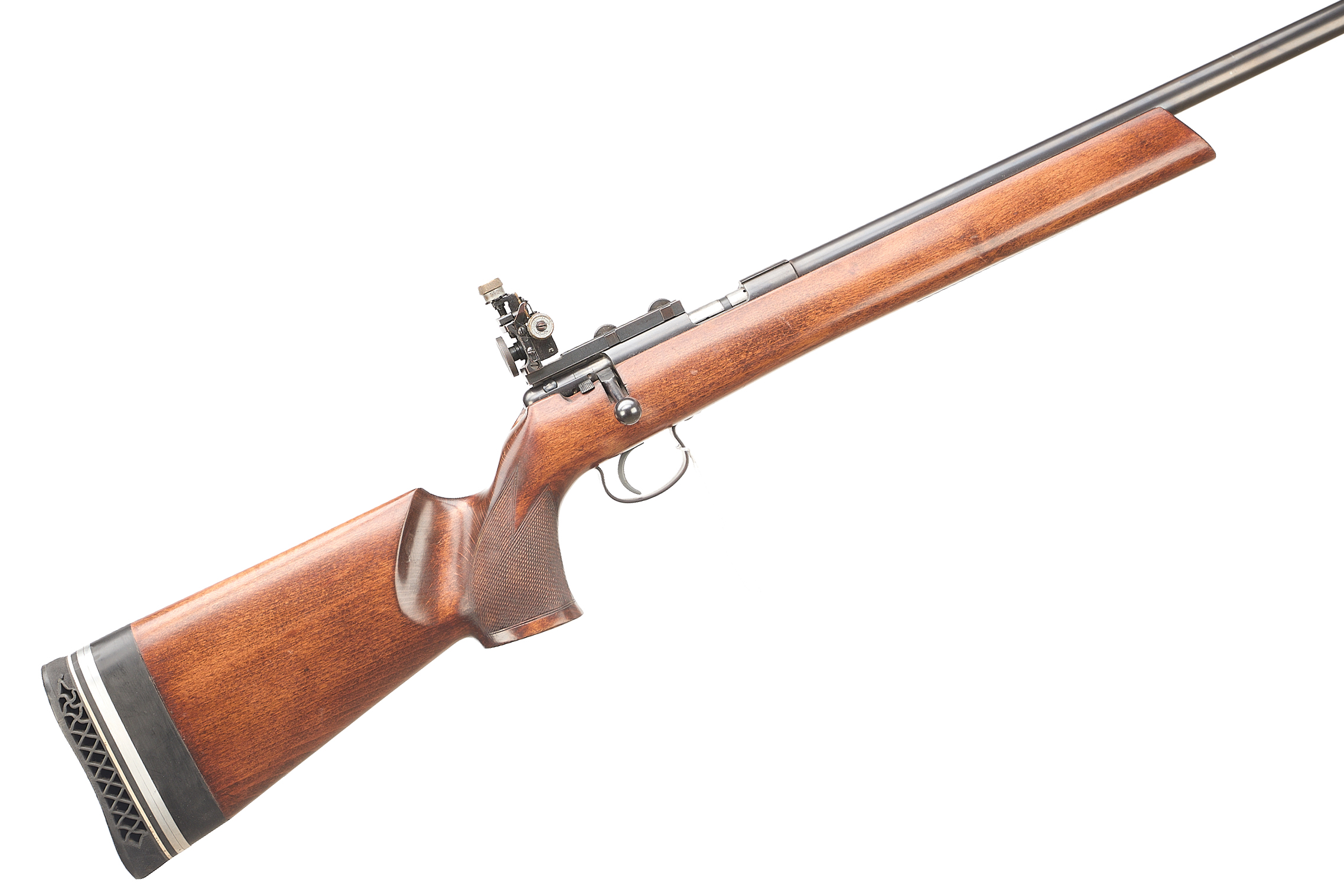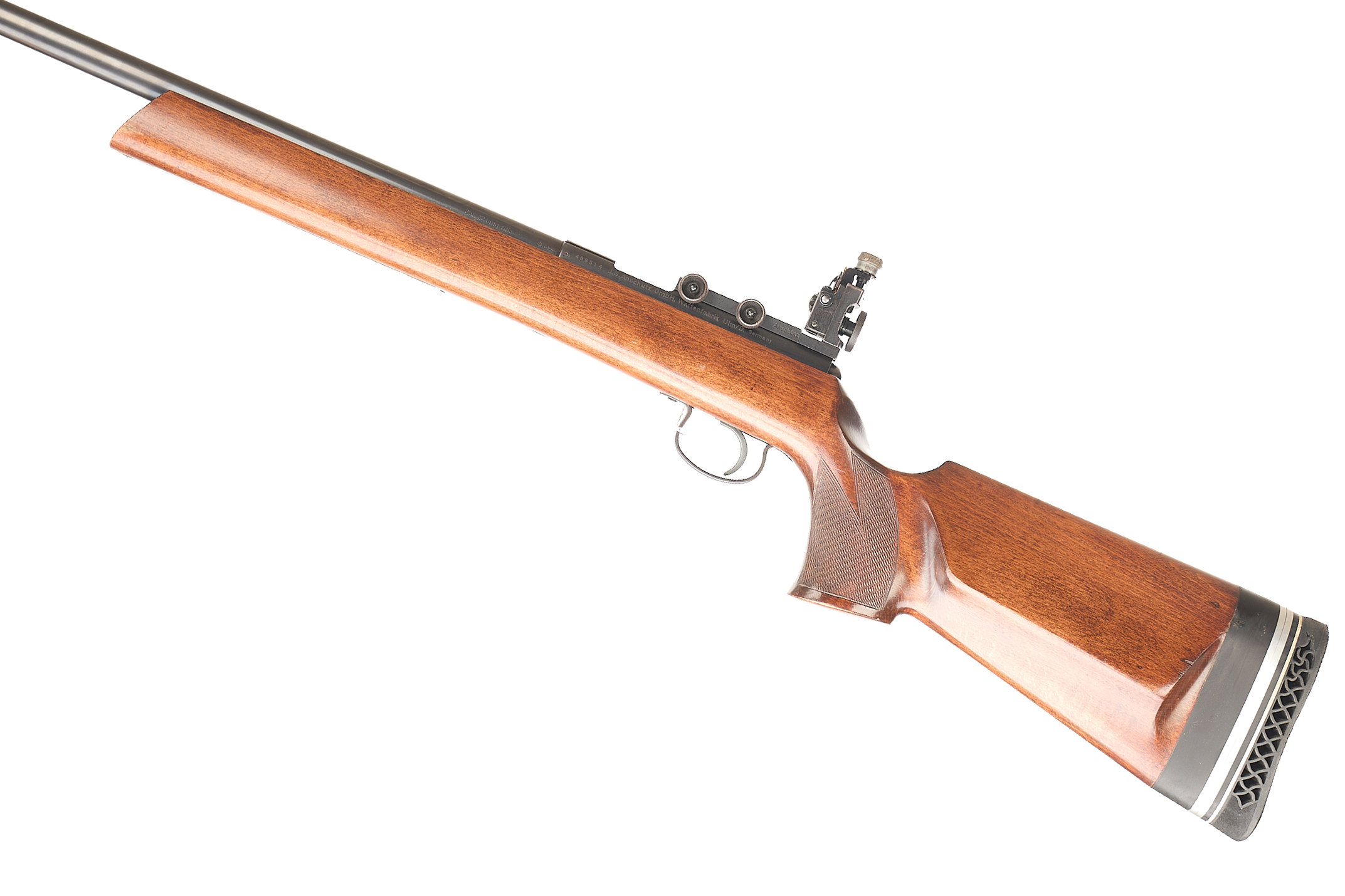 Ventilated butt pad and carved cheek piece and grip, fully-figured target stock with chequered full pistol grip, aluminium rail and hand stop, tunnel foresight, dioptre rearsight, side safety.