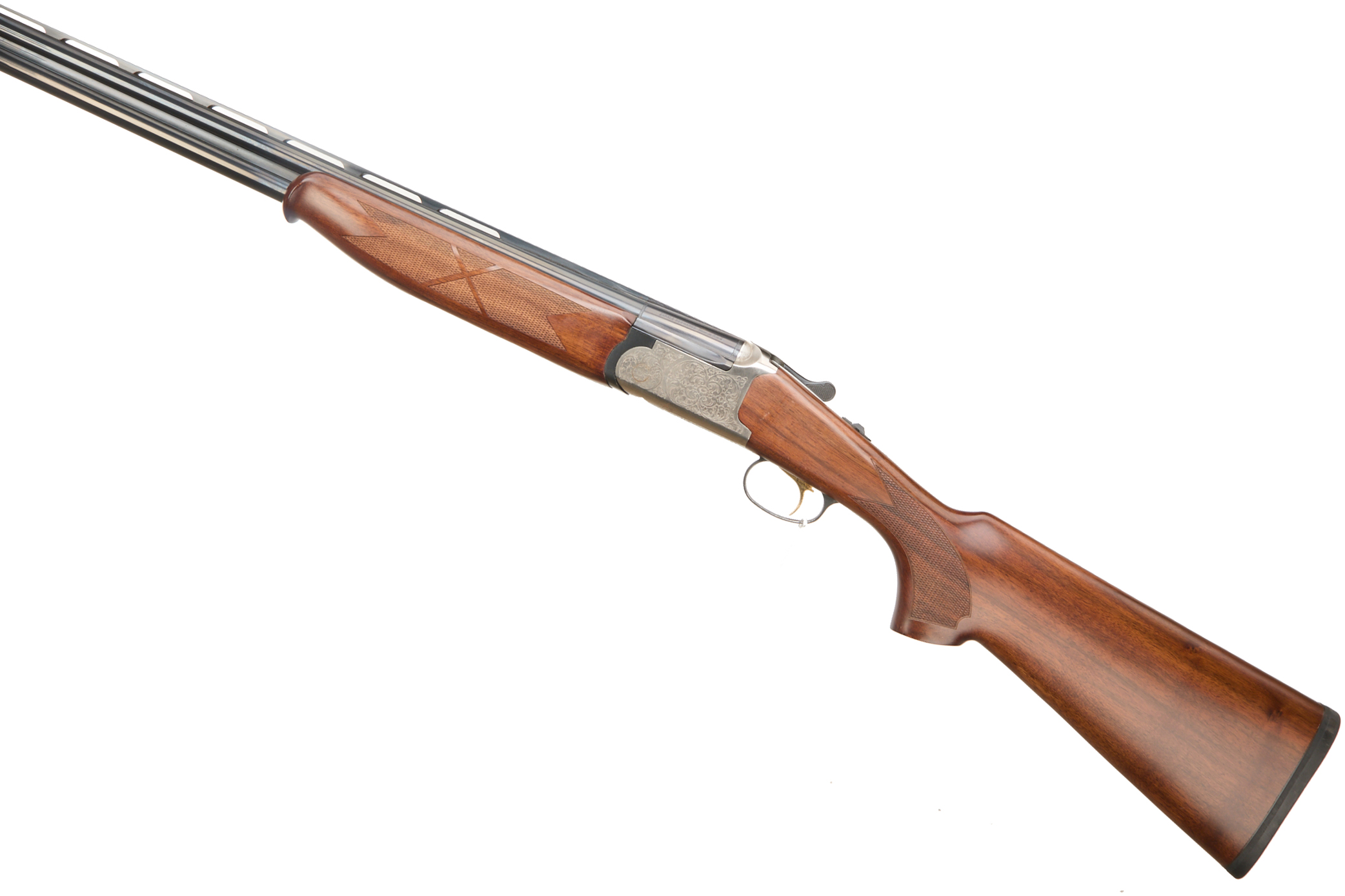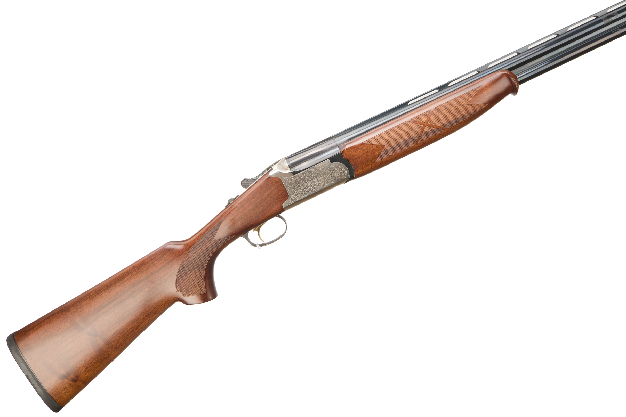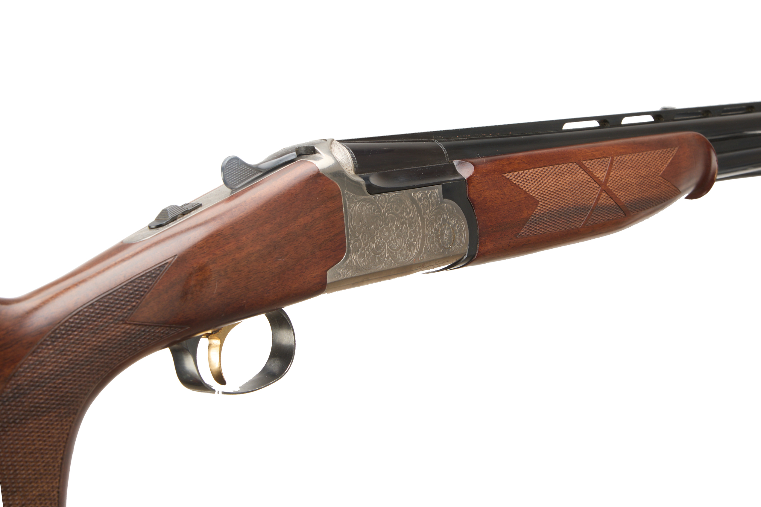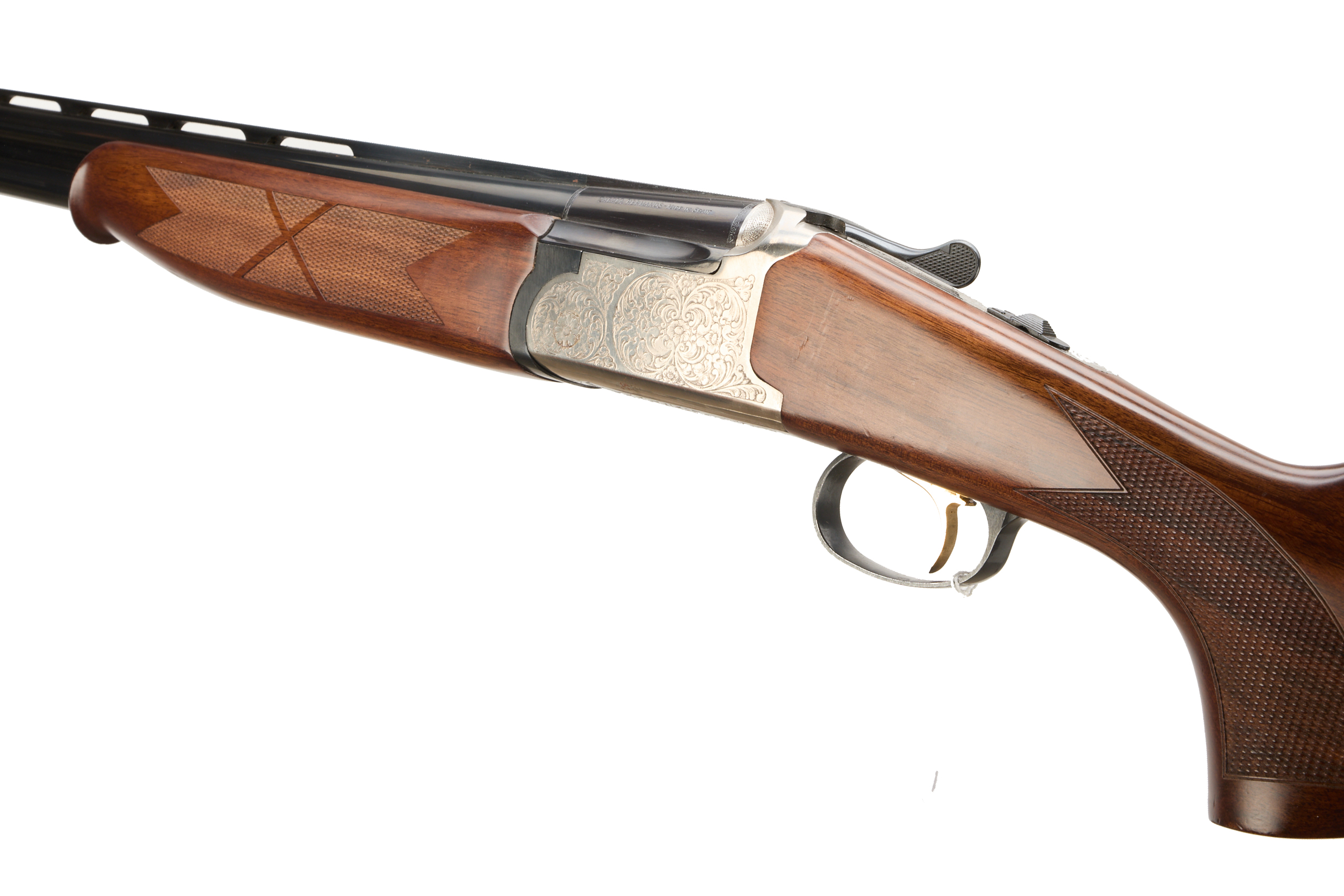 Rubber butt pad, chequered full-pistol grip and forend, ventilated top rib. Acanthus scrolls to action. Gold wash trigger, integrated barrel selector (selective single trigger) and safety. Steel proof.