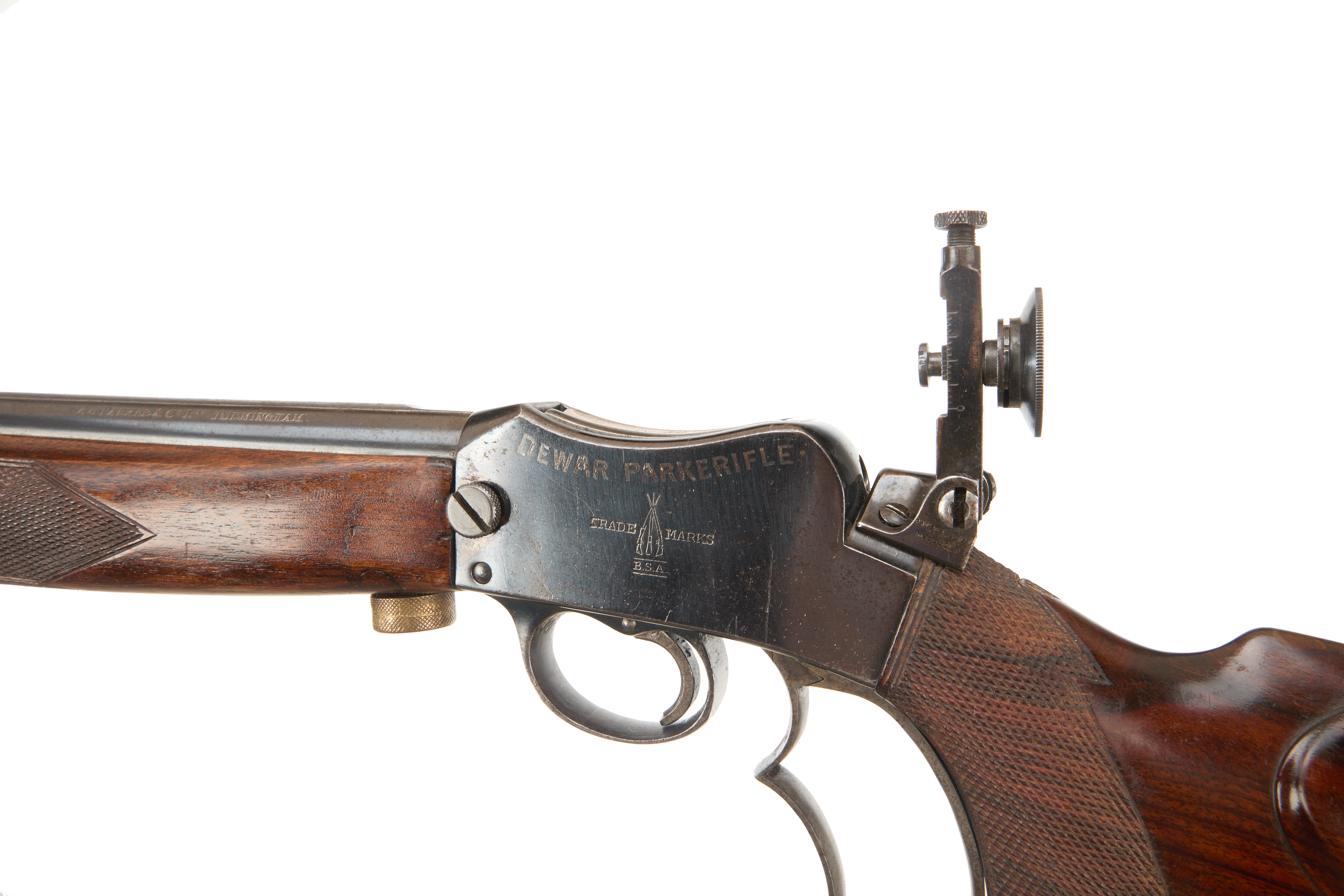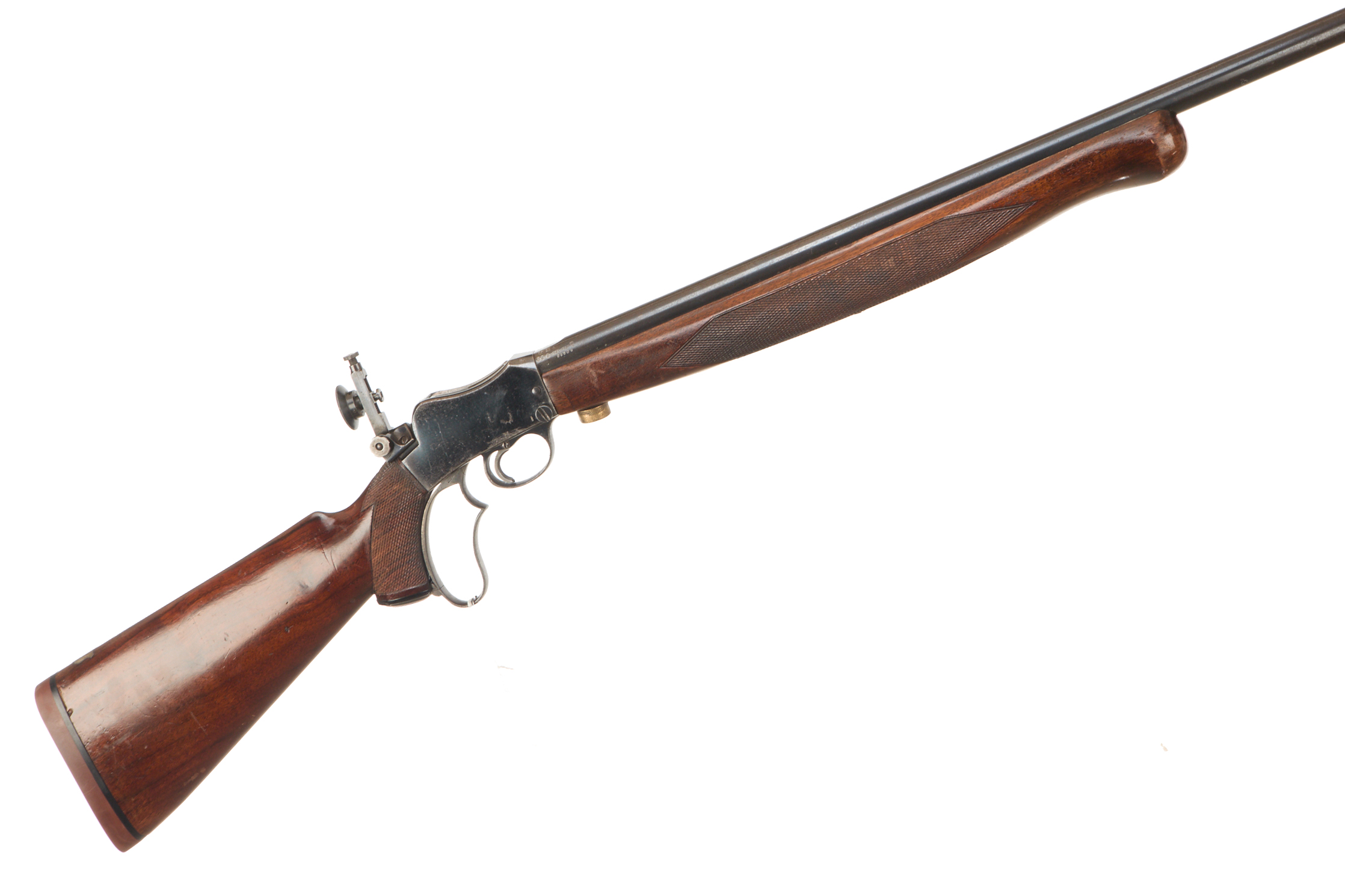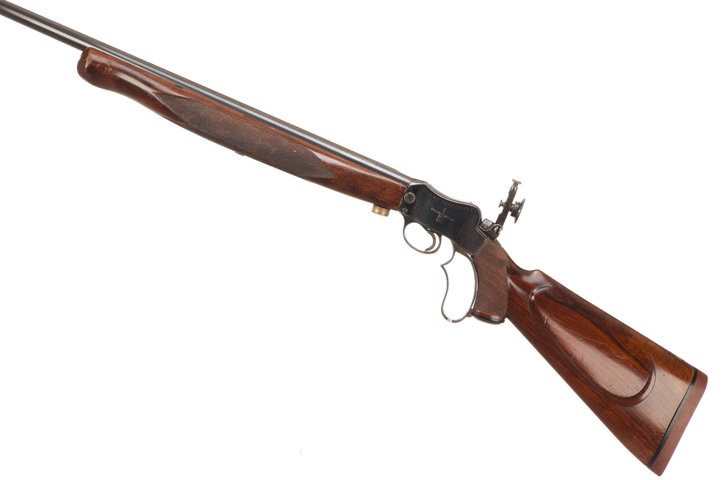 Rubber buttpad, walnut stock with raised cheekpiece and chequered grip and forend. Hooded diopter front sight, folding diopter rear sight.