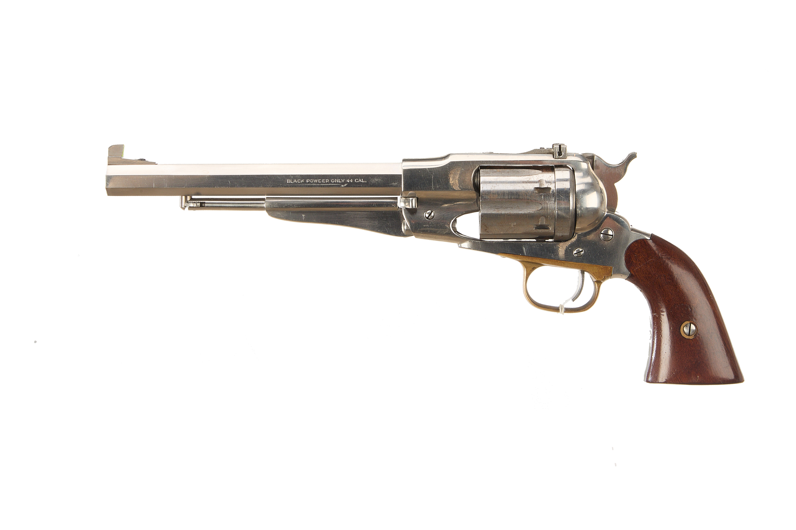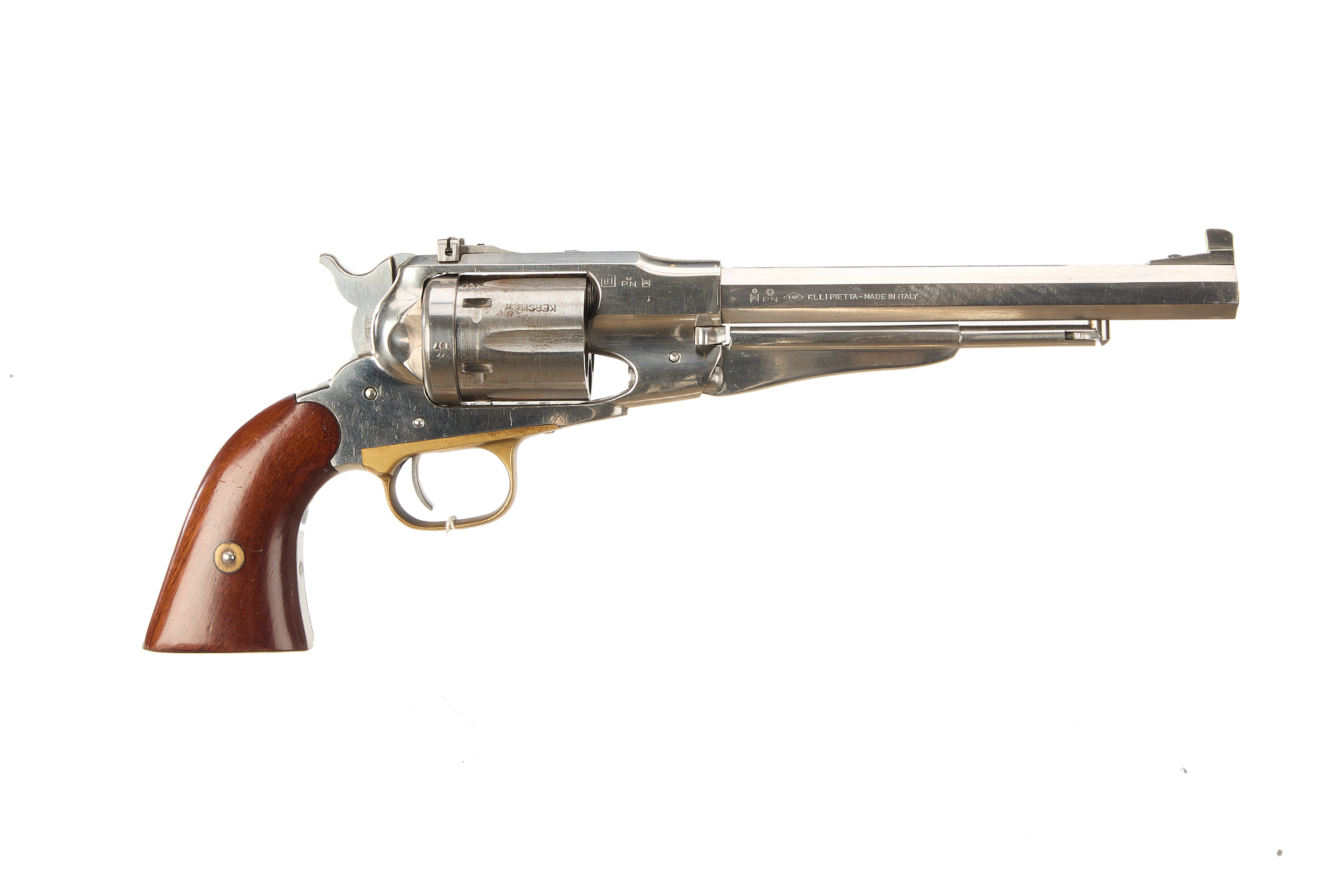 8" barrel, stainless steel, brass trigger guard, Kershaw nitro-proved cylinder.