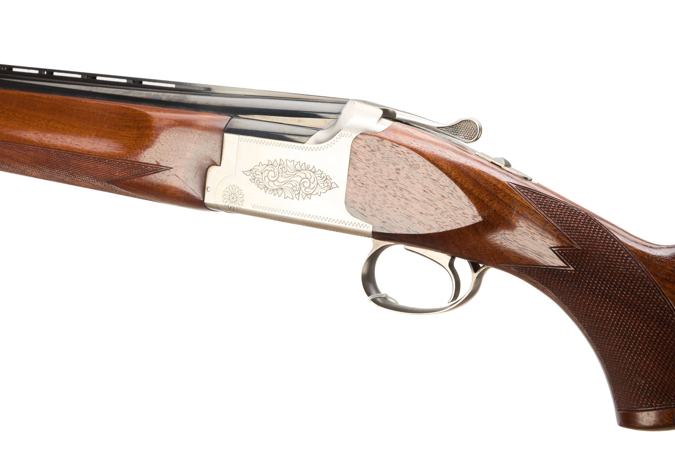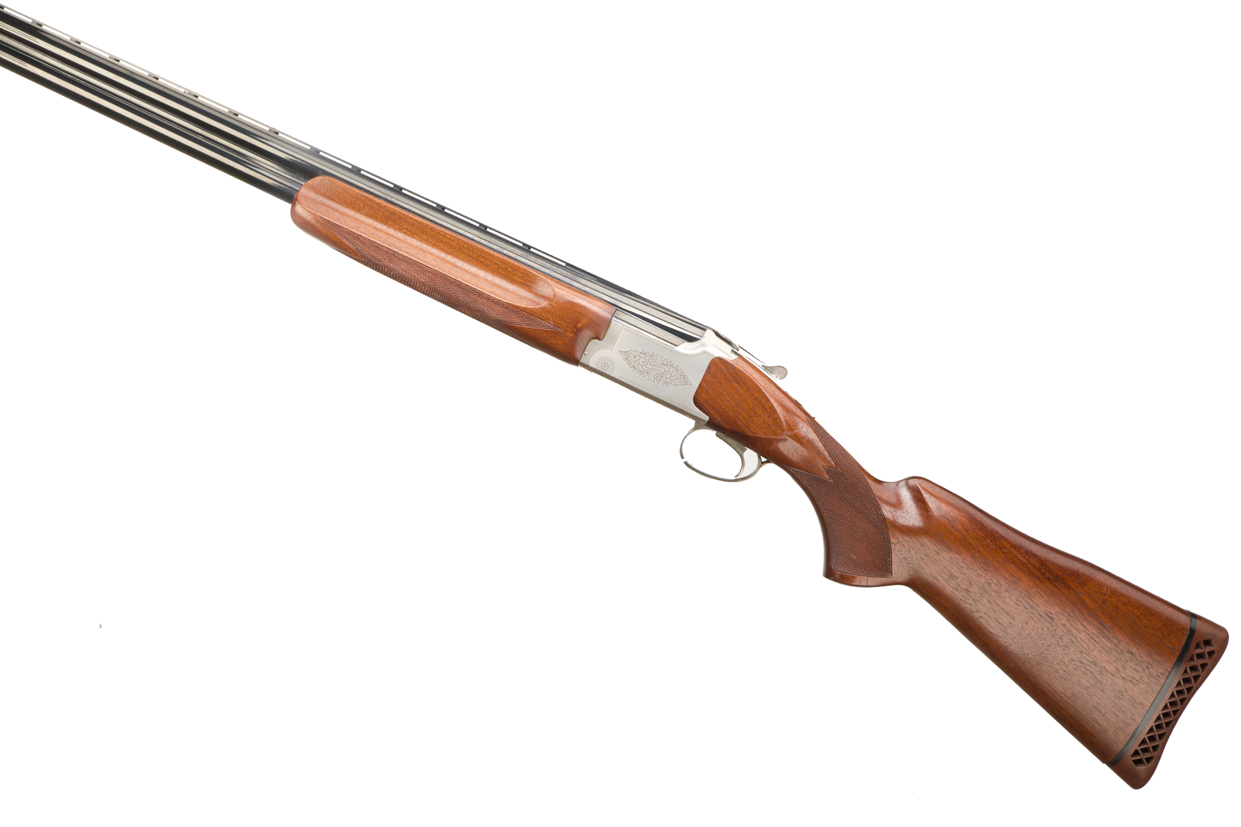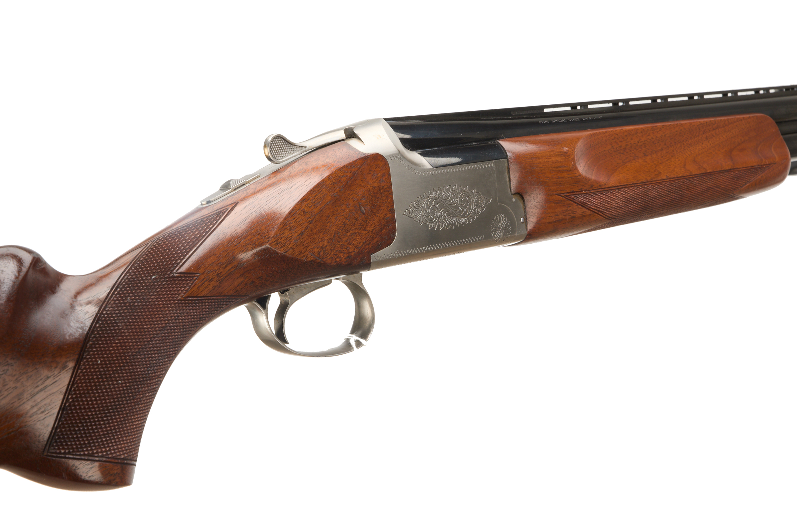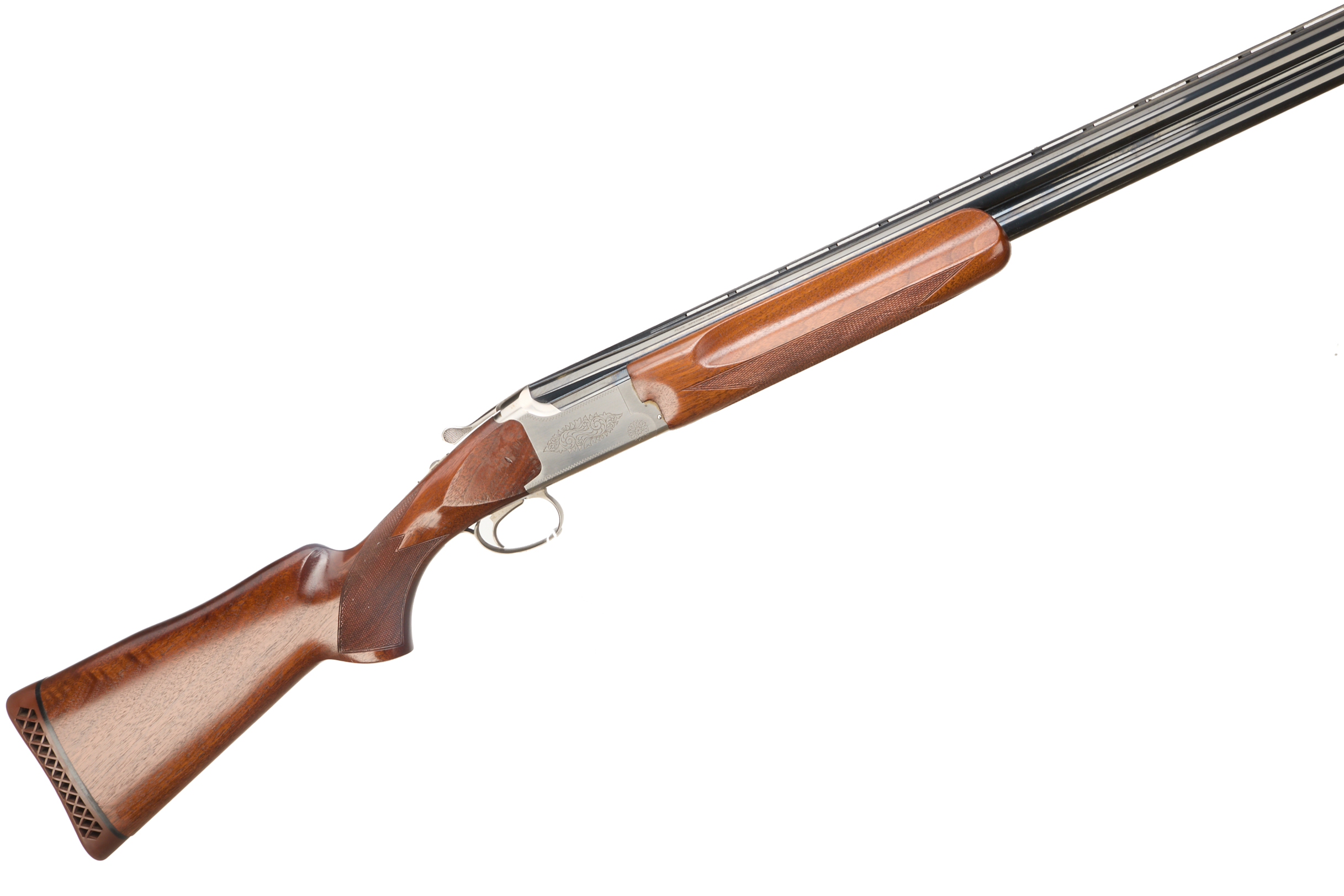 Ventilated butt pad, chequered semi-pistol grip and forend, ventilated top rib. Partial canthus scrolls with edging to action. Integrated barrel selector and safety. For 1994.