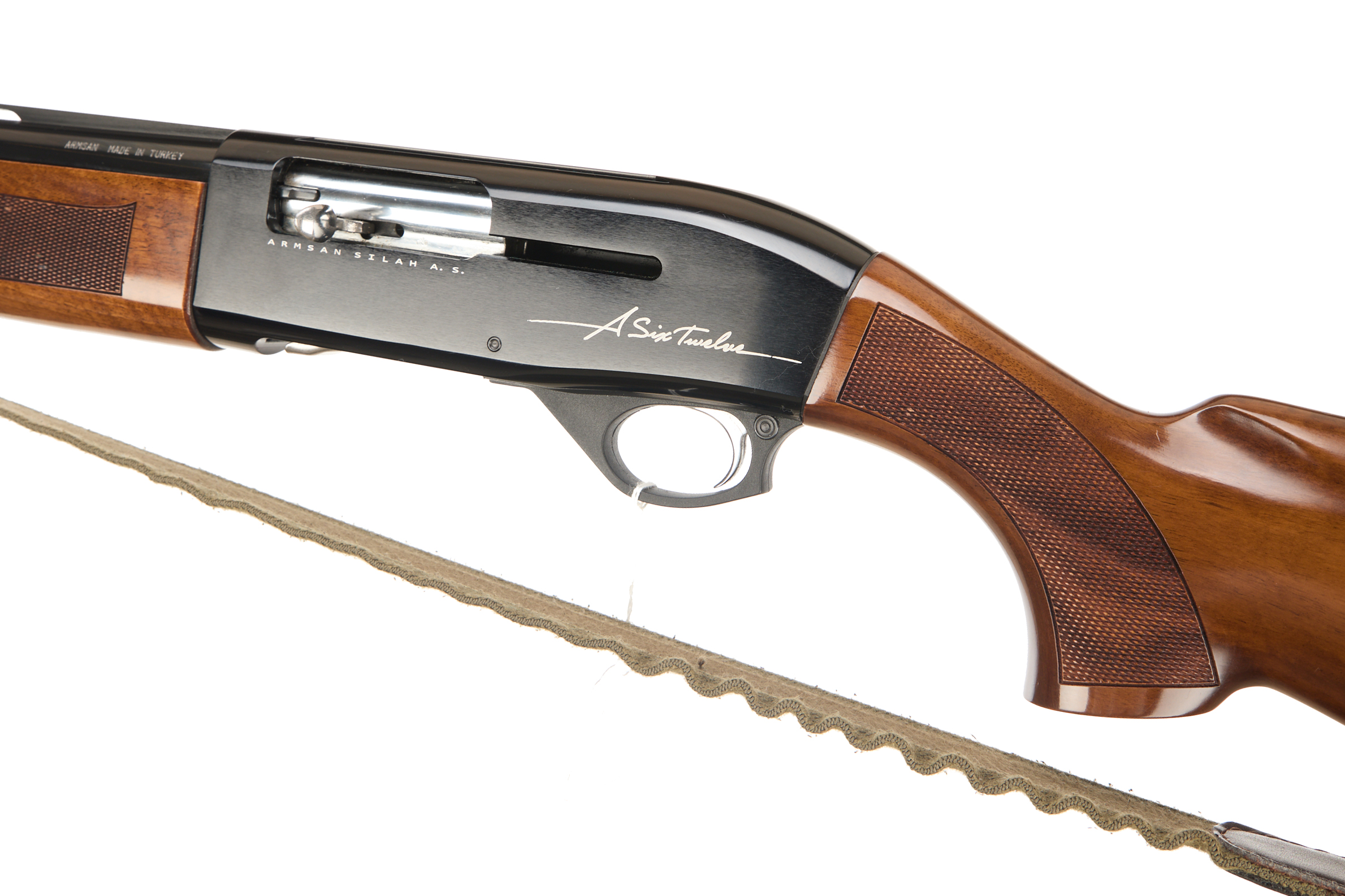 Rubber butt pad, chequered pistol grip stock and forend. Ventilated machine-finished top rib, plain, action.