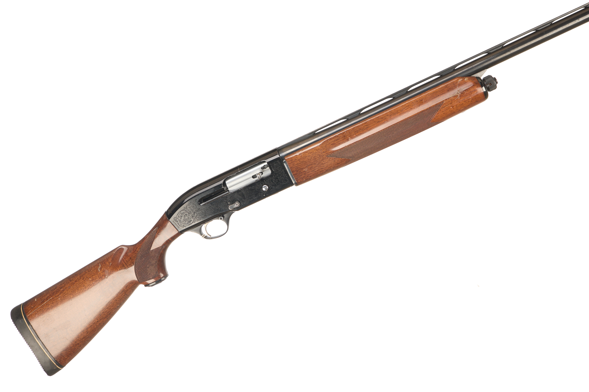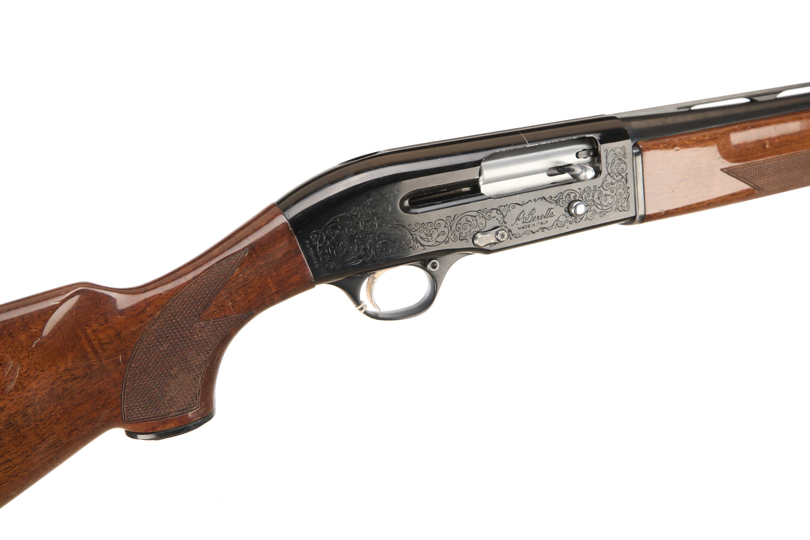 Cushioned butt pad, chequered pistol grip stock and forend. Ventilated machine-finished top rib, Acanthus scrolls with ‘ P. BERETTA’ engraved to action.