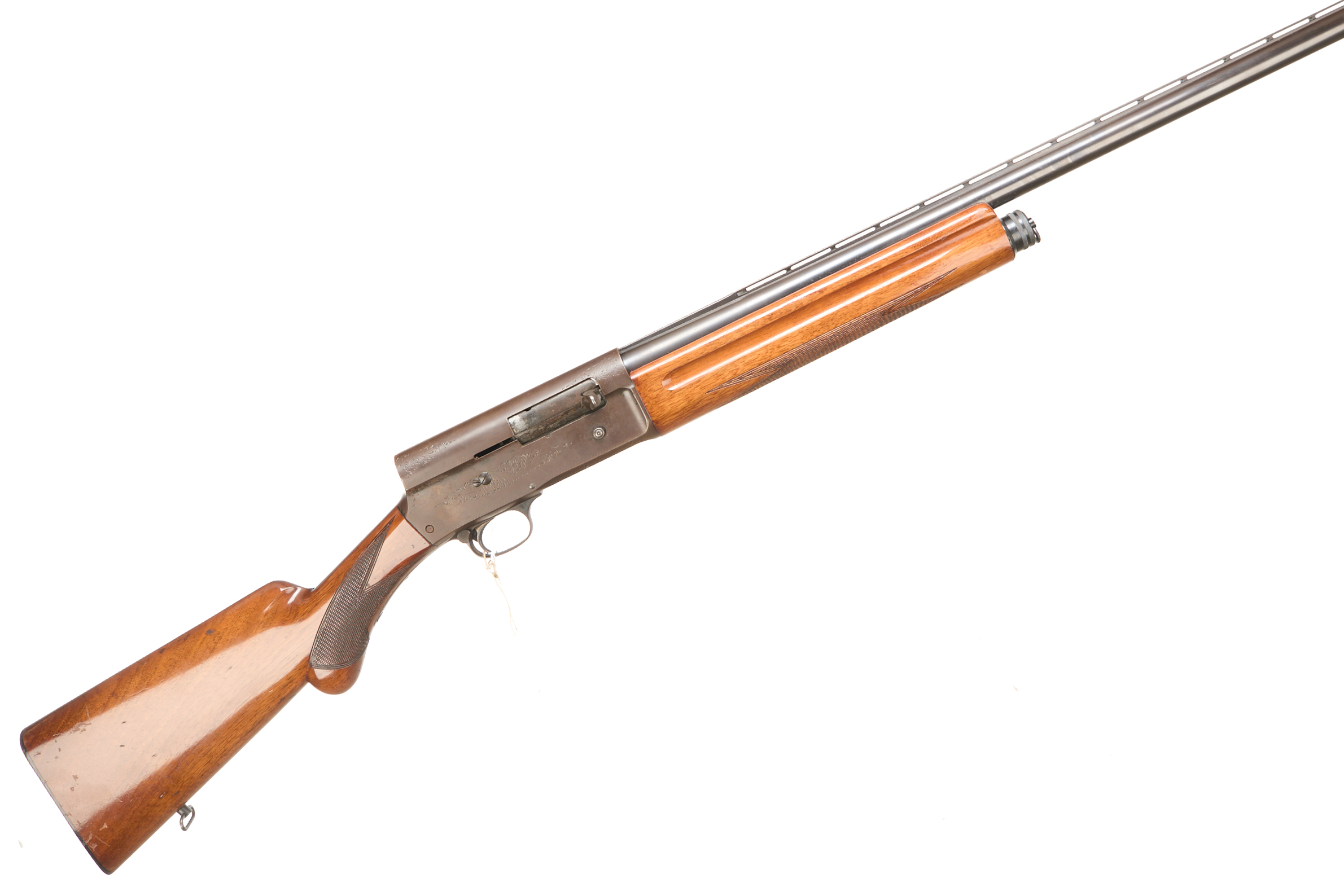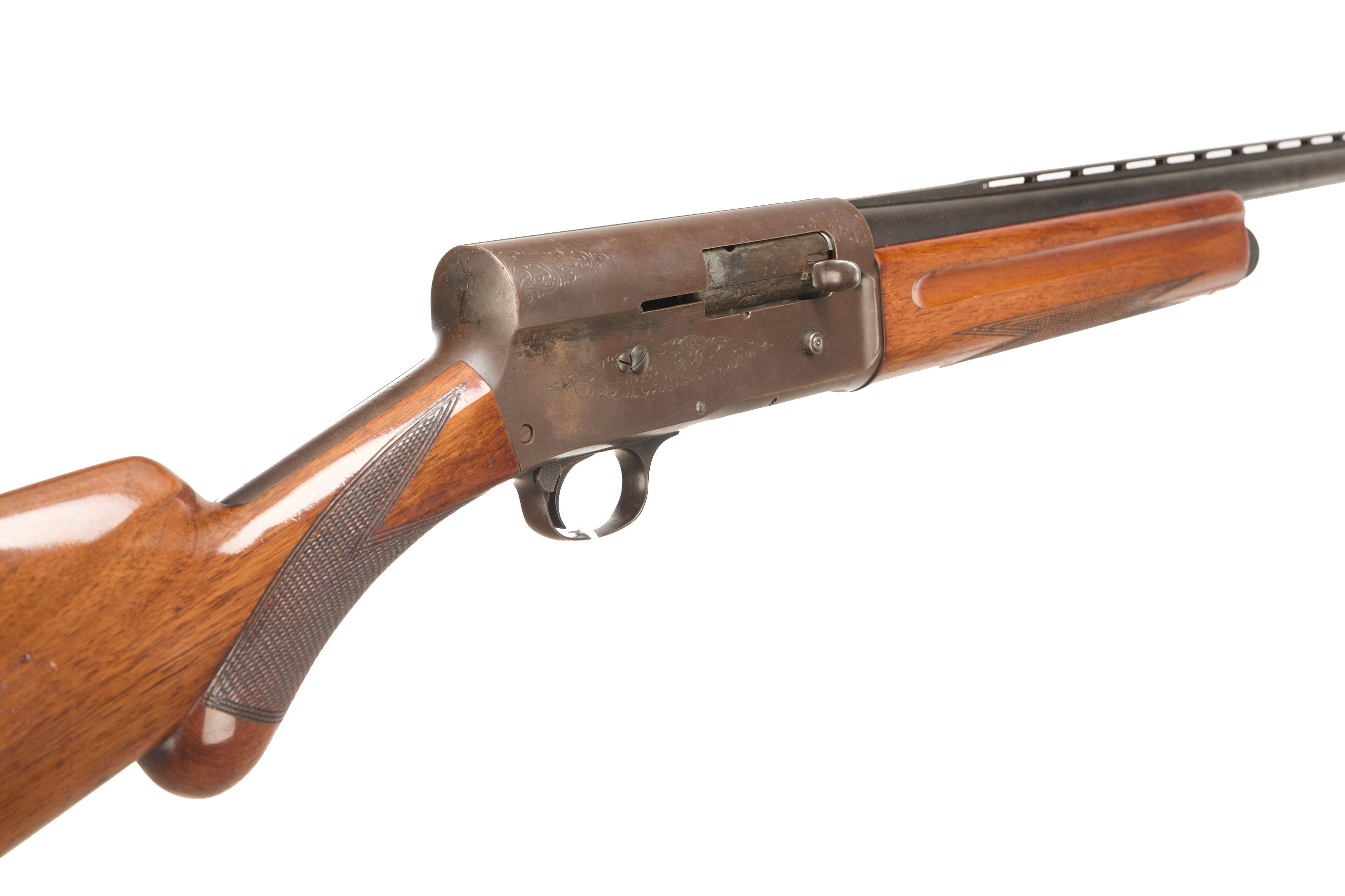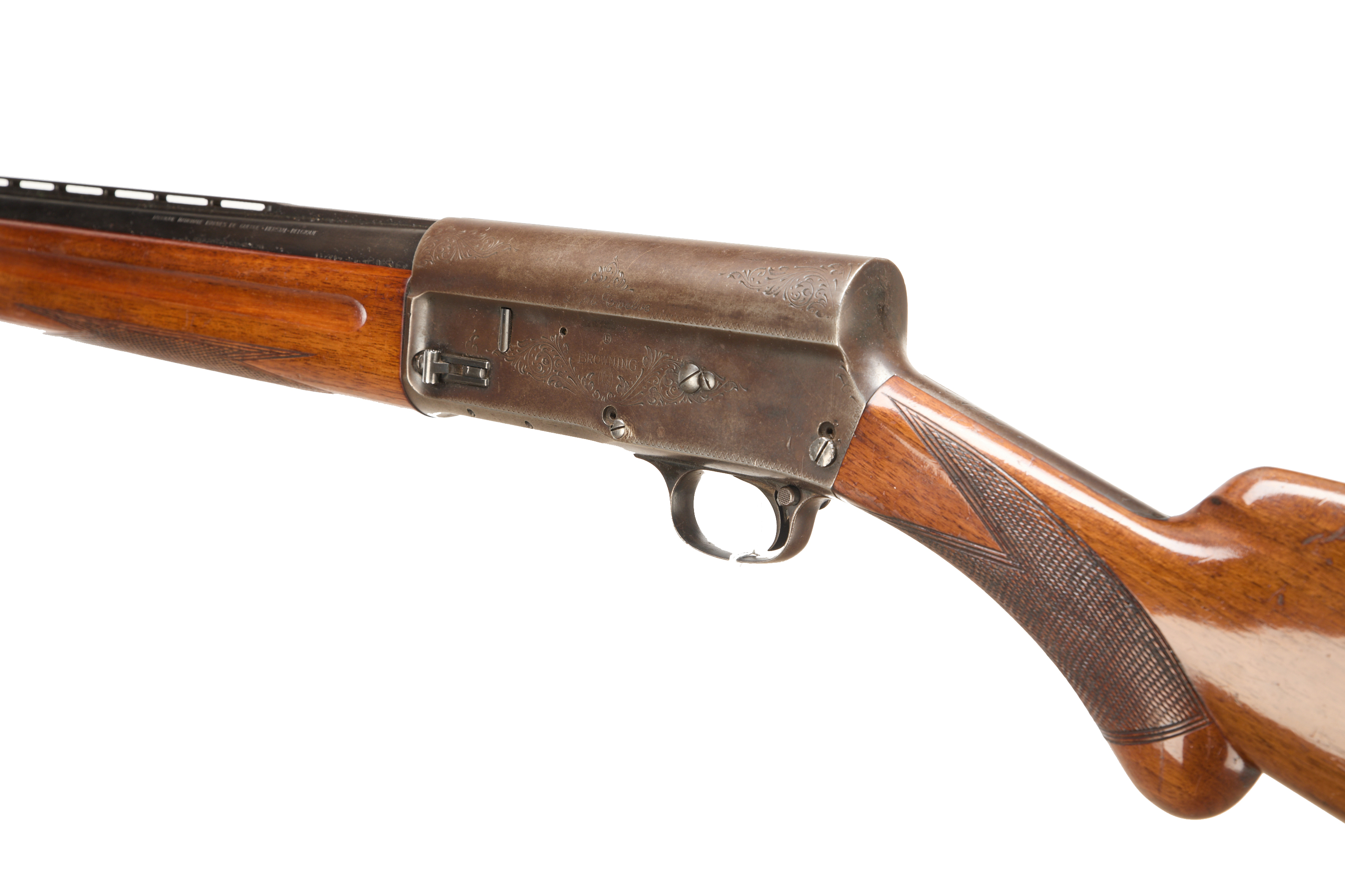 Ebonite butt pad, chequered rounded pistol grip stock and forend. Ventilated machine-finished top rib, Acanthus scrolling with ‘BROWNING’ engraved to action.