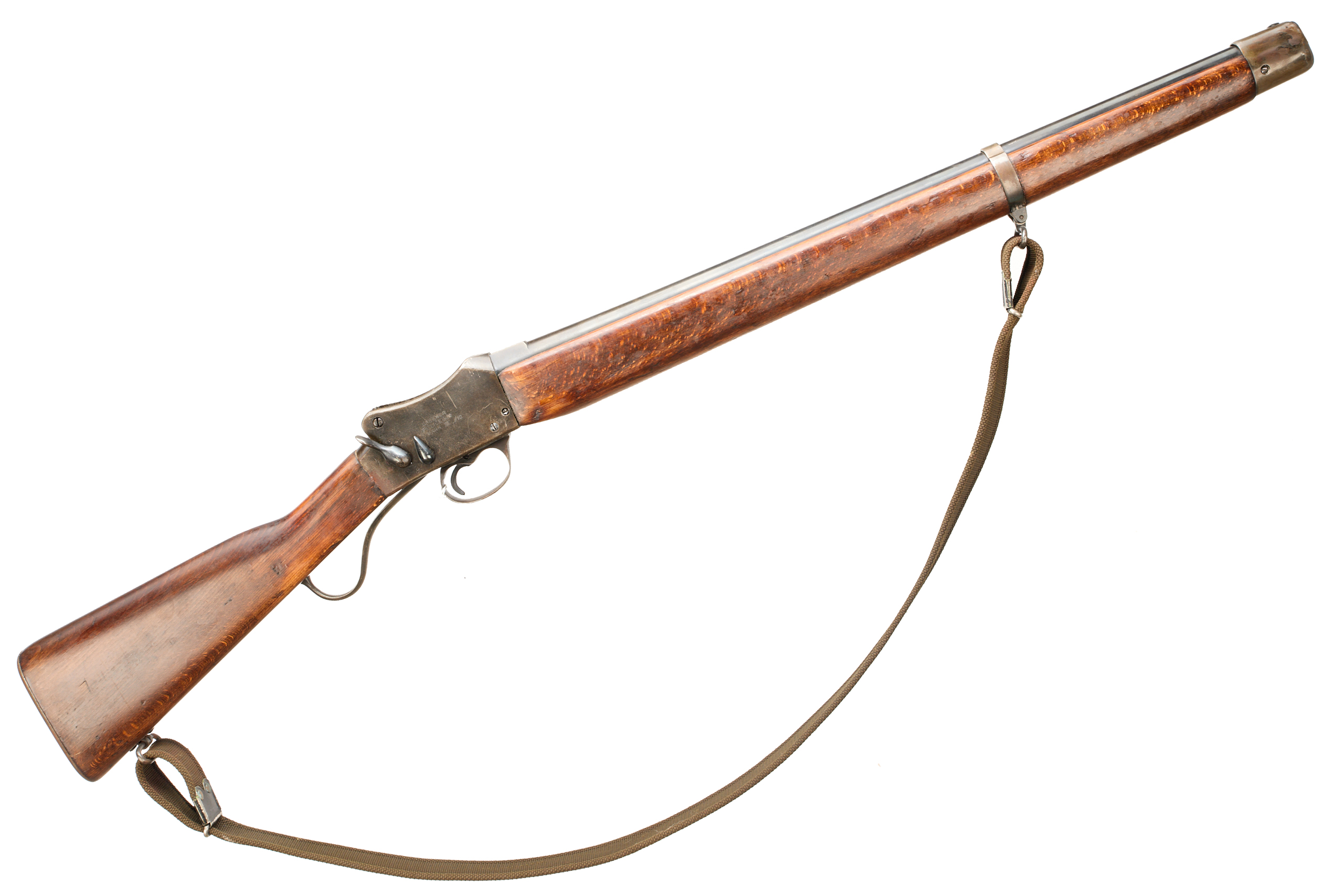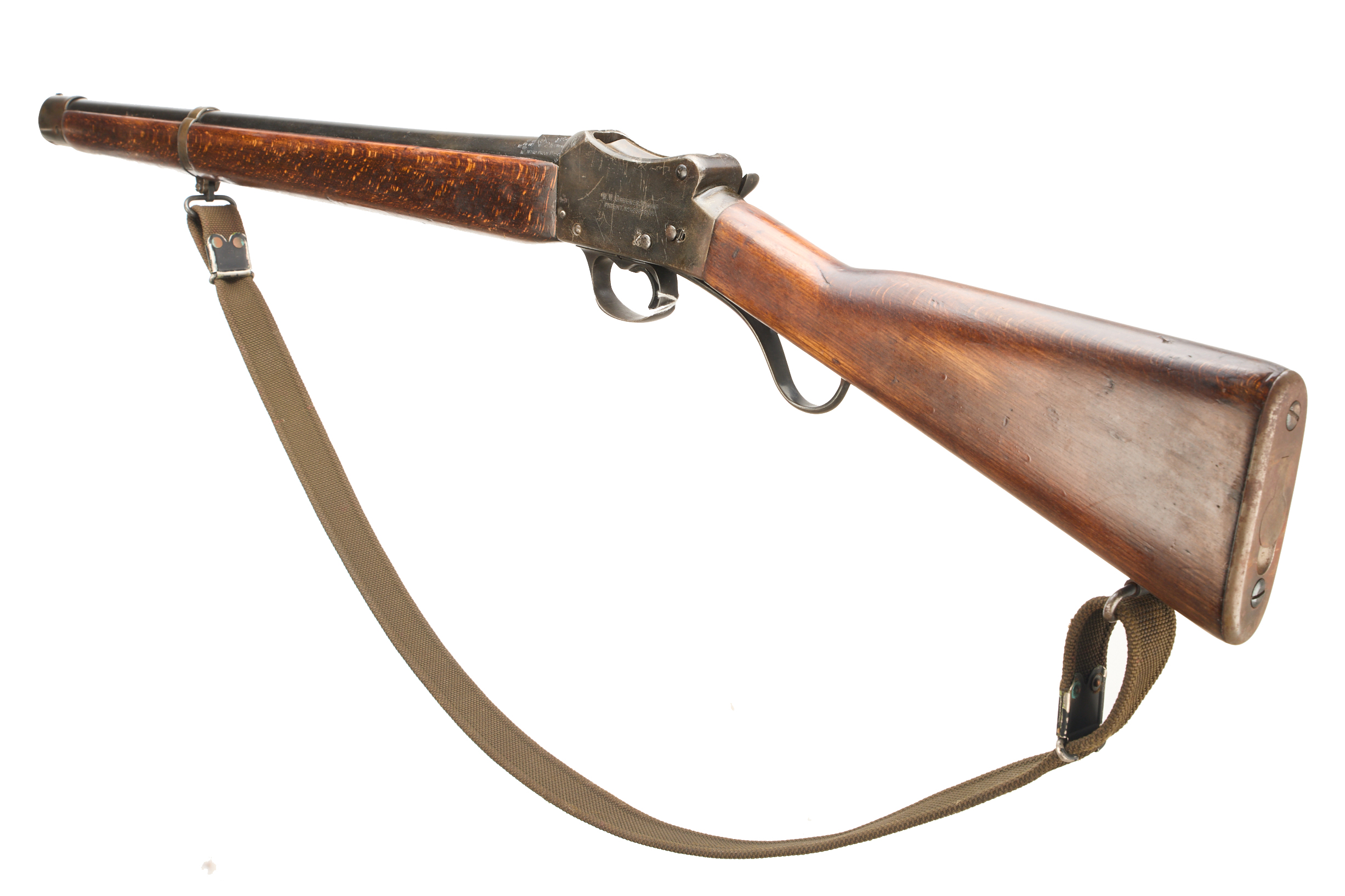 Steel butt pad, full length Stutzen forend, automatic sidelever safety, plain action engraved with ‘W.W. GREENER. MAKER PATENT. NO. 463628/35′ to the left and ”W.W. GREENER. POLICE GUN. MARK III’ to the right.
