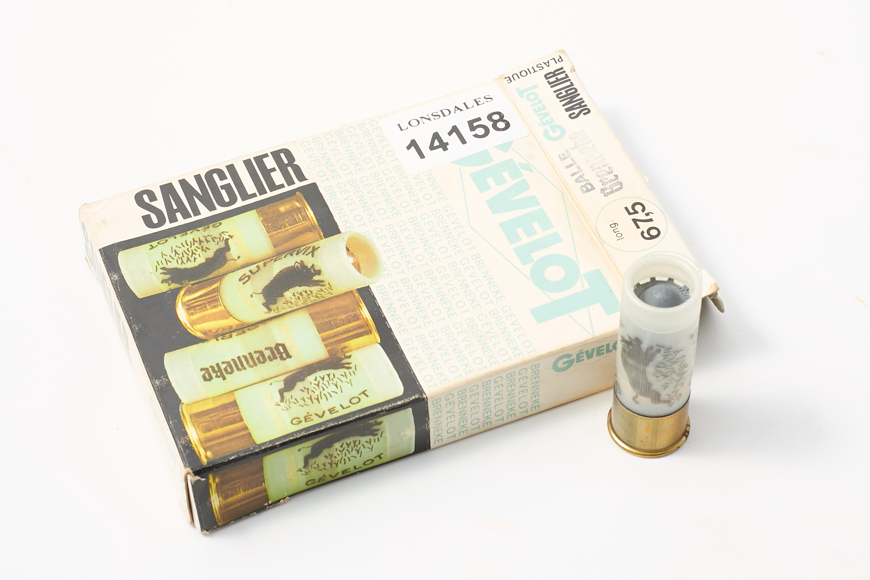 Lot 153: GEVELOT SANGLIER 12-BORE CARTDIGES, 13 OF