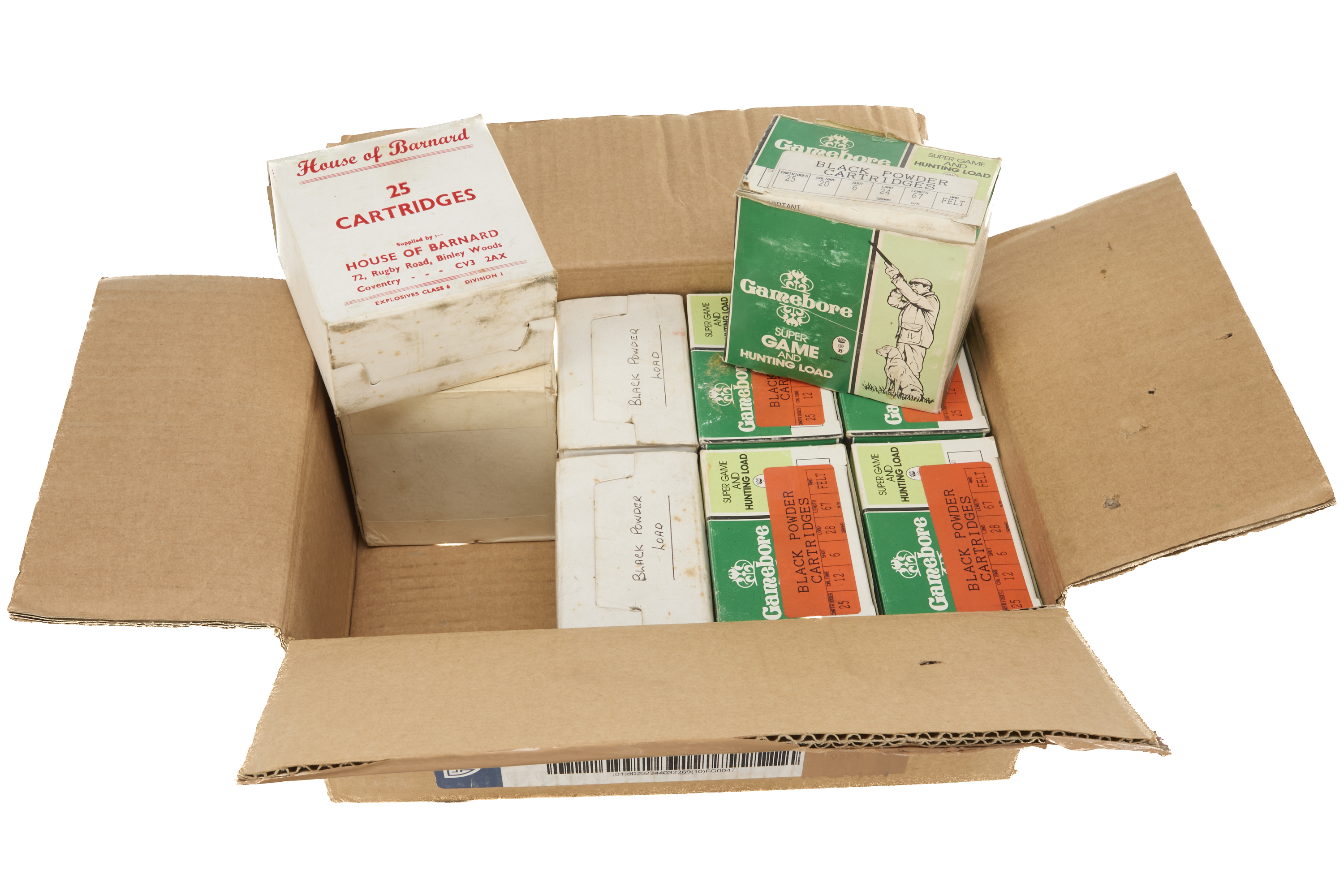 GAMEBORE, HOUSE OF BARNARD & PETER DYSON 12-BORE BLACK POWDER SHOTGUN CARTRIDGES, 225 OF