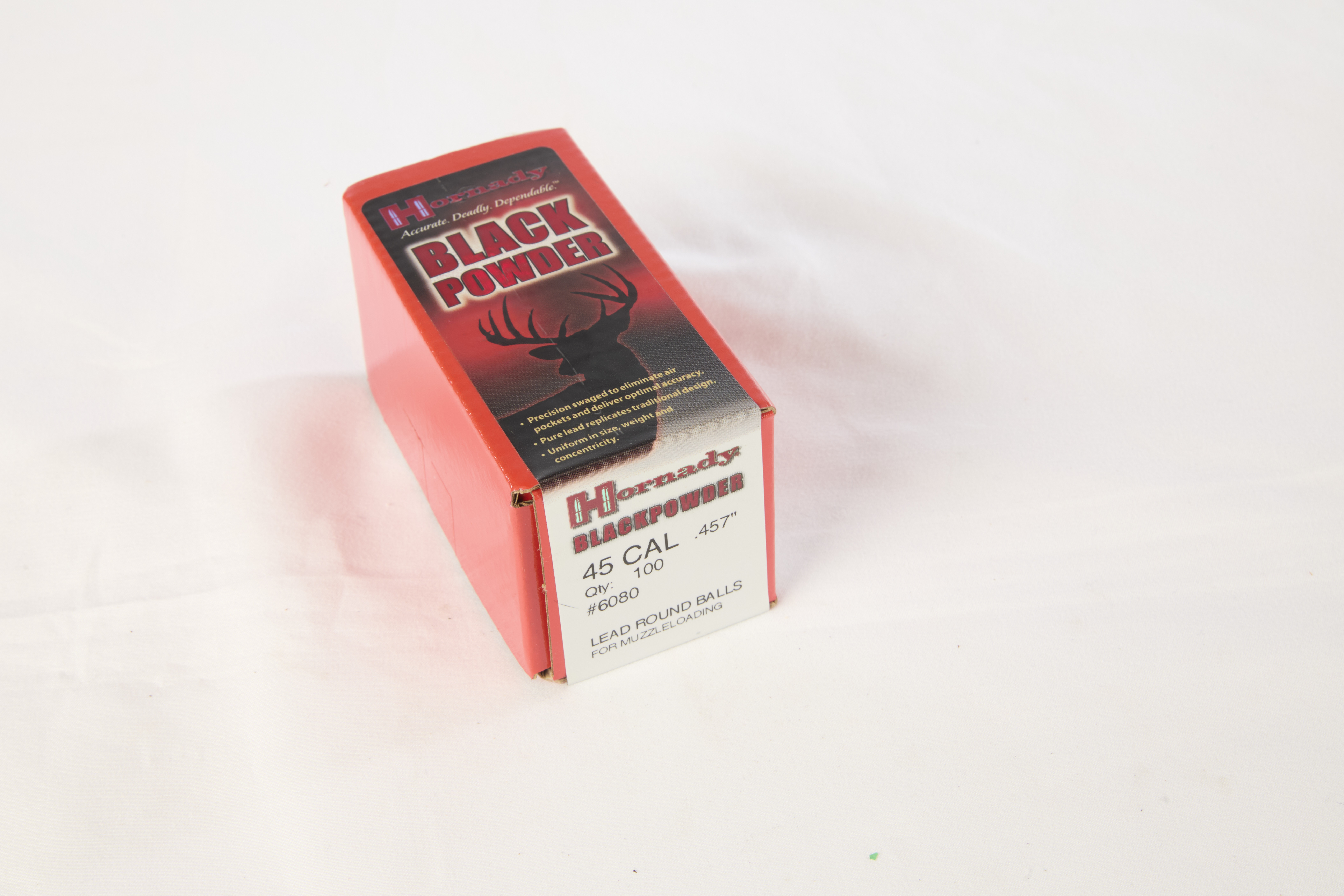 Lot 472: 45 CAL LEAD ROUND BALLS FOR MUZZLE LOADING HORNADY BLACKPOWDER, 100 OF